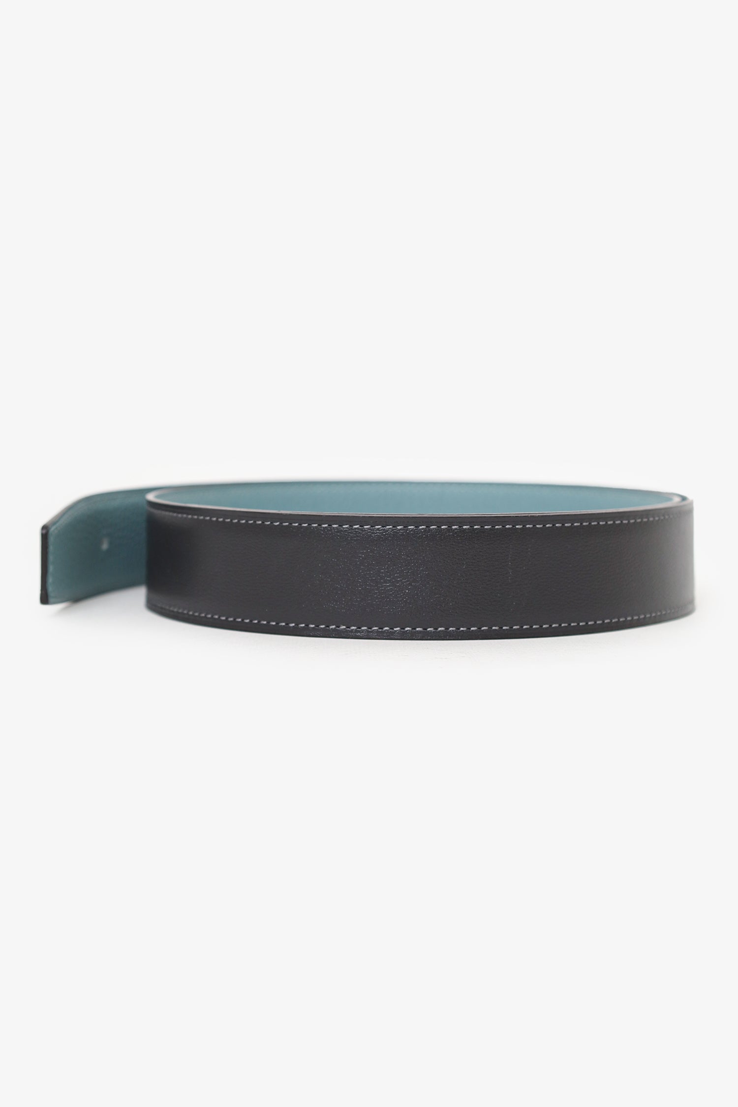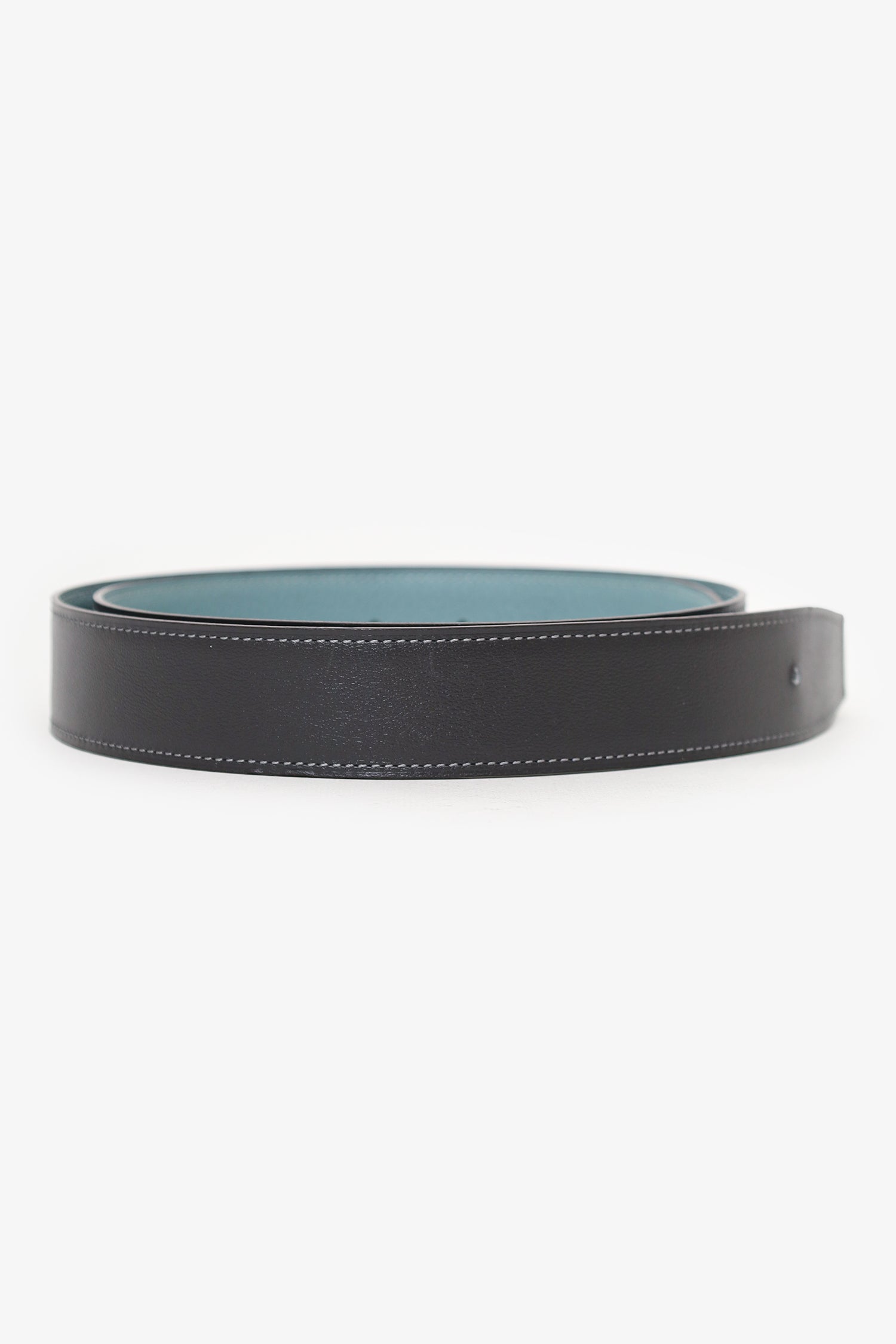 Refresh availabilityHermes Black/Blue Leather Reversible Belt Strap Size 90 (No Belt Buckle). Contrast stitching.