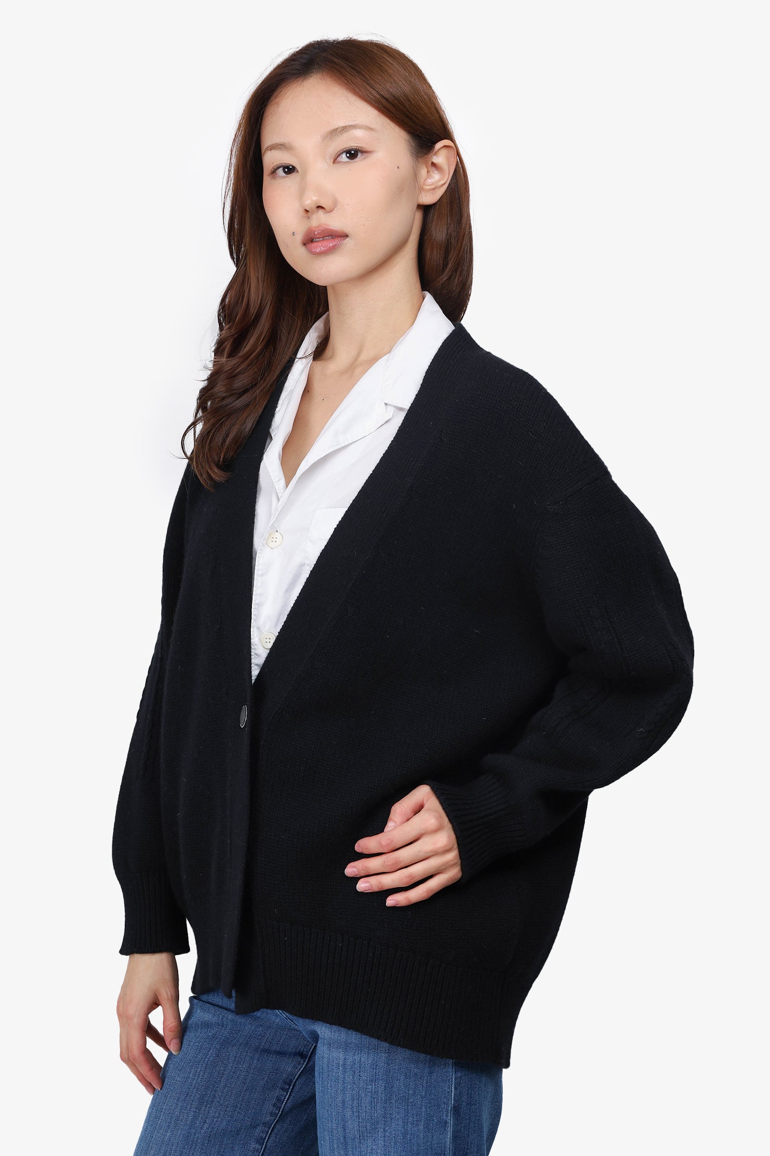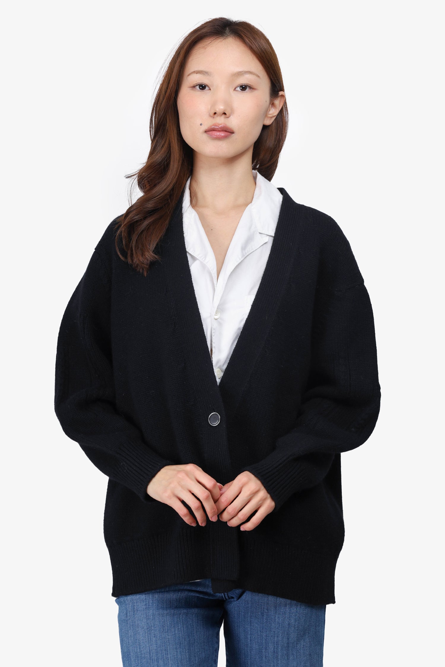 Refresh availabilityHermès Black Cashmere Cardigan. Front single button closure. Ribbed trimmings. Unlined. Tonal stitching.