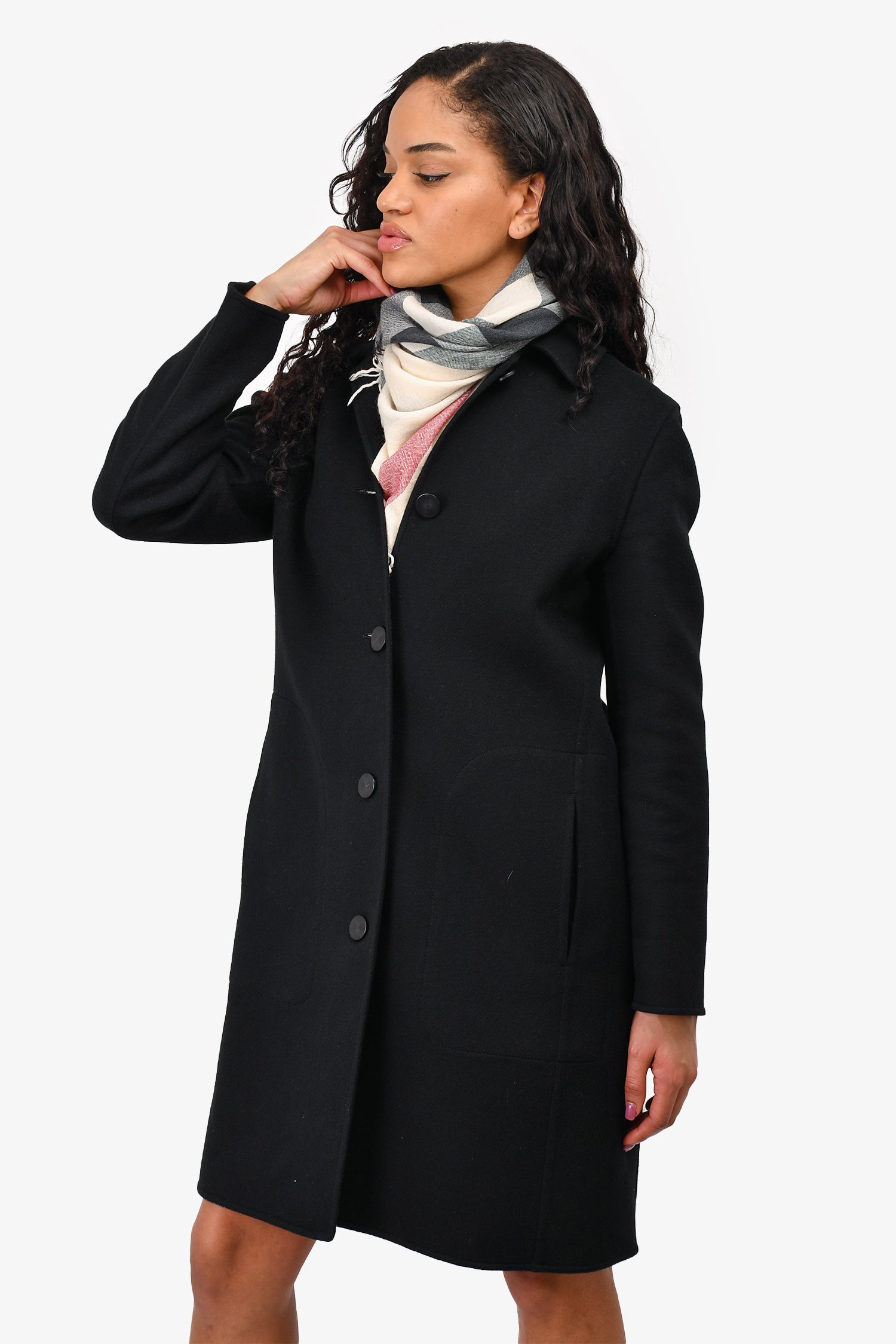 Refresh availabilityHermès Black Cashmere Overcoat. Front button-up closure. Side pockets. Tonal stitching.