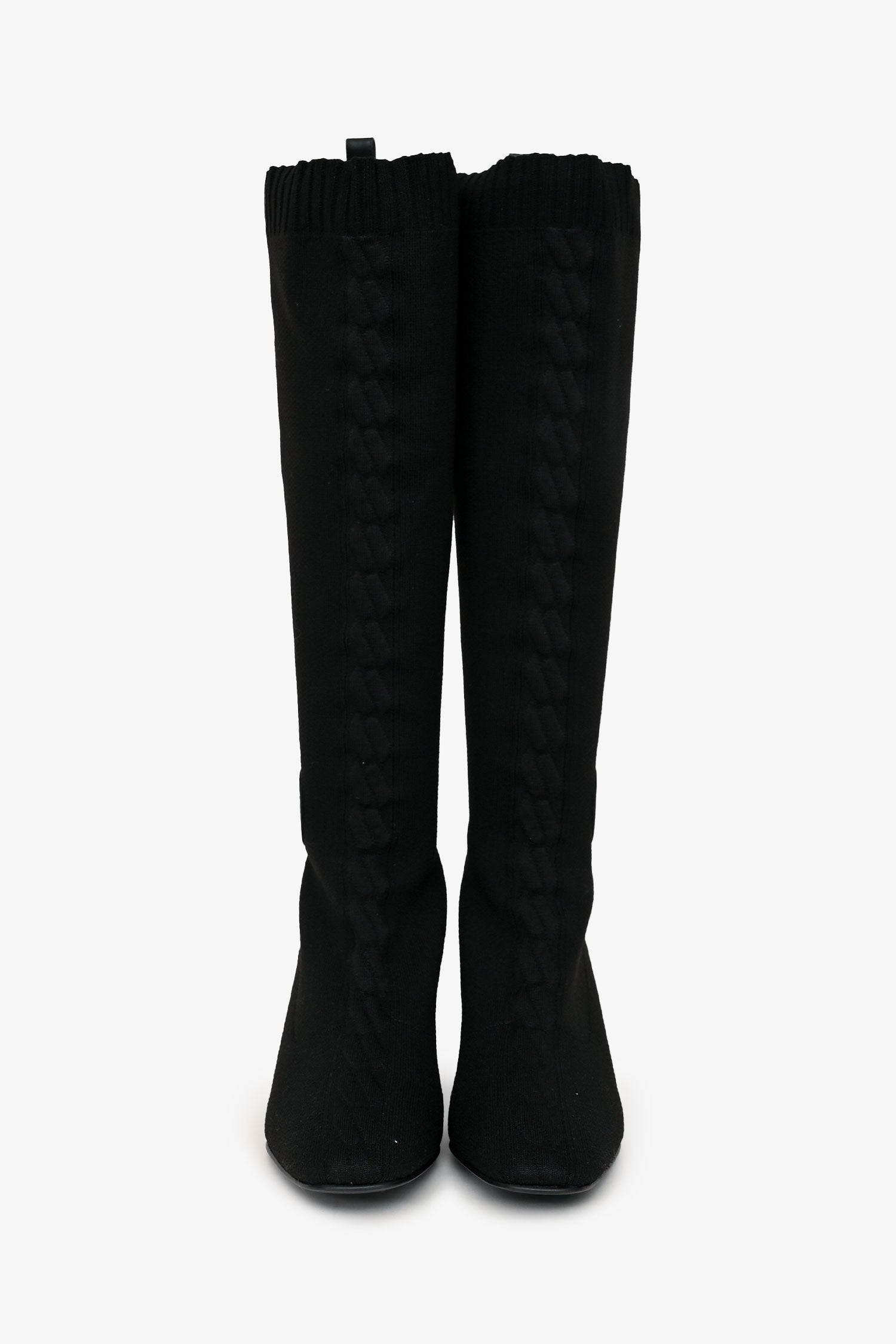 Hermès Black Fontaine 60 Knee High Boots Size 37.5