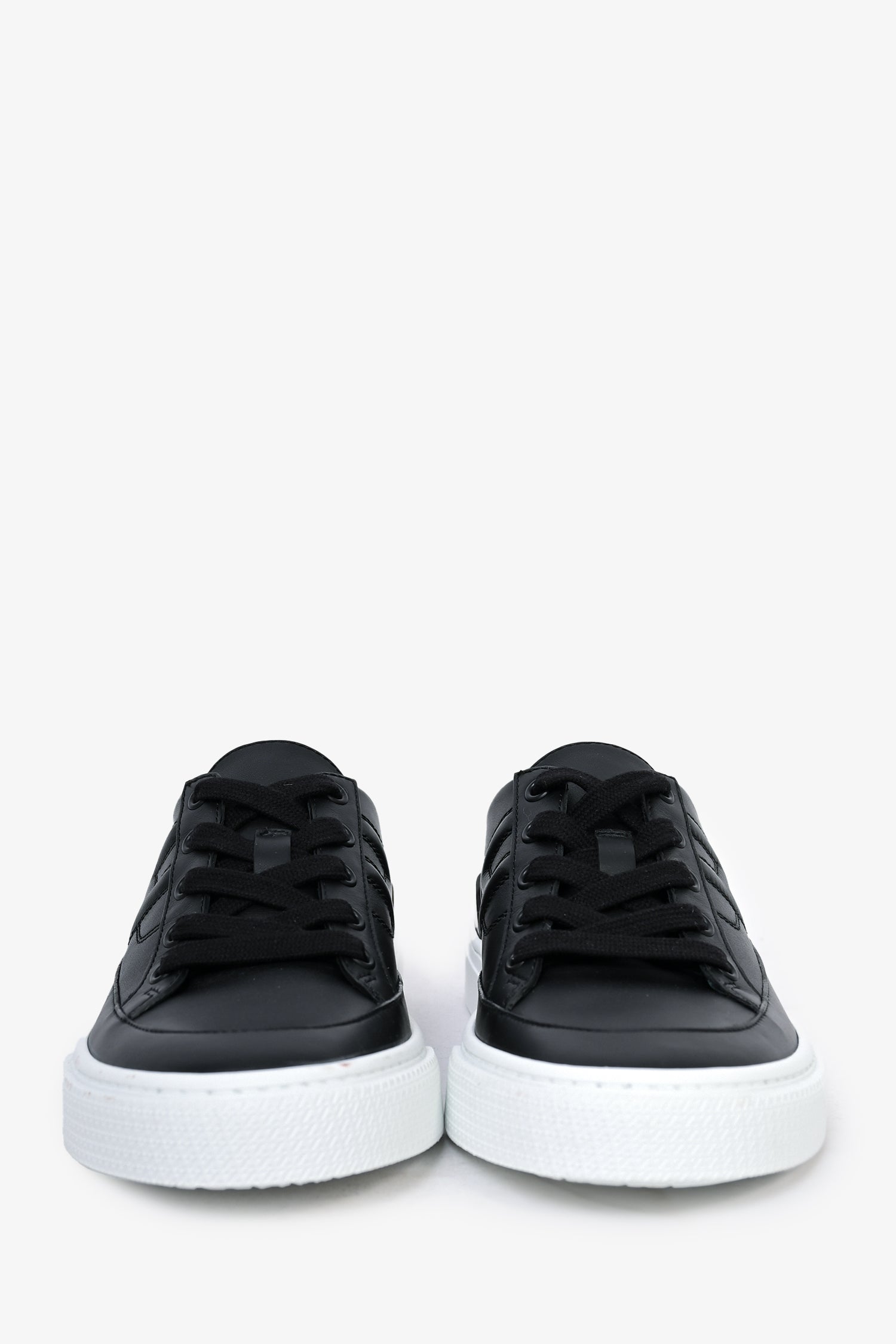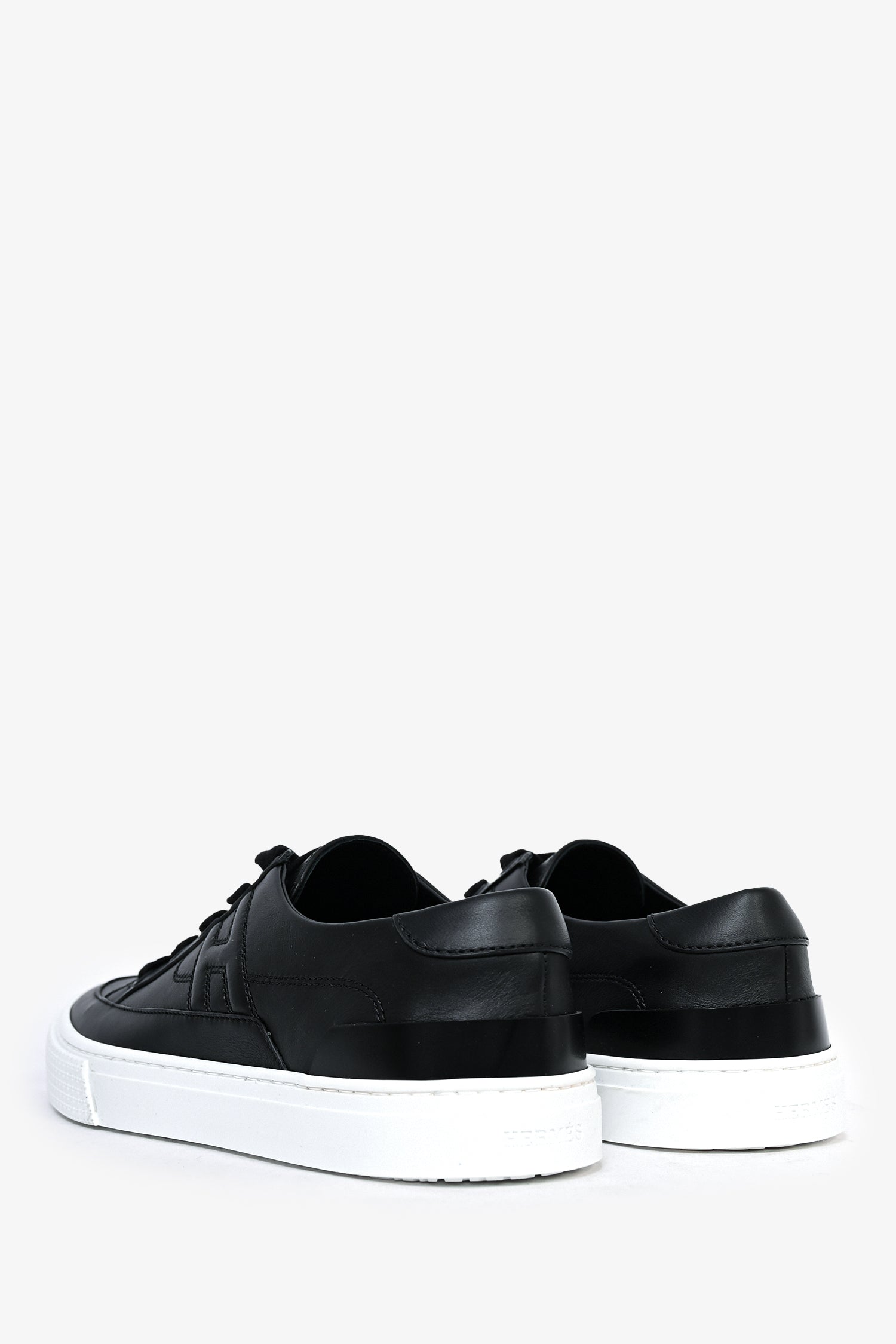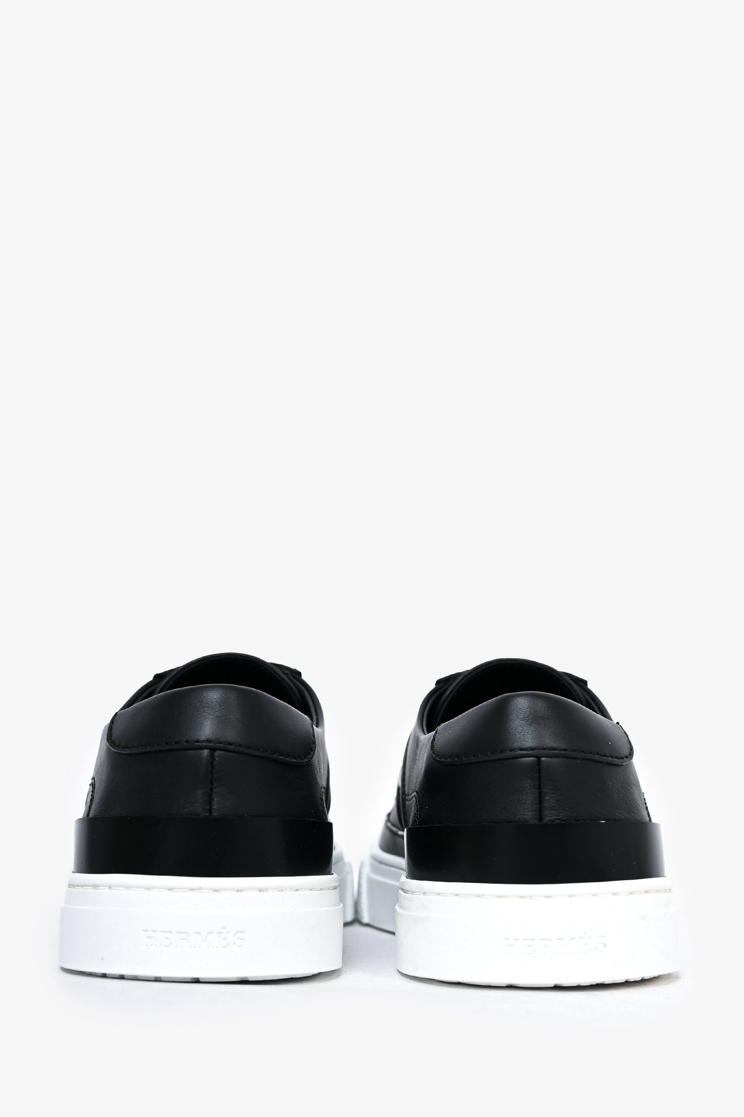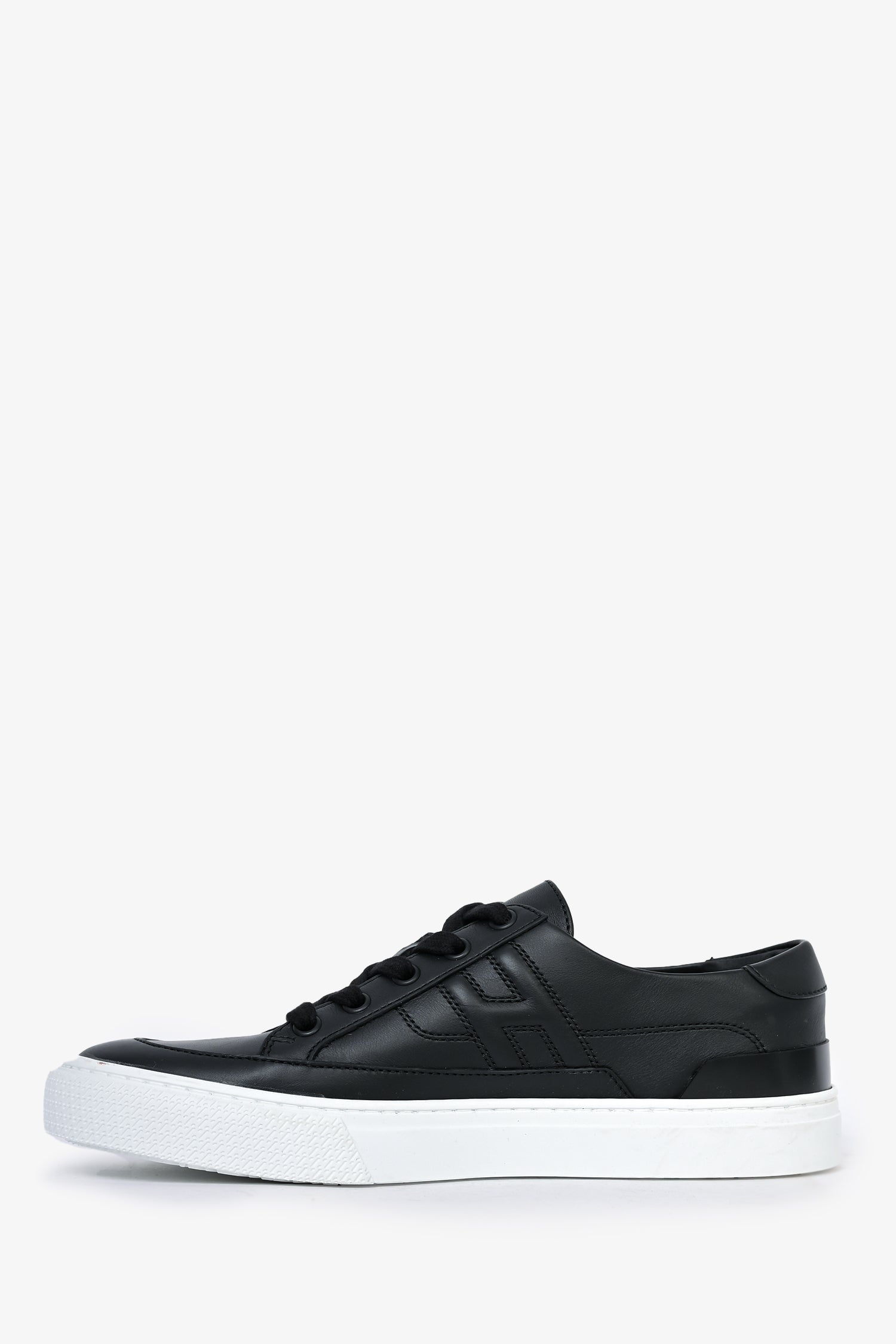 Refresh availabilityHermès Black Leather 'Deep' Sneakers. Round toe. Lace-up closure.