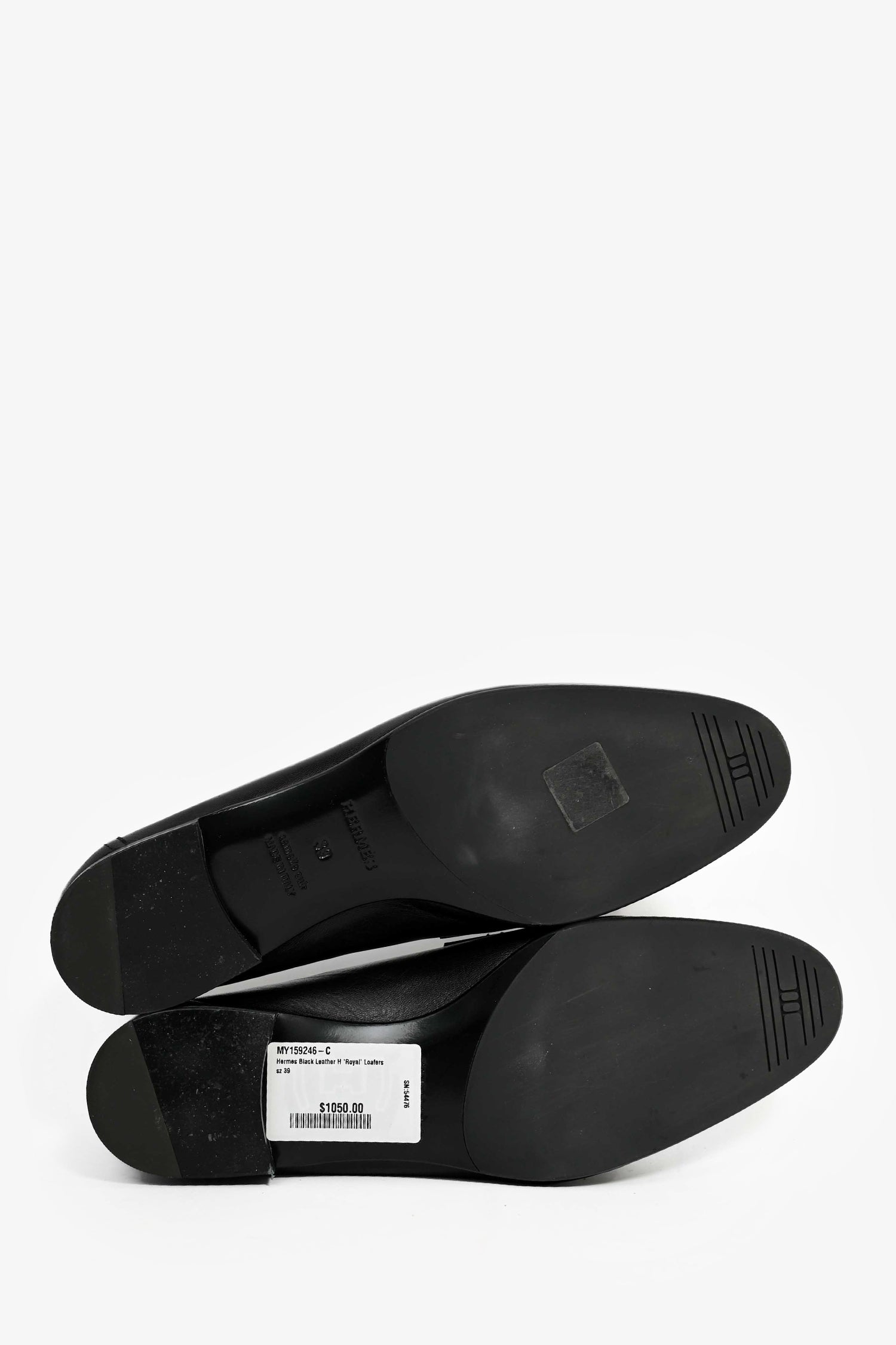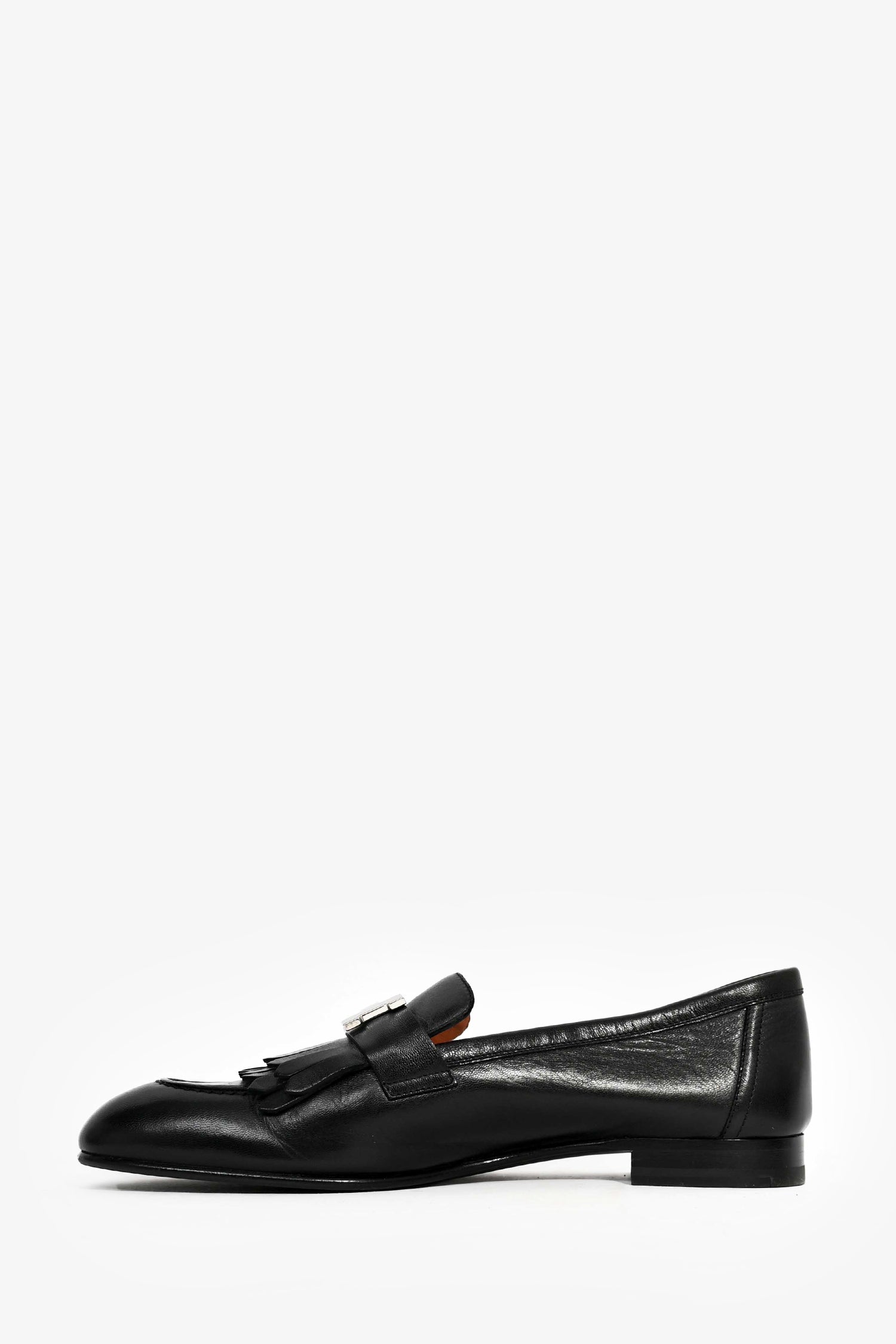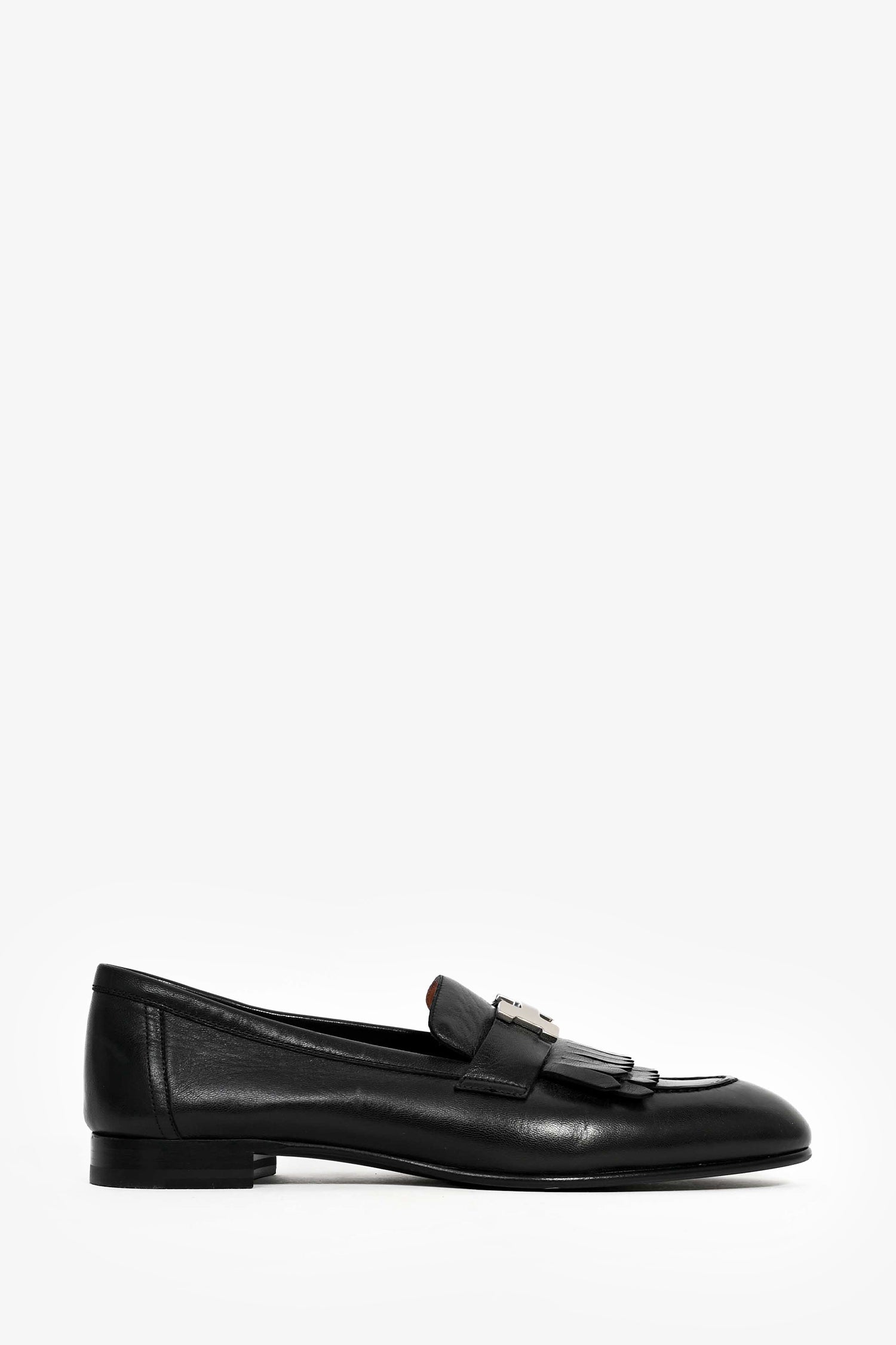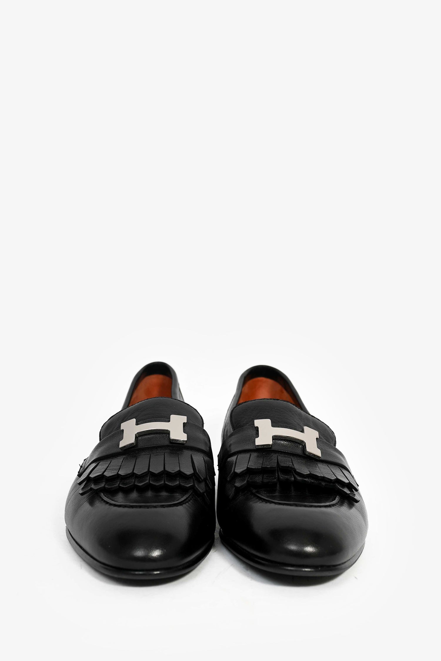 Refresh availabilityHermes Black Leather H 'Royal' Loafers. Silver-tone hardware. Leather insoles. Tonal stitching.