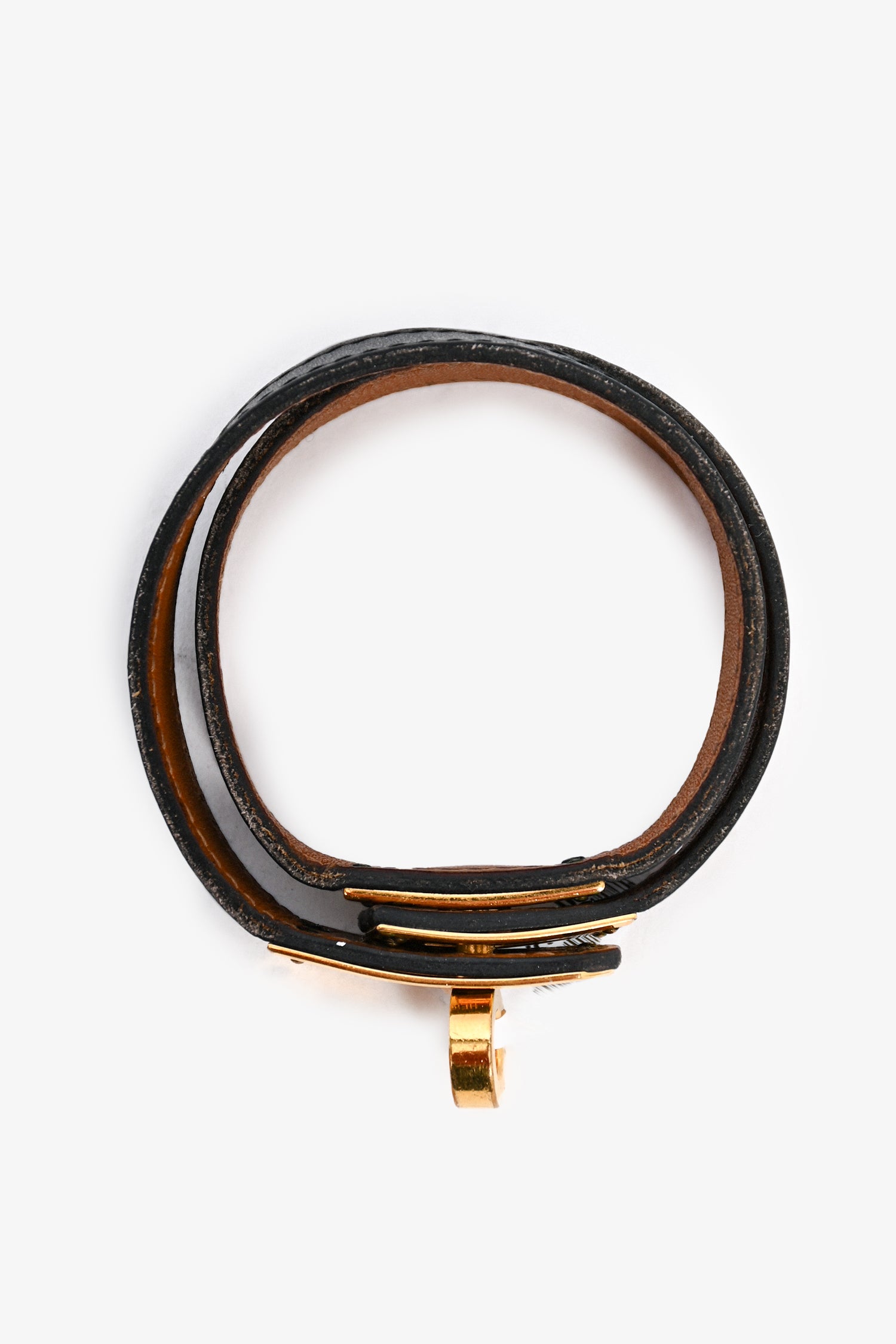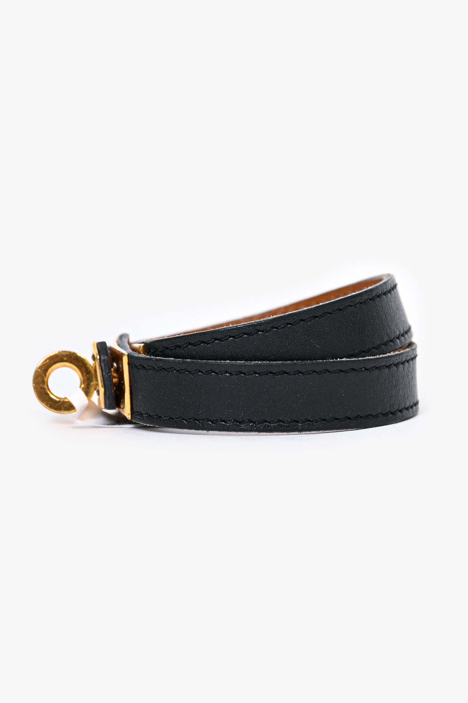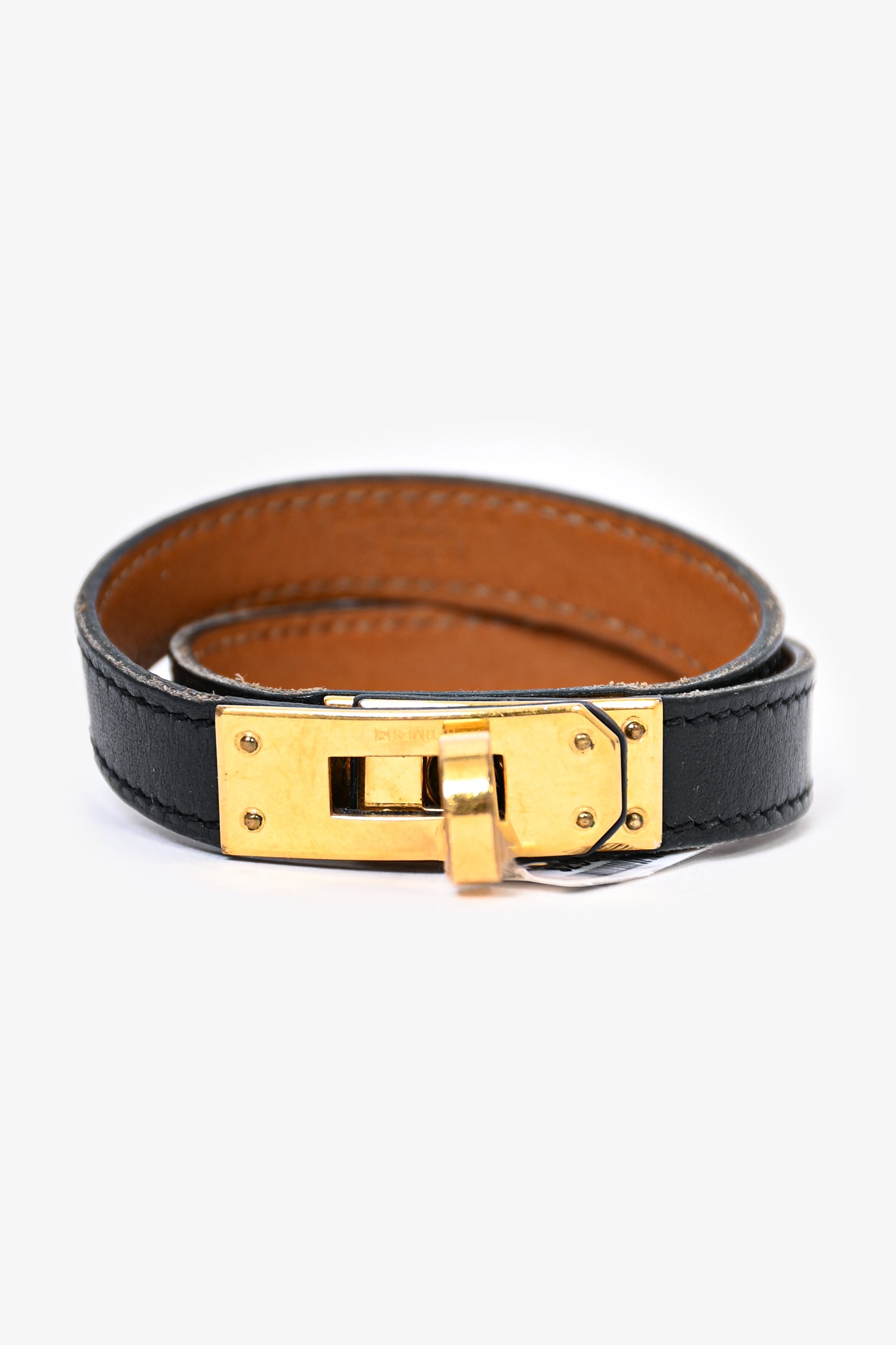 Hermès Black Leather Kelly Double Tour Bracelet (As Is)