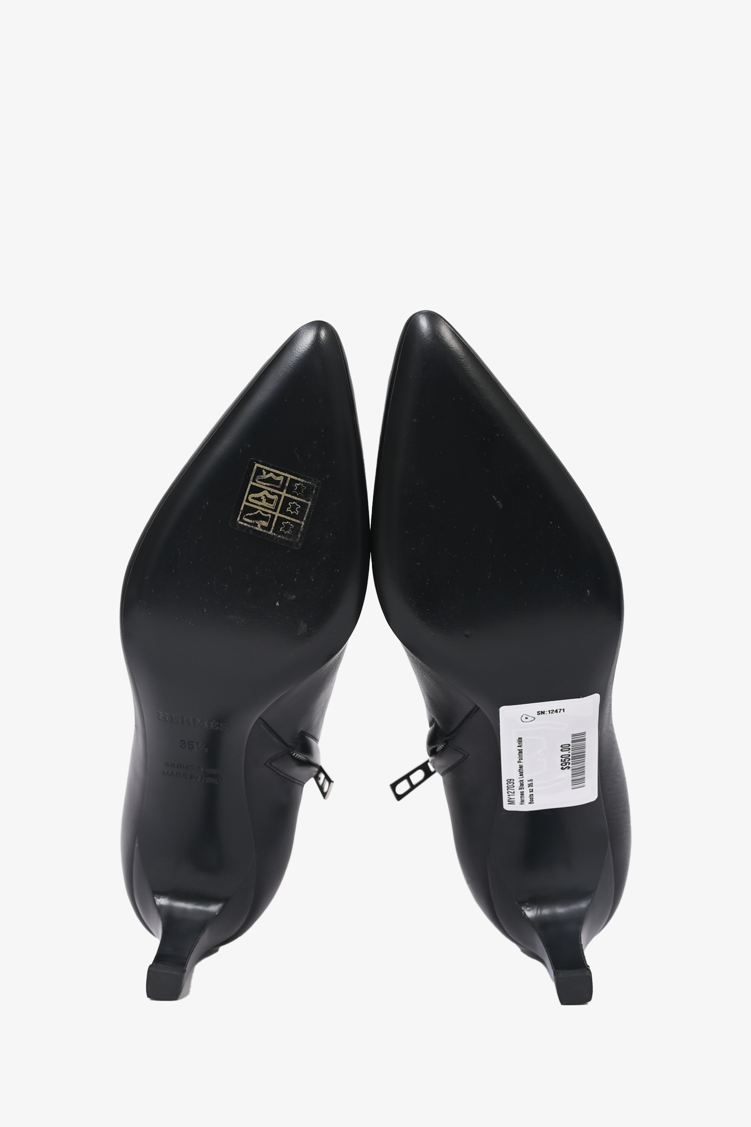 Hermès Black Leather Pointed Ankle Boots Size 35.5