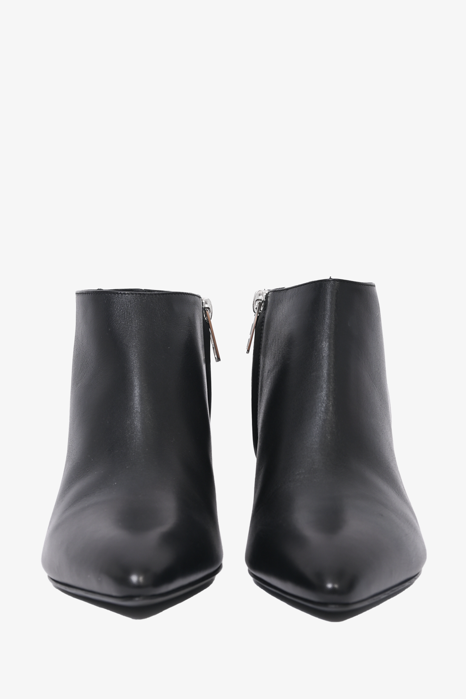 Refresh availabilityHermès Black Leather Pointed Ankle Boots. Side zip closure. Tonal stitching.