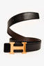 Hermès Black/Orange Reversible Leather Silver H Belt (As Is)