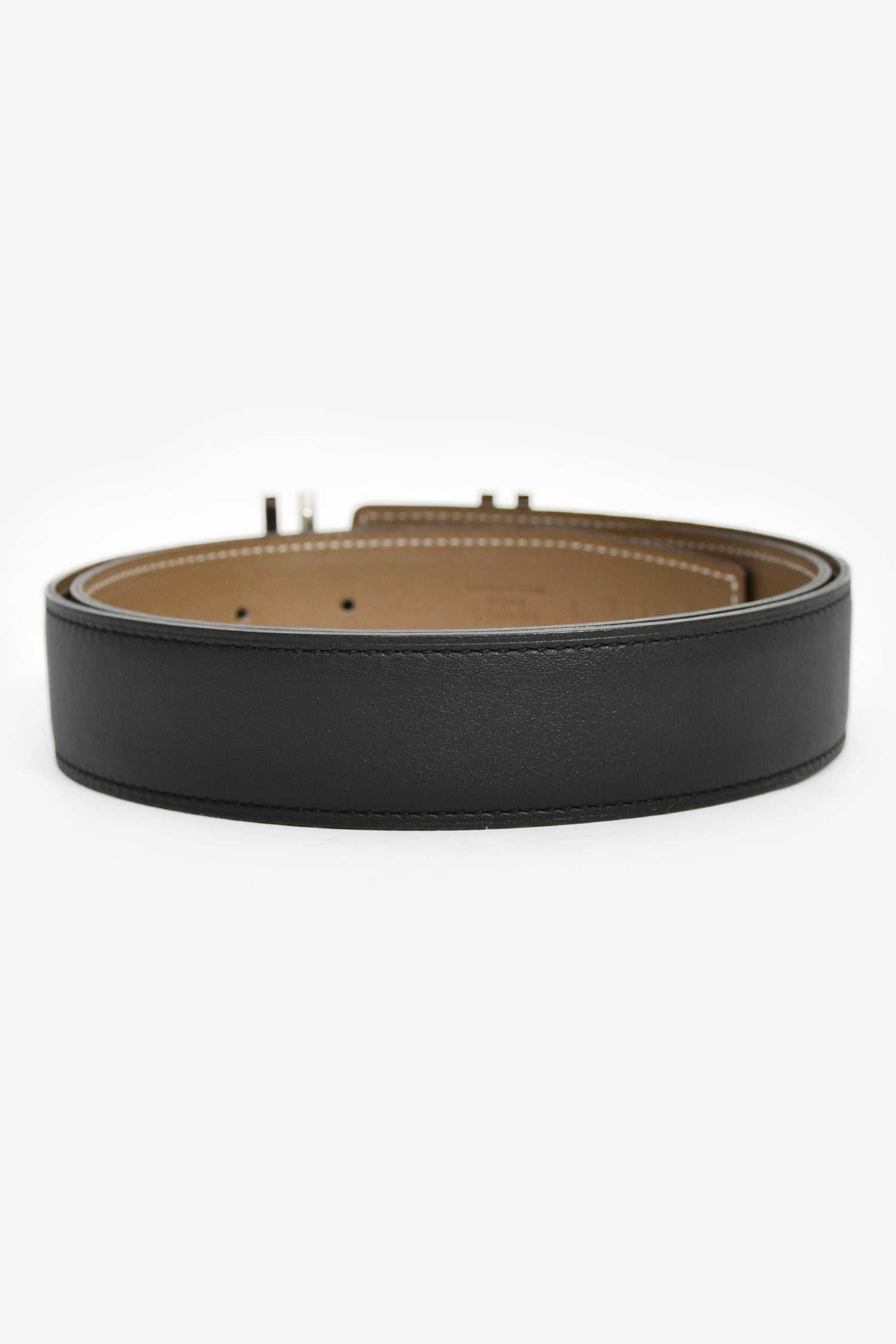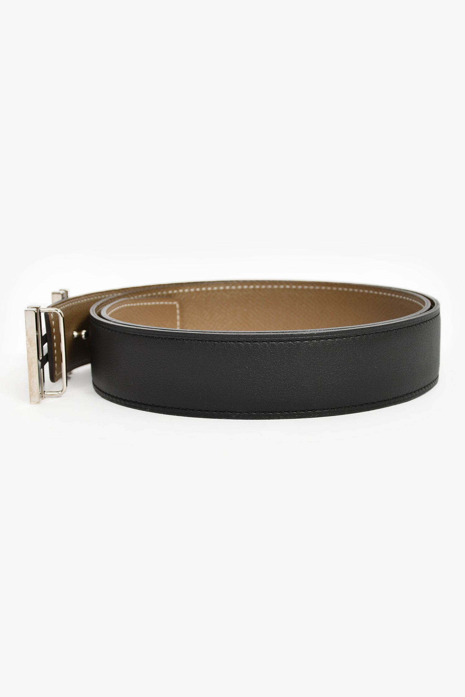 Hermès Black/Brown Leather H 'Au Carre' Buckle Belt Size 85