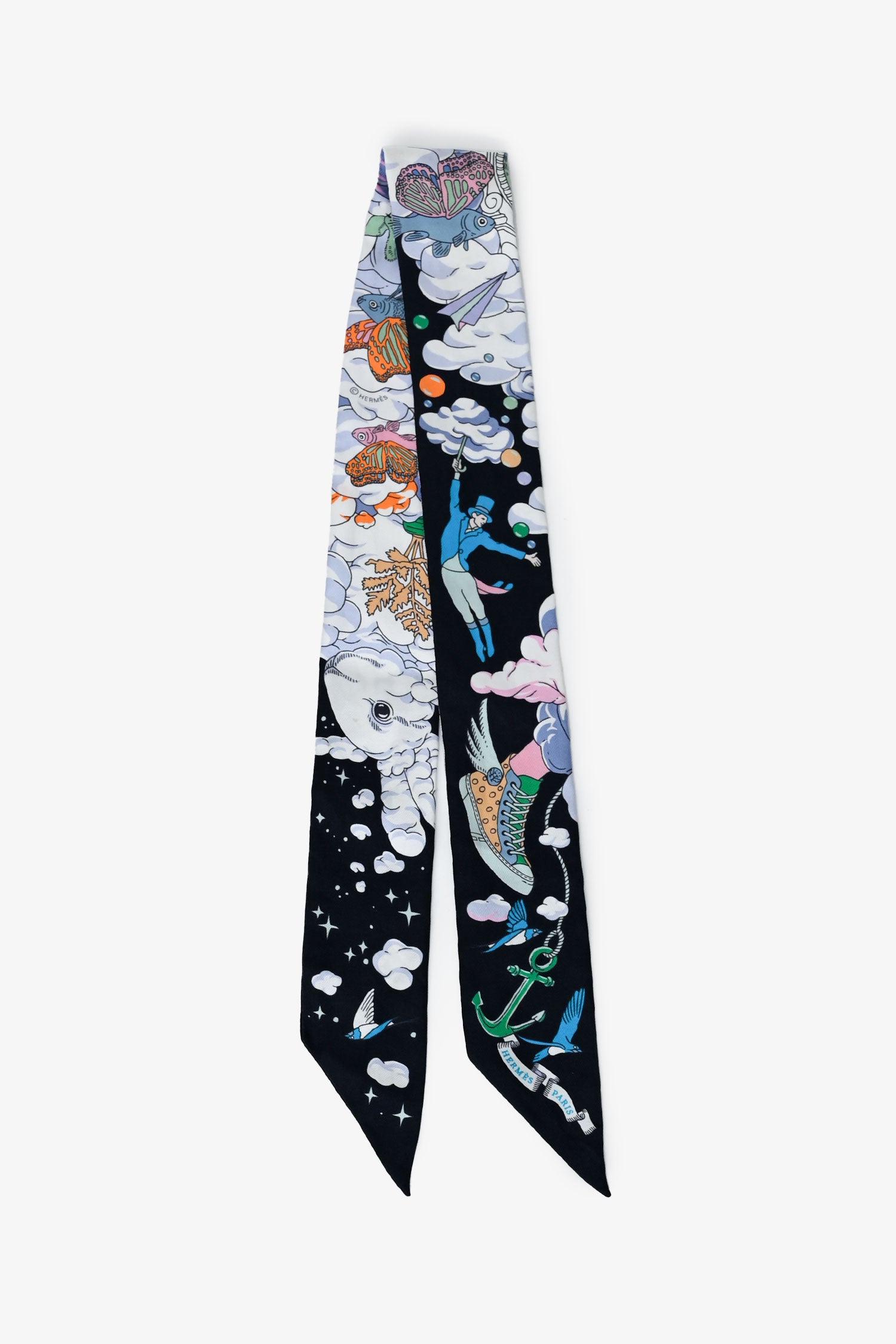 Refresh availabilityHermès Black/White Silk Graphic Print Twilly. Tonal stitching.