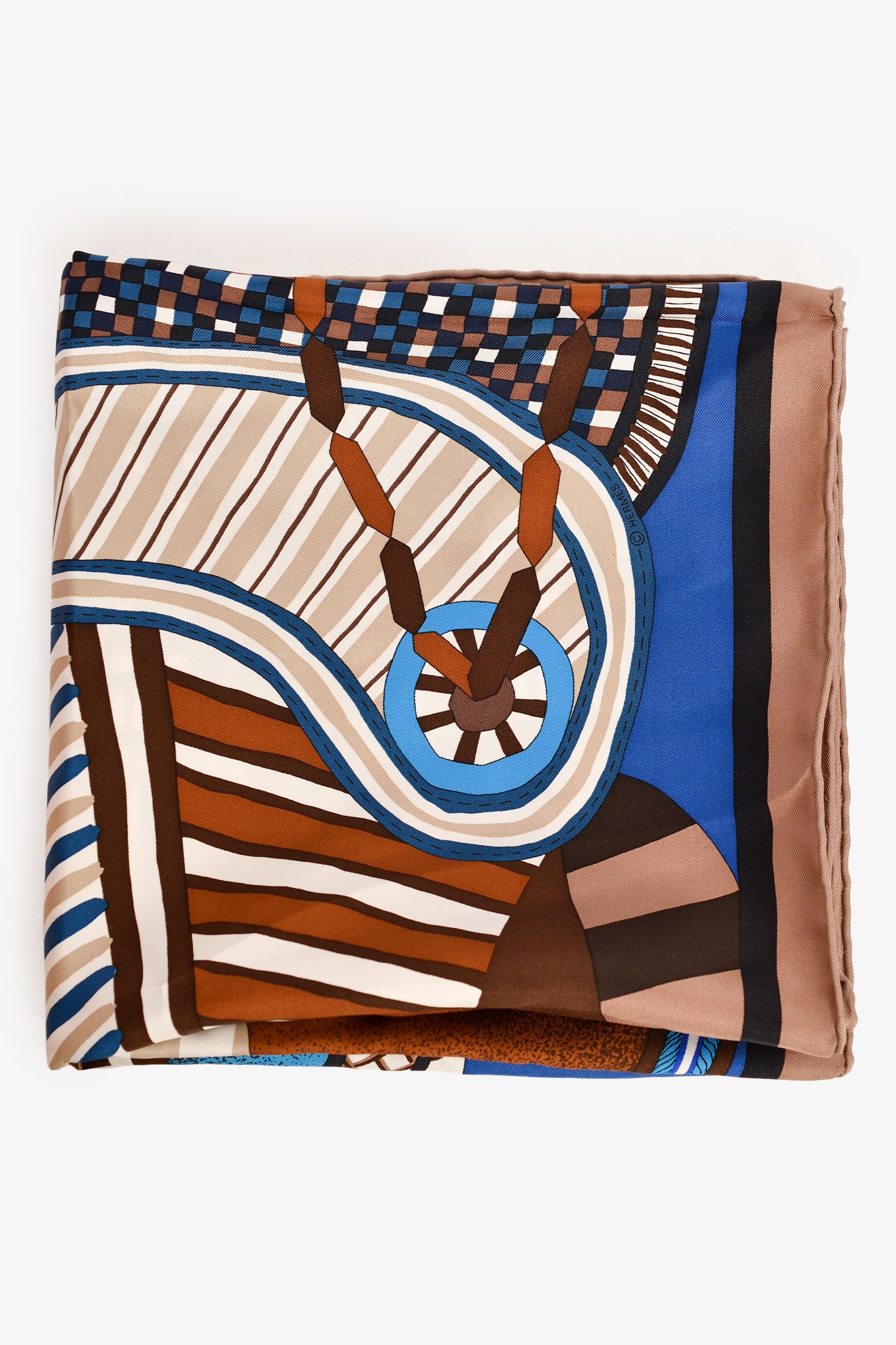 Hermès Blue/Brown Silk 'Imaginaire' Scarf 90