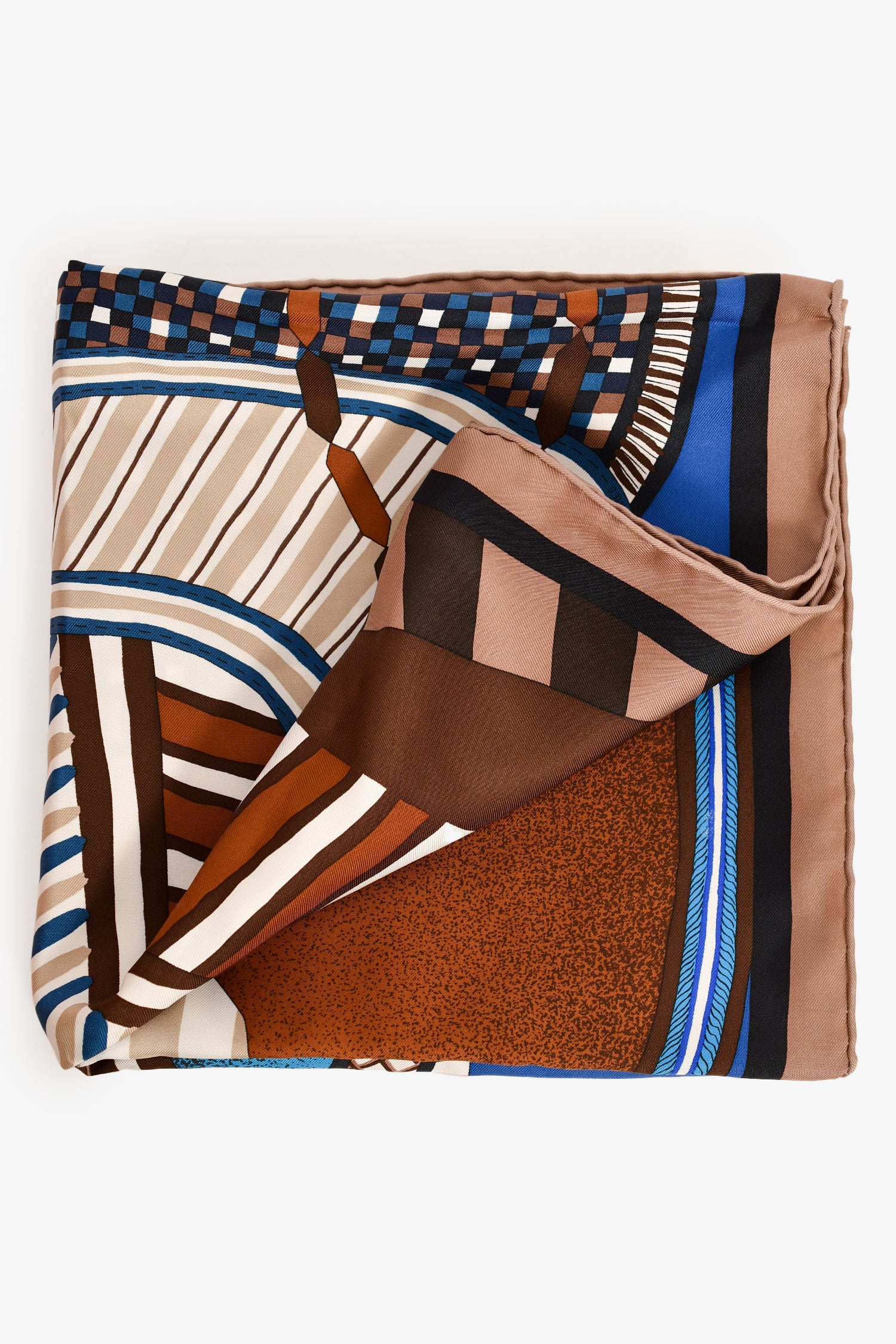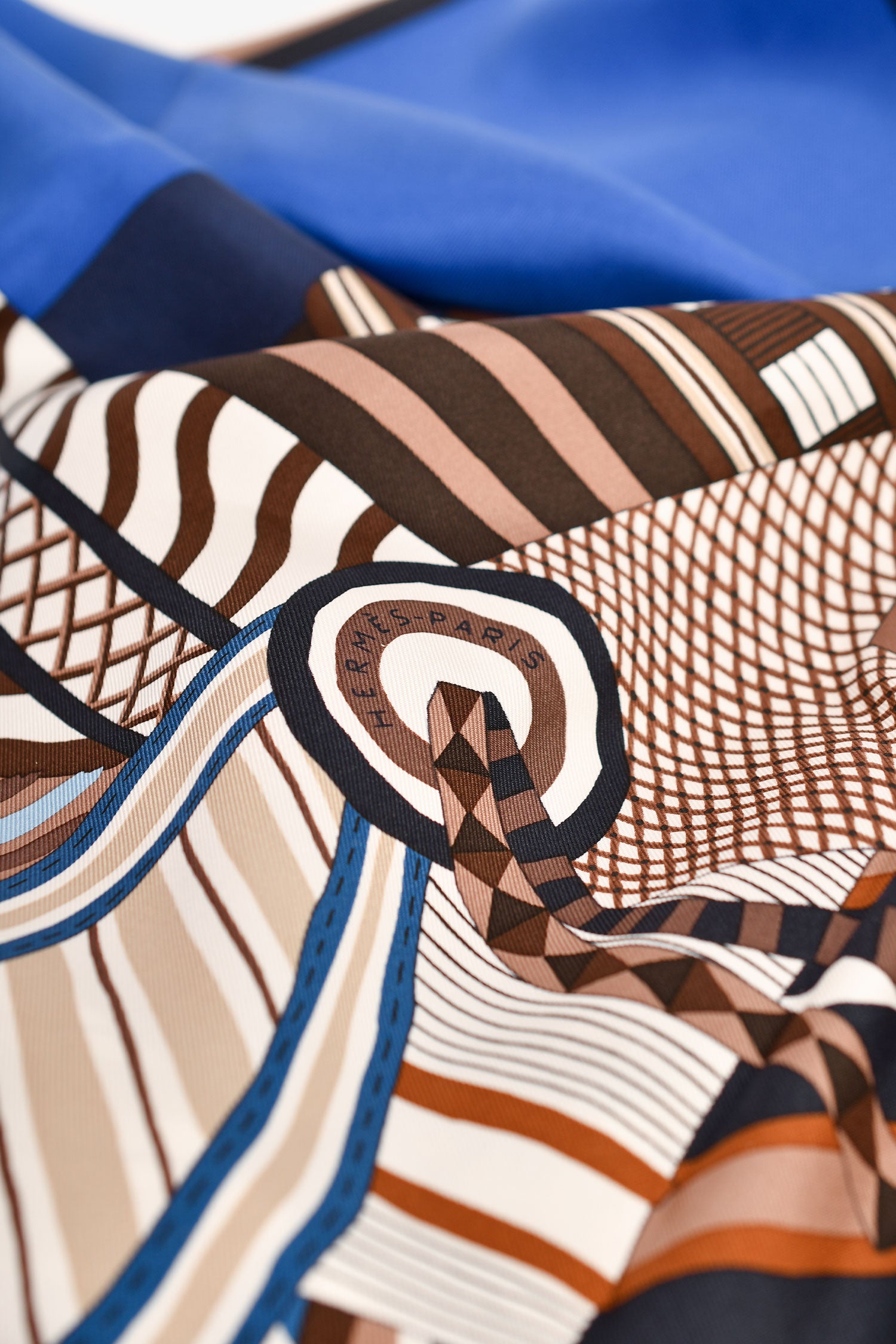 Refresh availabilityHermes Blue/Brown Silk 'Imaginaire' Scarf 90. Tonal stitching.