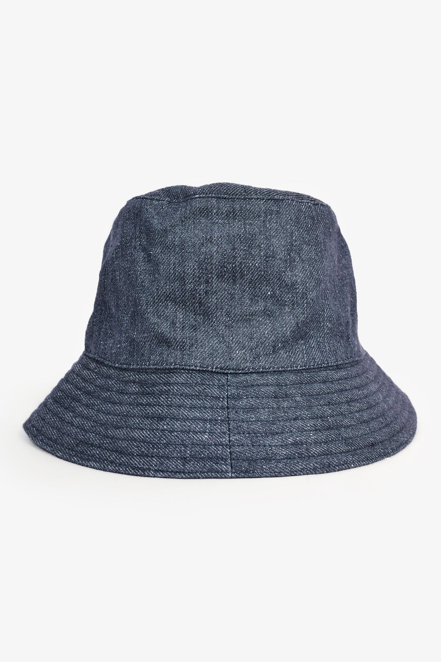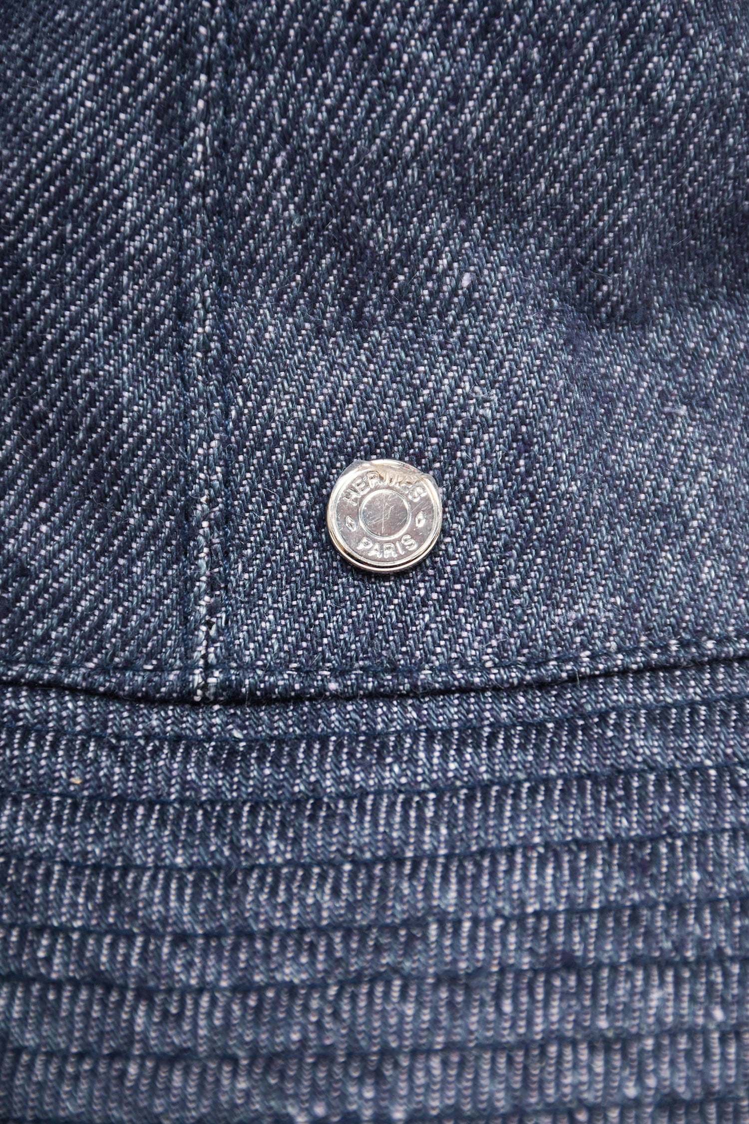 Refresh availabilityHermes Blue Denim Bucket Hat. Lined interior. Wide brim. Interior motif. Silver-tone hardware. Tonal stitching.