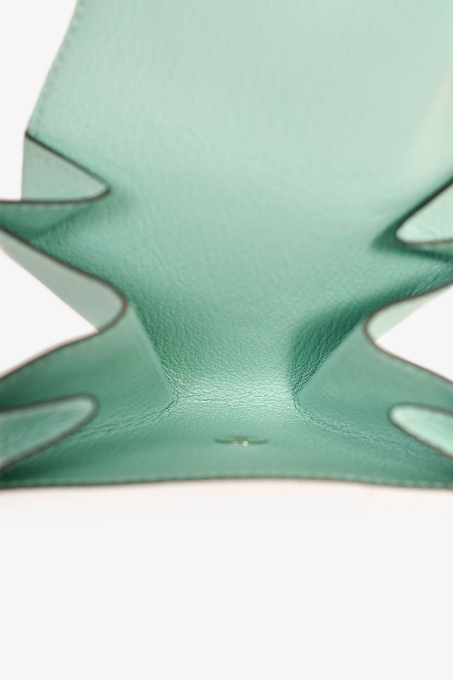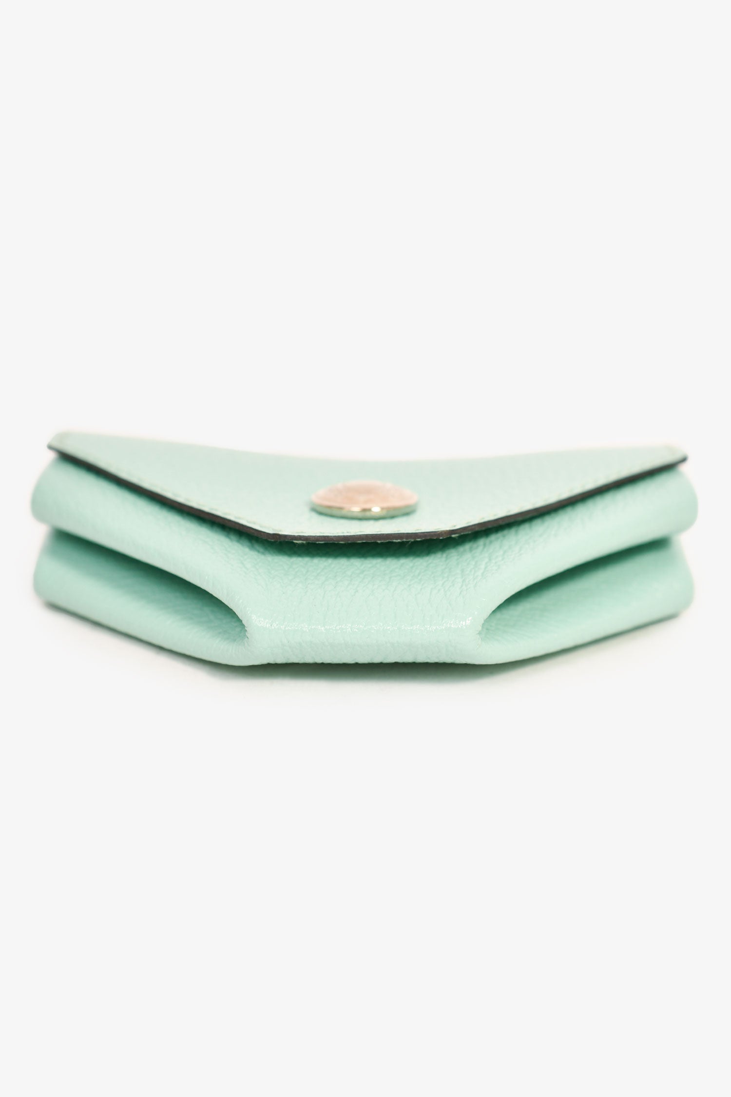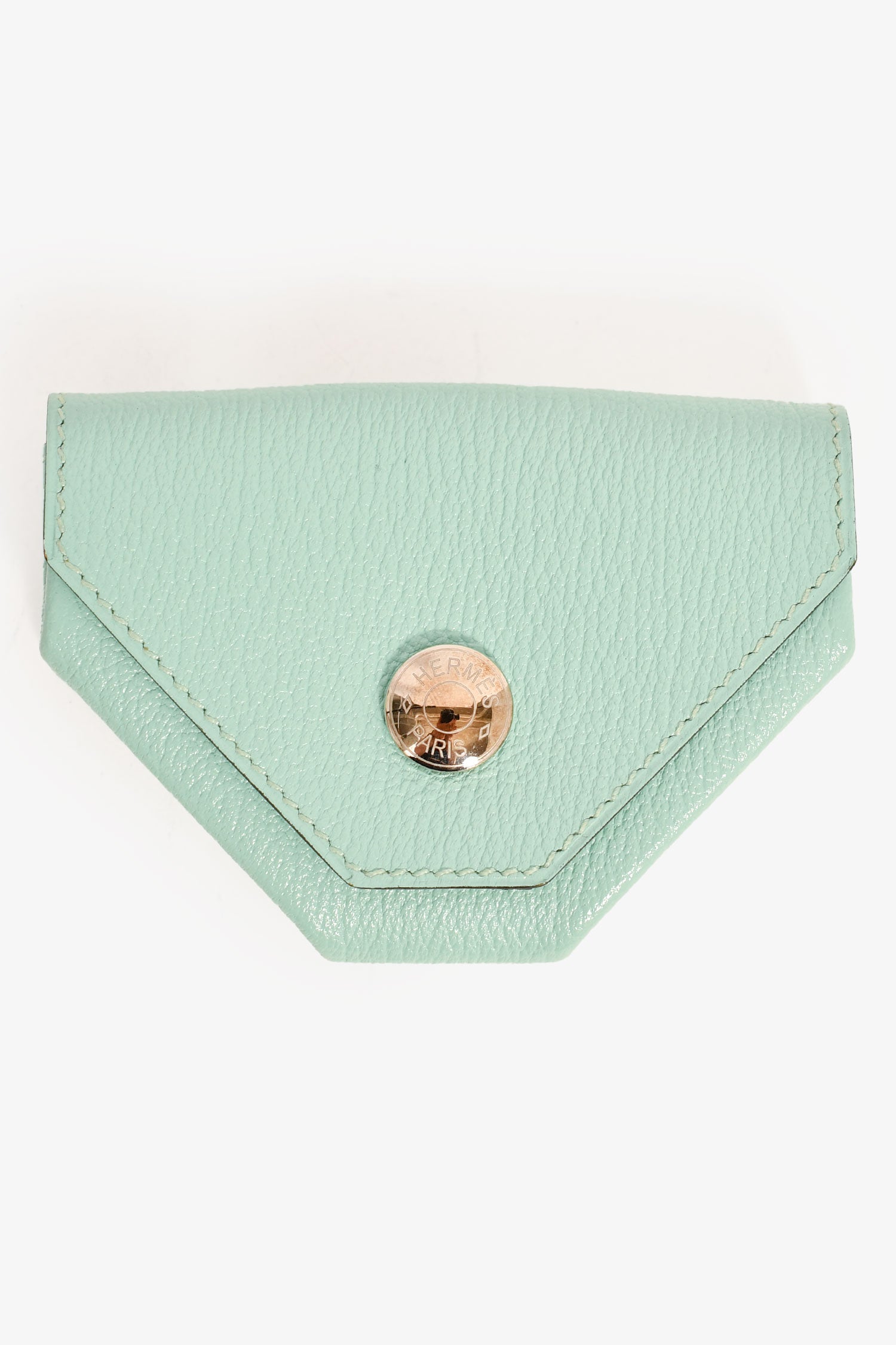 Refresh availabilityHermès Blue Leather Porte Monnaie 24. Fold-over flap with a snap closure. Coated trimming. Silver-tone hardware. Folded sides.