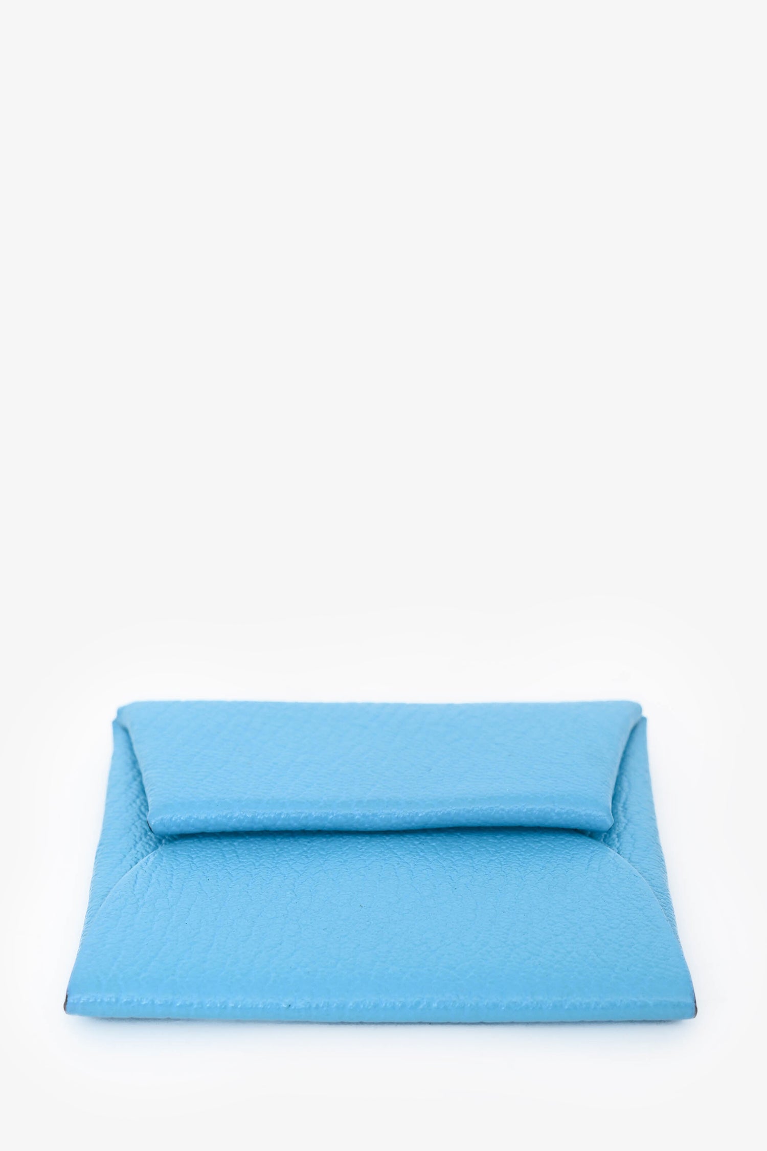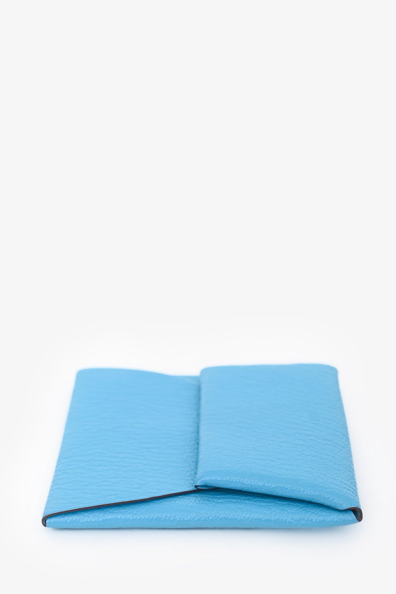 Refresh availabilityHermès 2013 Blue Mysore Chevre Leather Bastia Change Purse. Fold over flap with snap closure. Tri-fold envelope design. Tonal stitching.