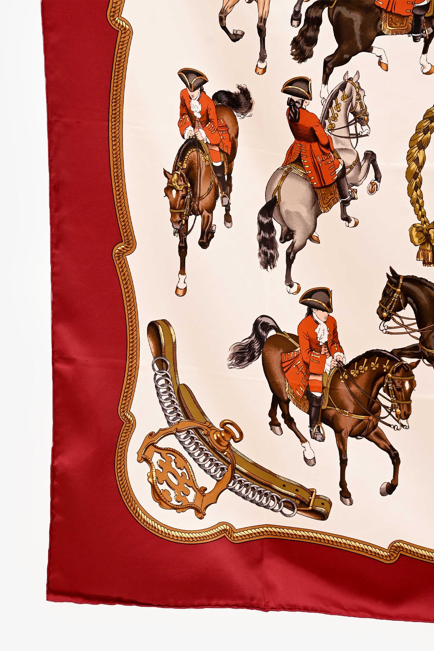 Hermès Burgundy/White Silk Printed 'Reprise' Scarf Size 90