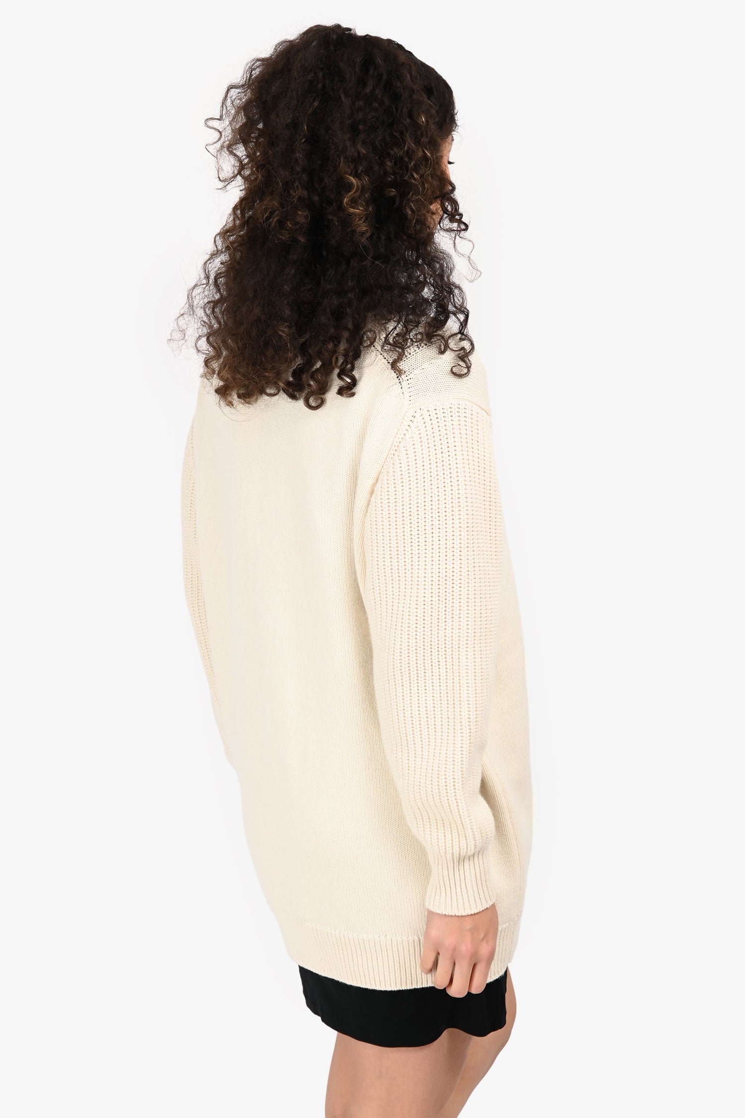 Hermès Cream Cashmere Logo Oversized Cardigan Size 36