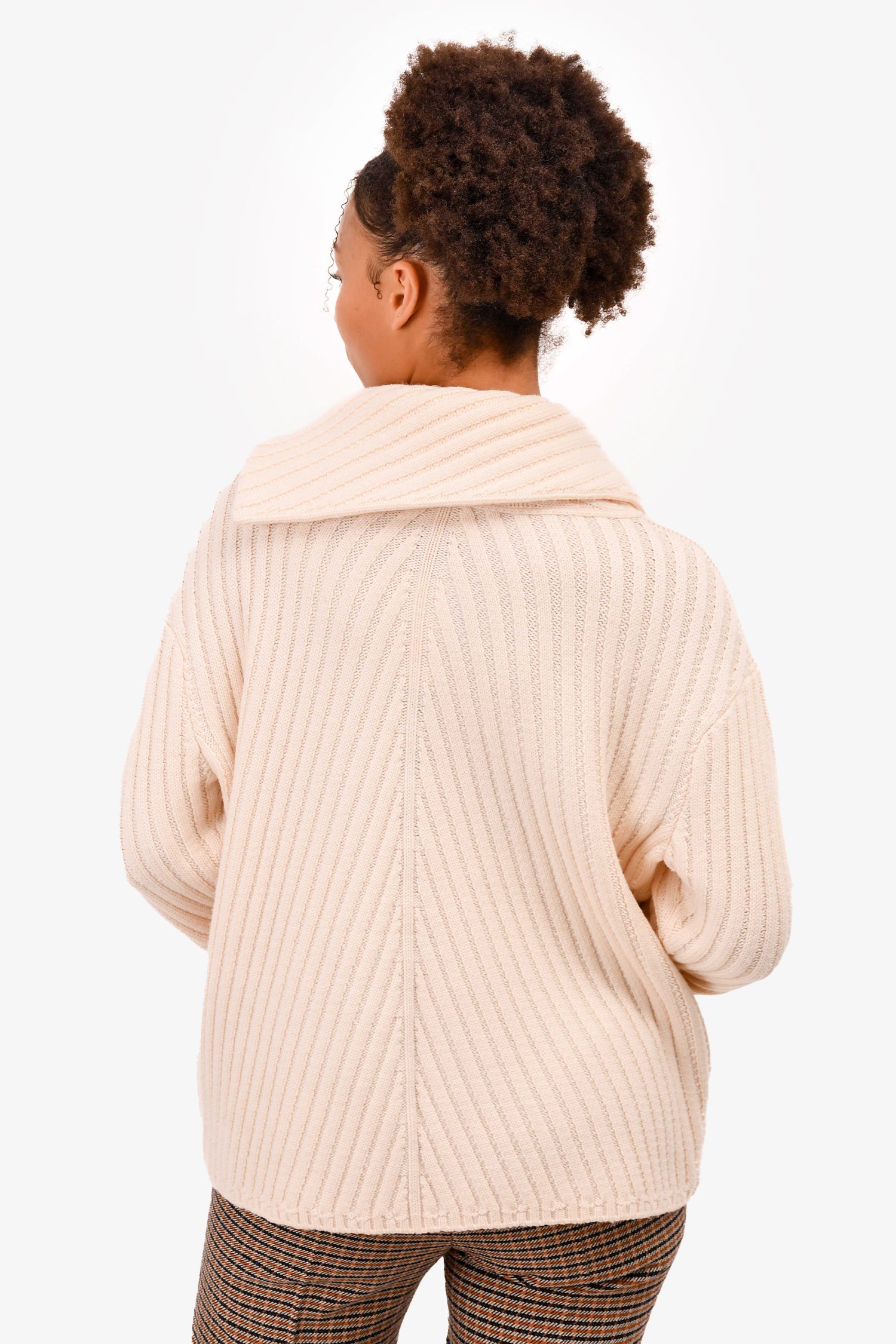 Hermès Cream Wool Ribbed Sweater Size 42