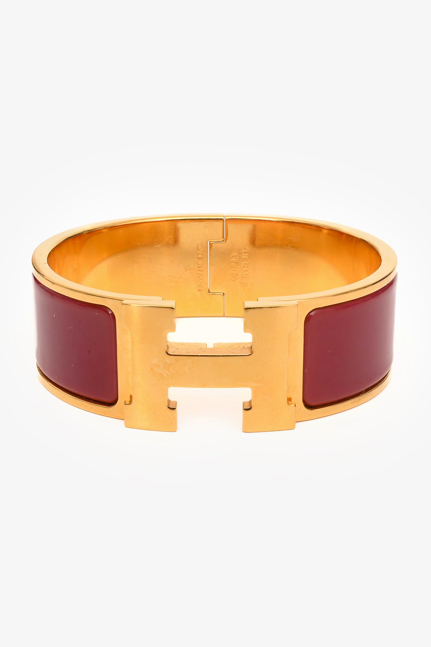 Refresh availabilityHermès Dark Purple Enamel/Gold Toned Metal Clic Clac Bracelet. Hinged closure with signature H clasp.