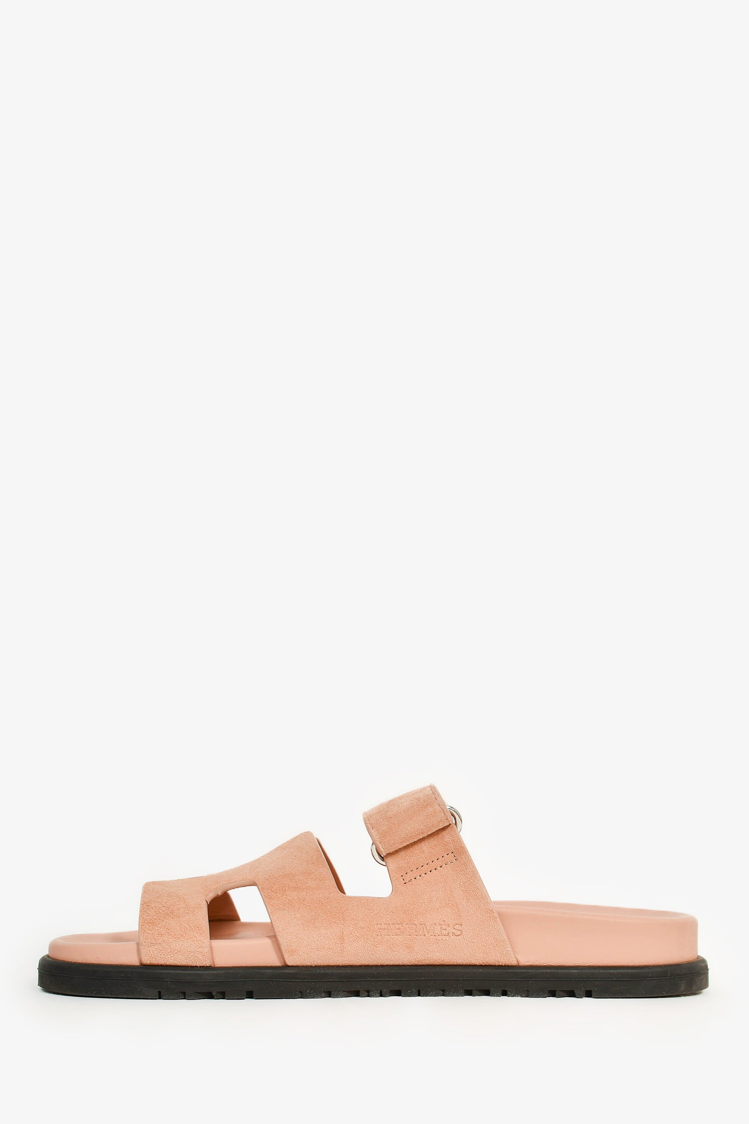 Refresh availabilityHermès Dusty Rose Suede 'Chypre' Sandals. Round toe. Suede trimming. Leather insoles. Rubber soles. Tonal stitching.