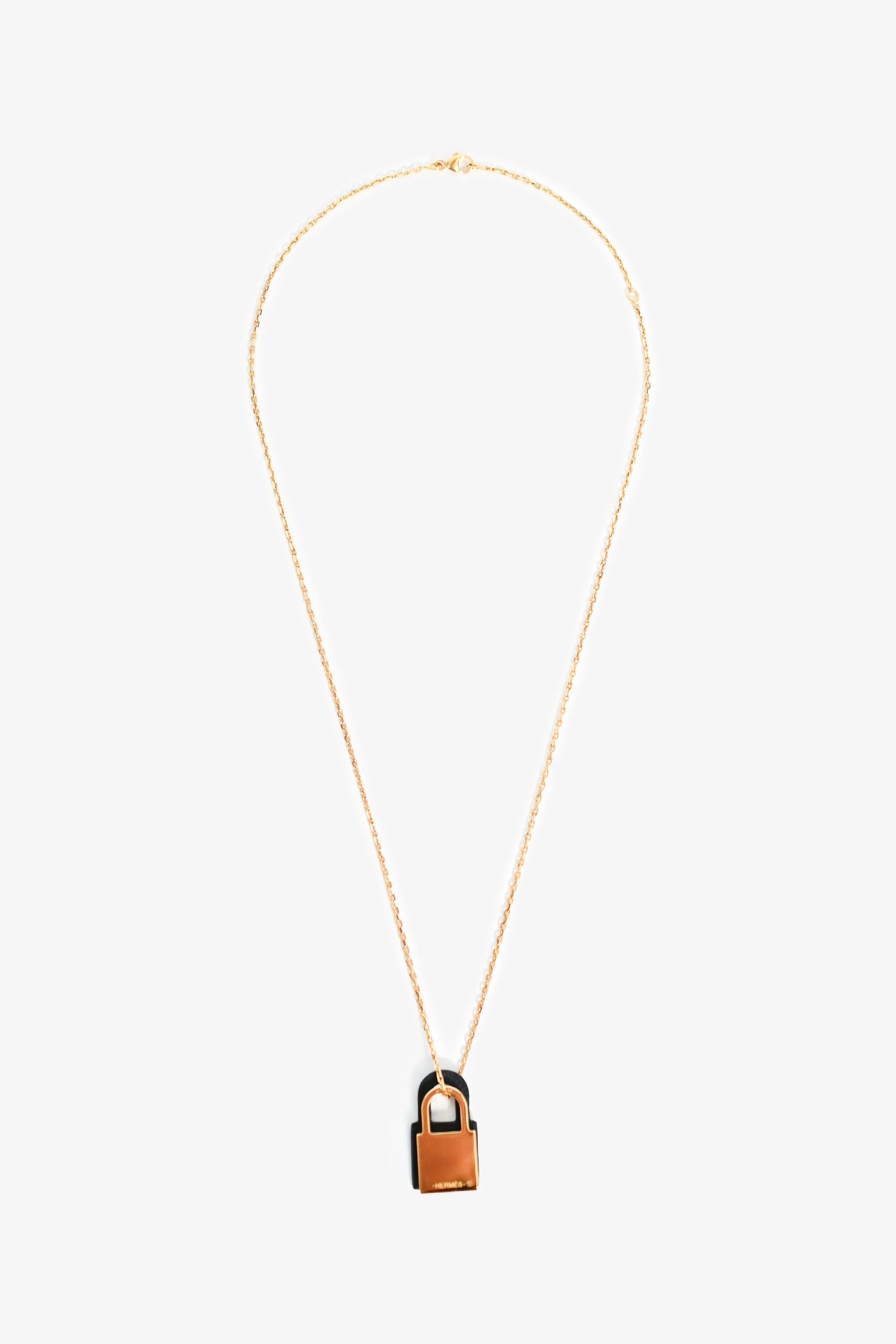 Refresh availabilityHermès Gold Plated and Black Leather O'Kelly Pendant Necklace. Lobster clasp closure.