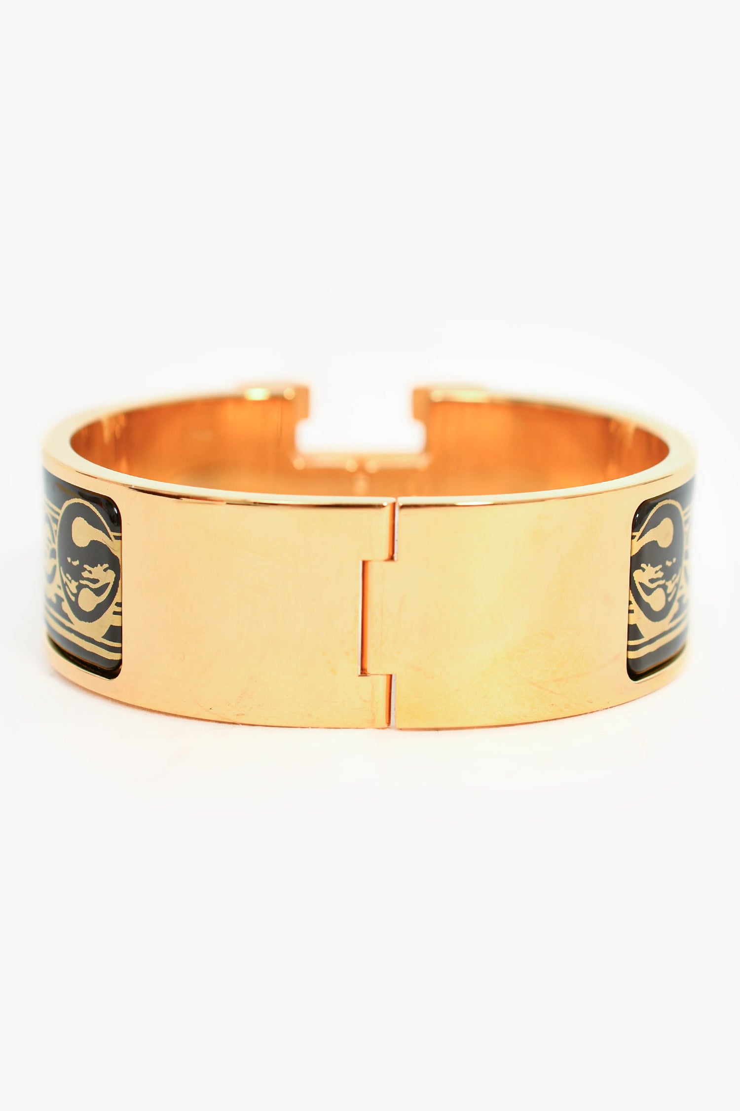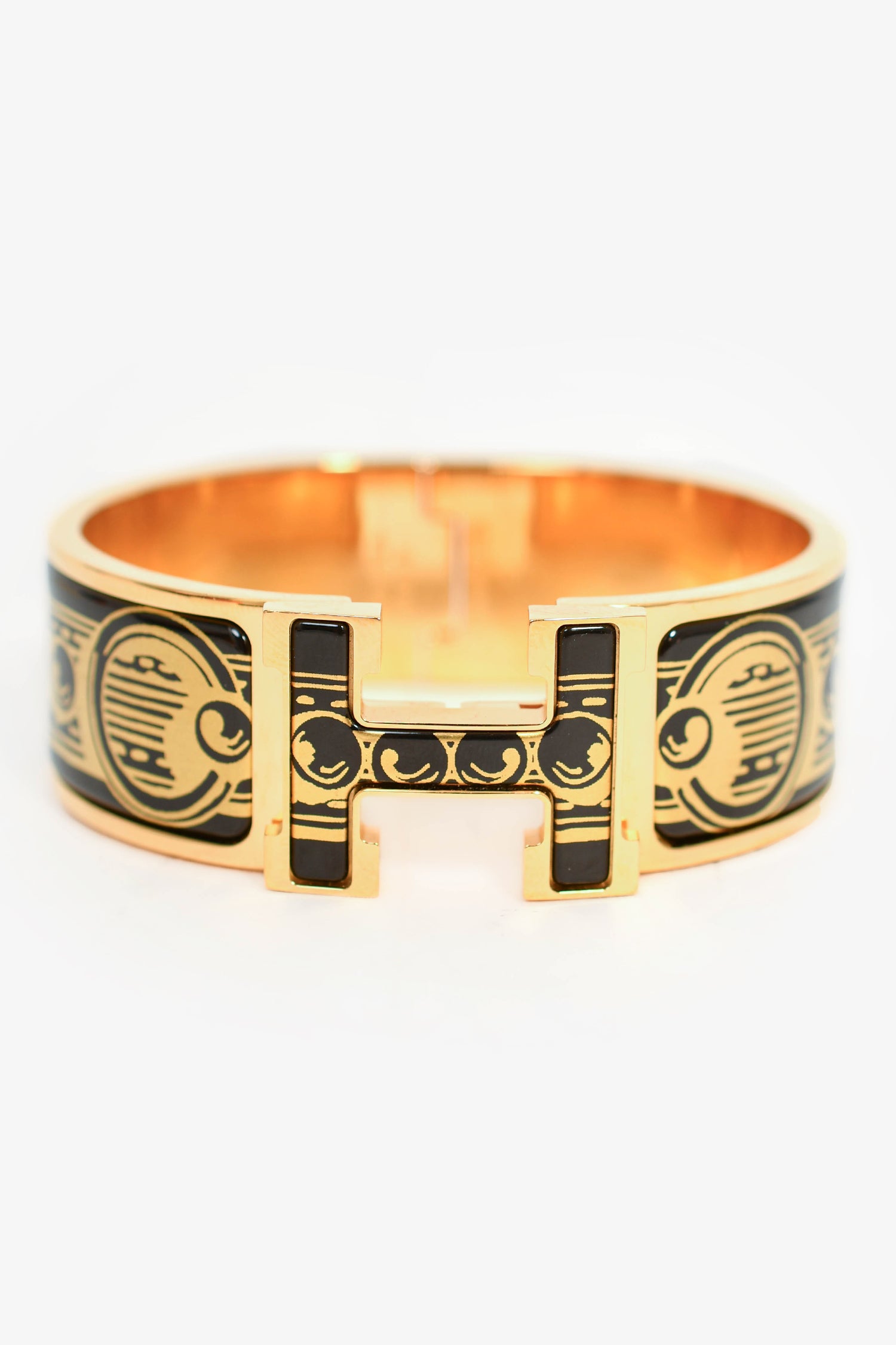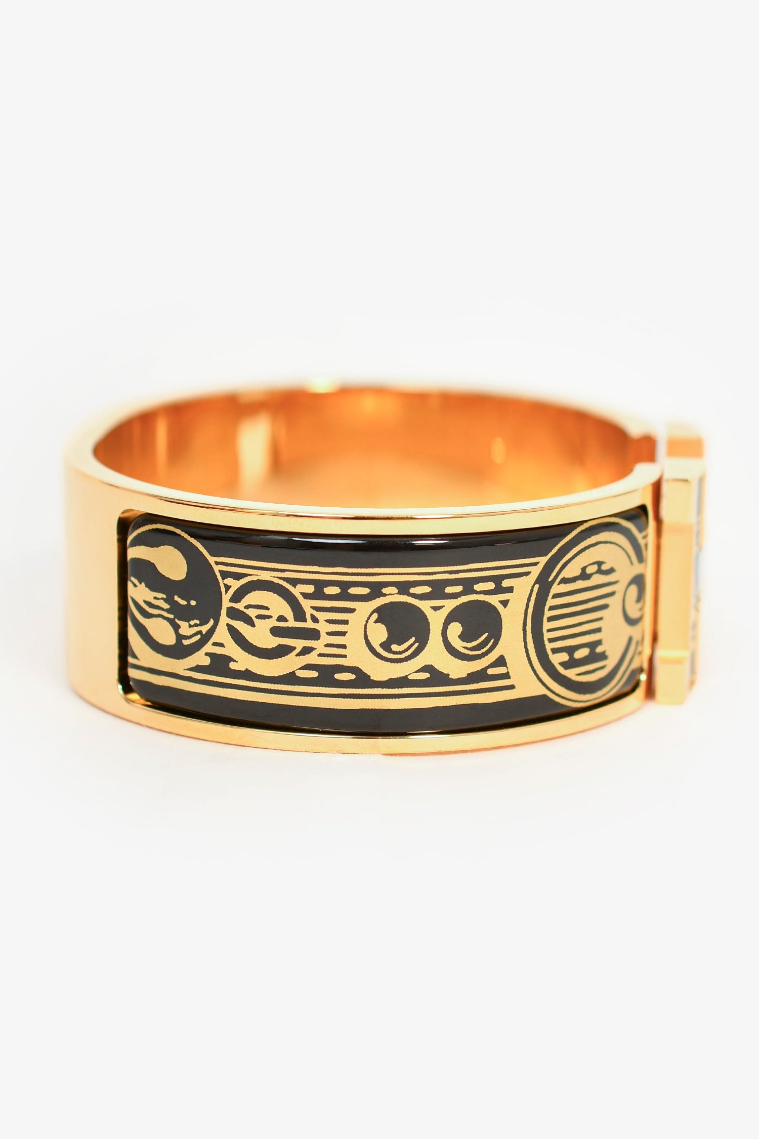 Refresh availabilityHermès Gold Plated/Black 'Bijoux Trompe L'Oleil Bracelet. Turn-lock "H" closure.