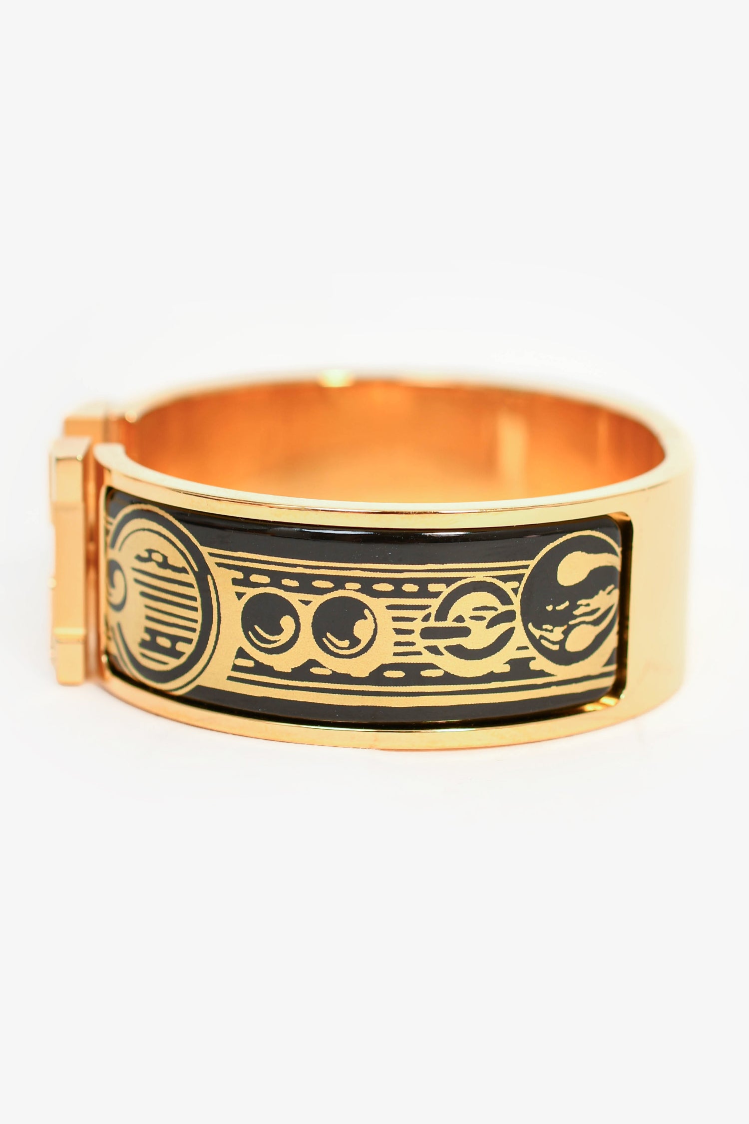 Hermès Gold Plated/Black 'Bijoux Trompe L'Oleil' Bracelet Size PM