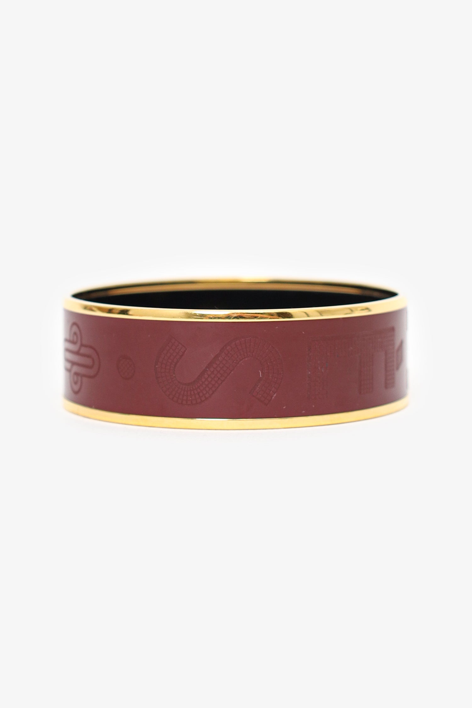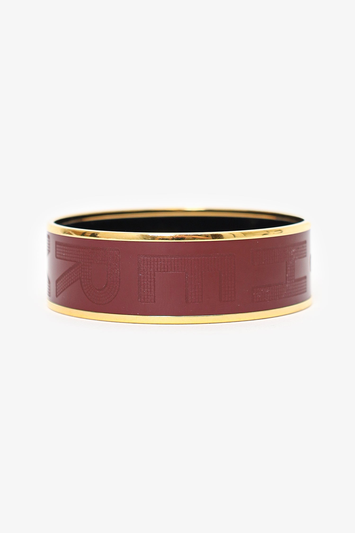 Hermès Gold Tone/Burgundy Enamel Wide Bangle