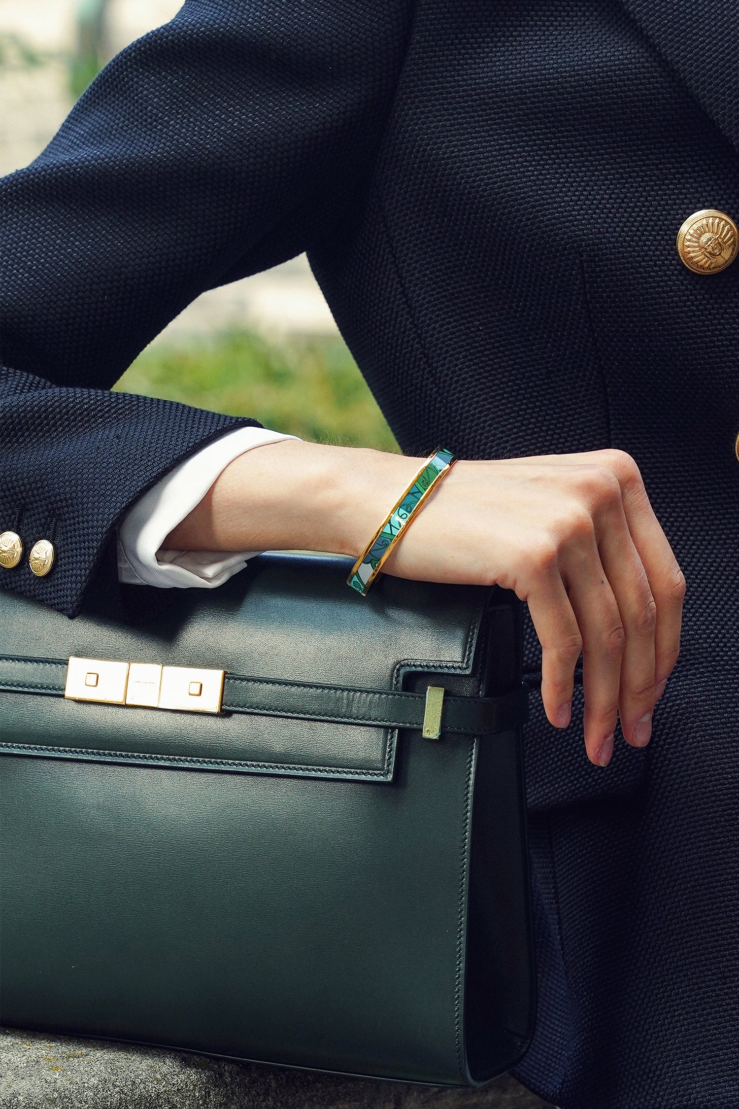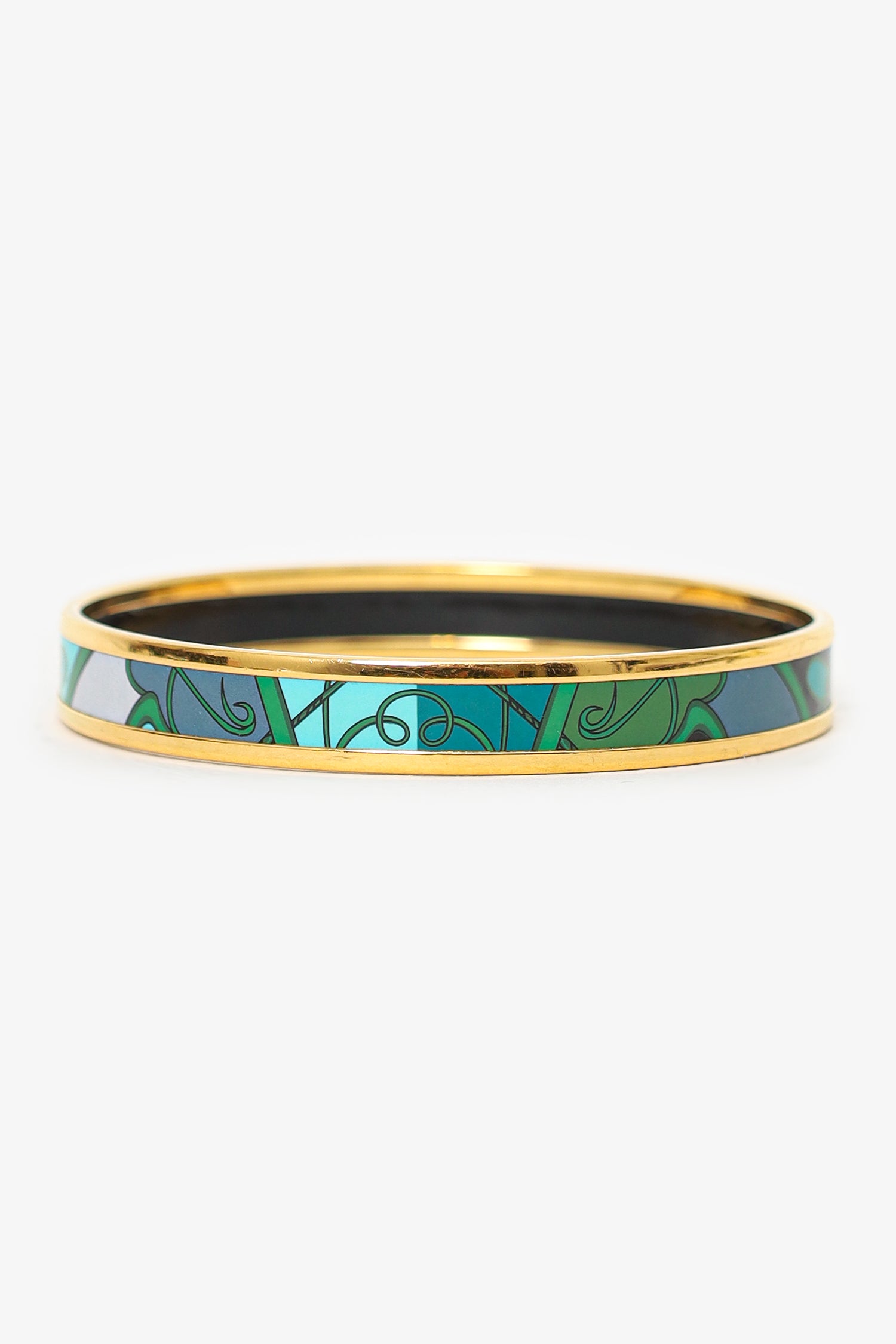 Refresh availabilityHermès Gold Tone Green/Multicolour Enamel Thin Bangle. Slip-on. Gold-tone hardware.