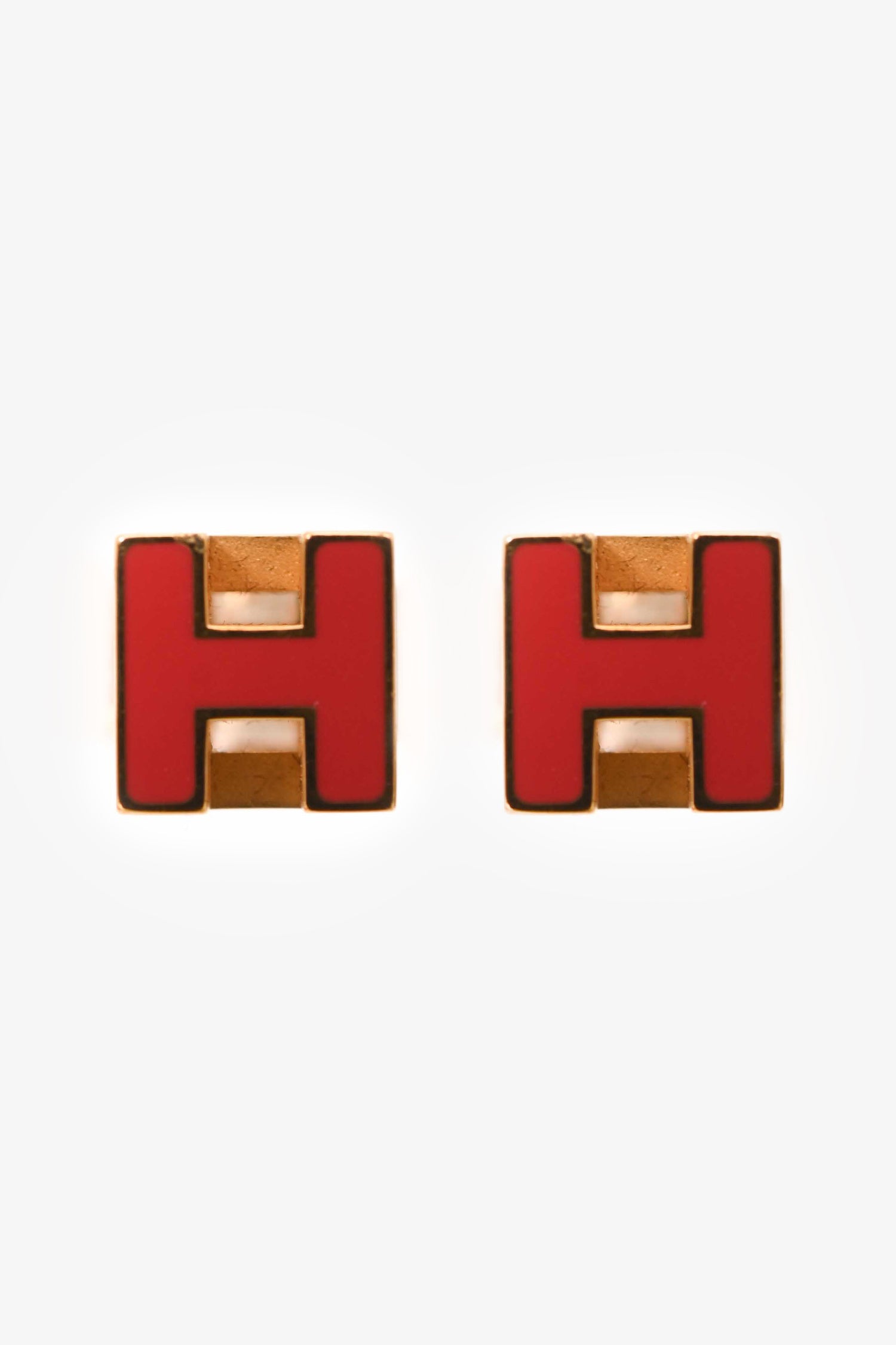 Refresh availabilityHermès Gold-Tone Metal/Red Enamel H Cube Earrings. Post-back fastening. Signature H-shaped studs in red enamel with gold-tone trim. Polished finish.