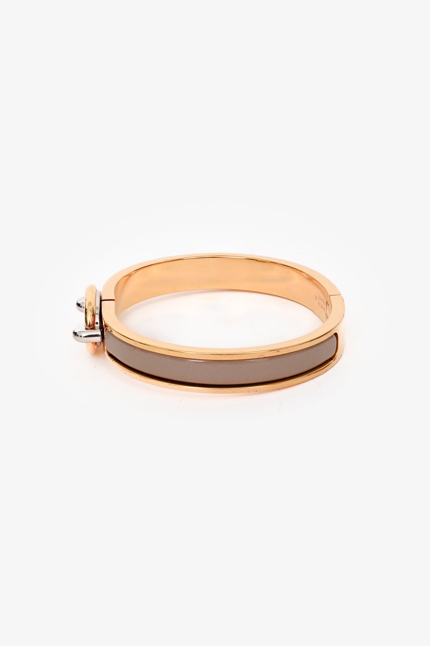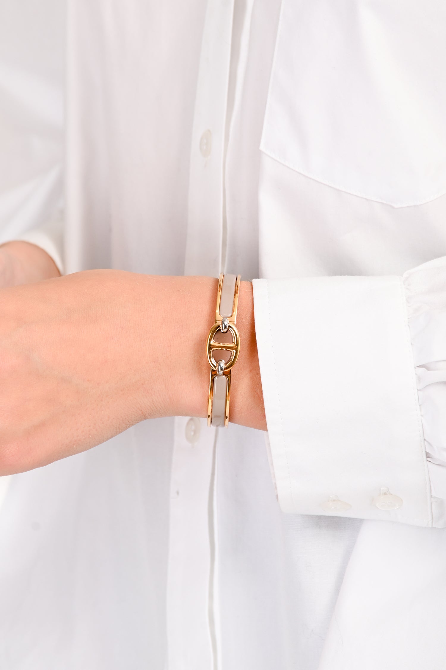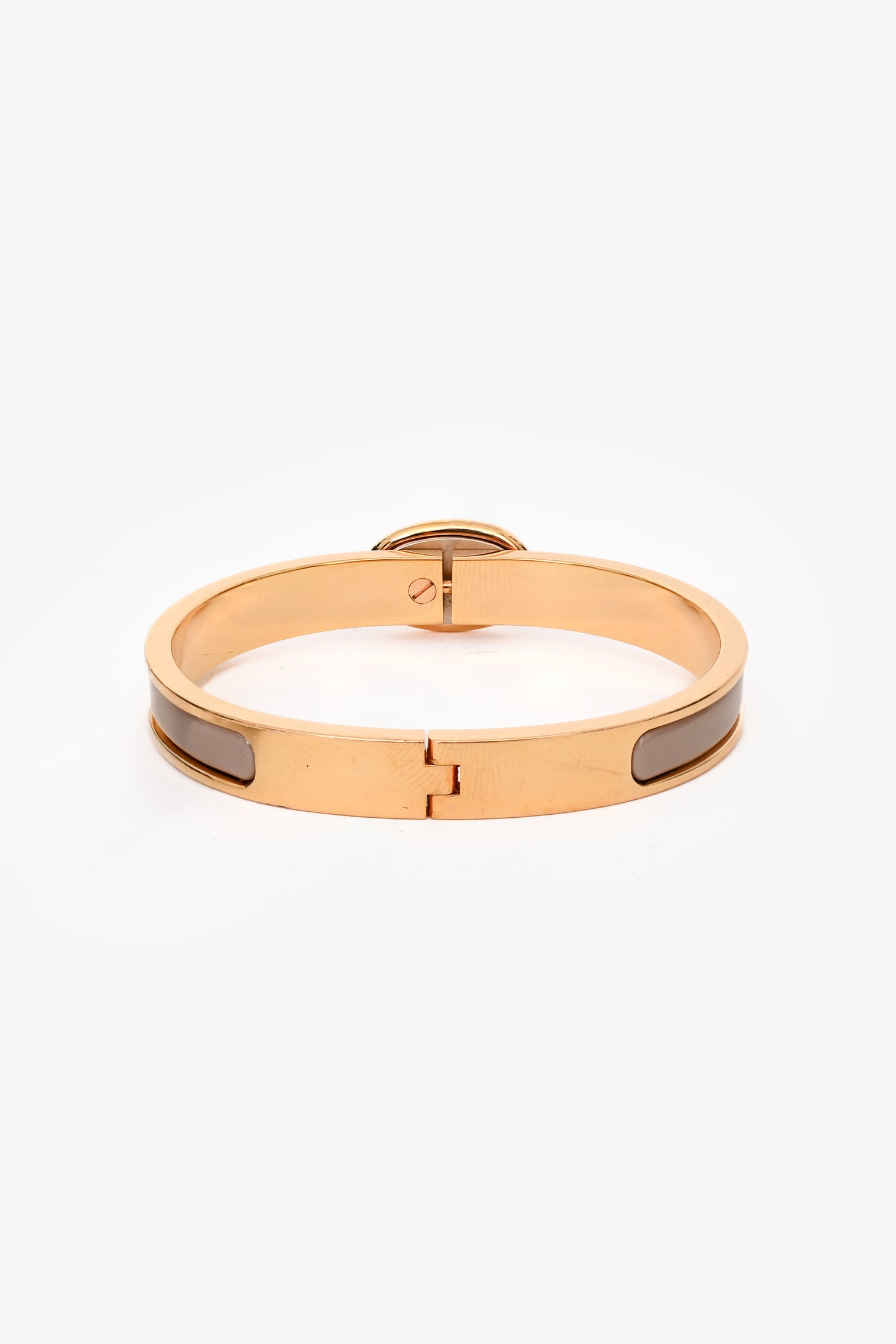 Refresh availabilityHermès Gold Tone Metal/Taupe Enamel Mini Clic Chaine D'Ancre Bangle. Turn-lock closure.