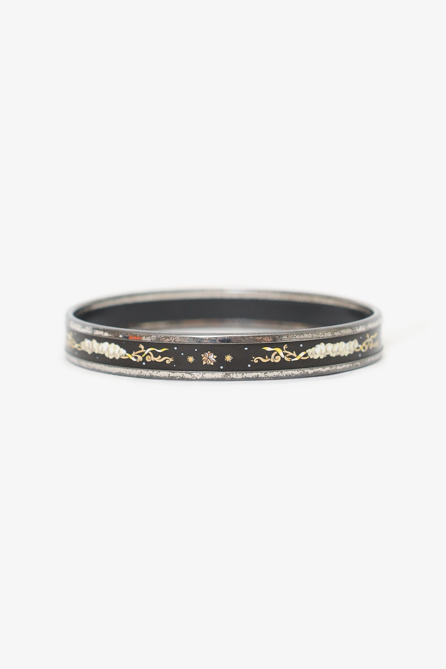 Refresh availabilityHermès Black Enamel Celestial Print Bangle. Slip-on. Silver-tone hardware.
