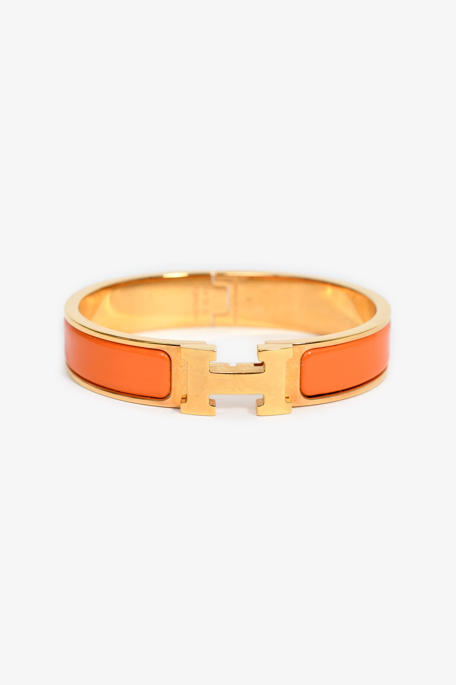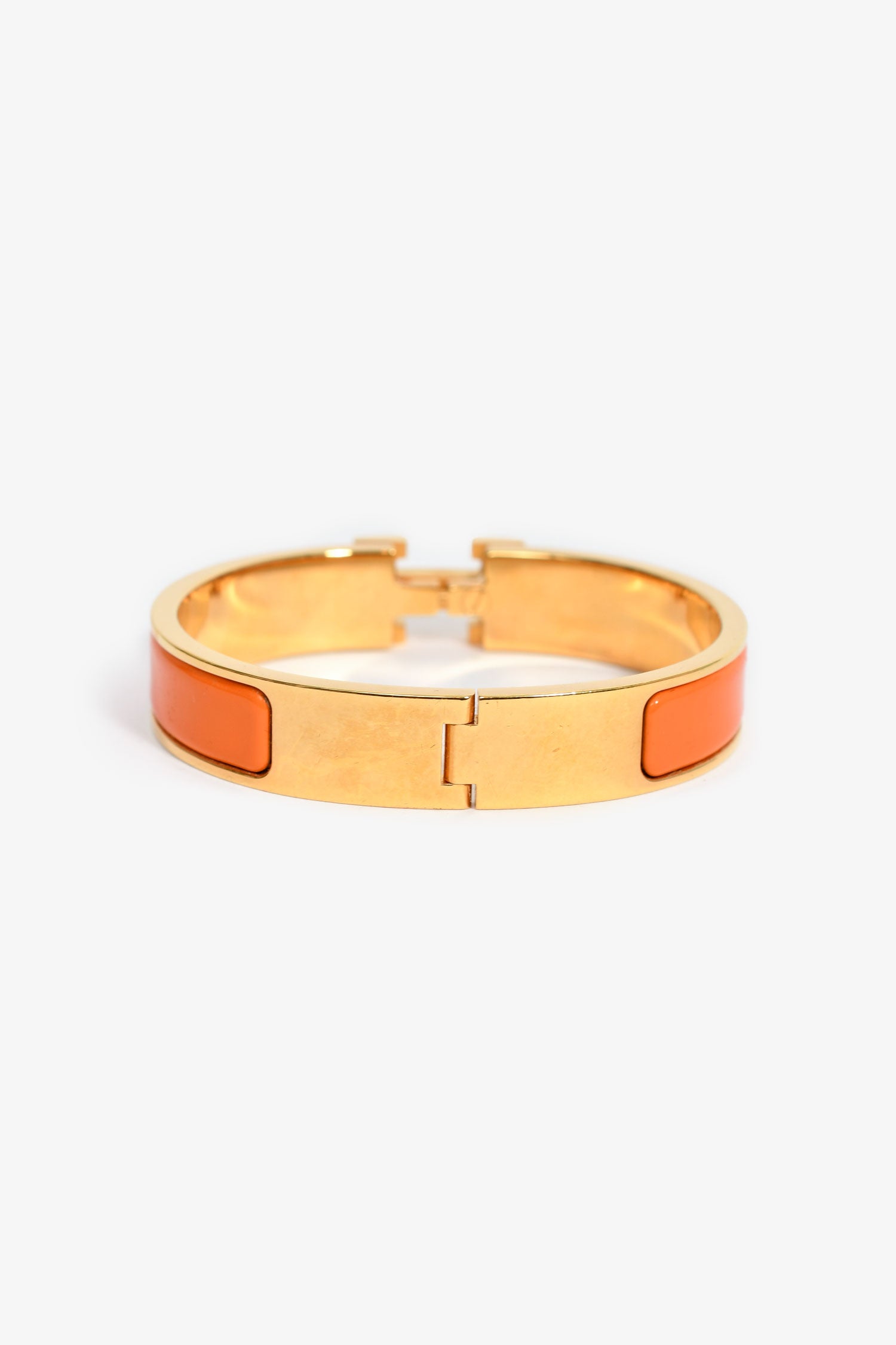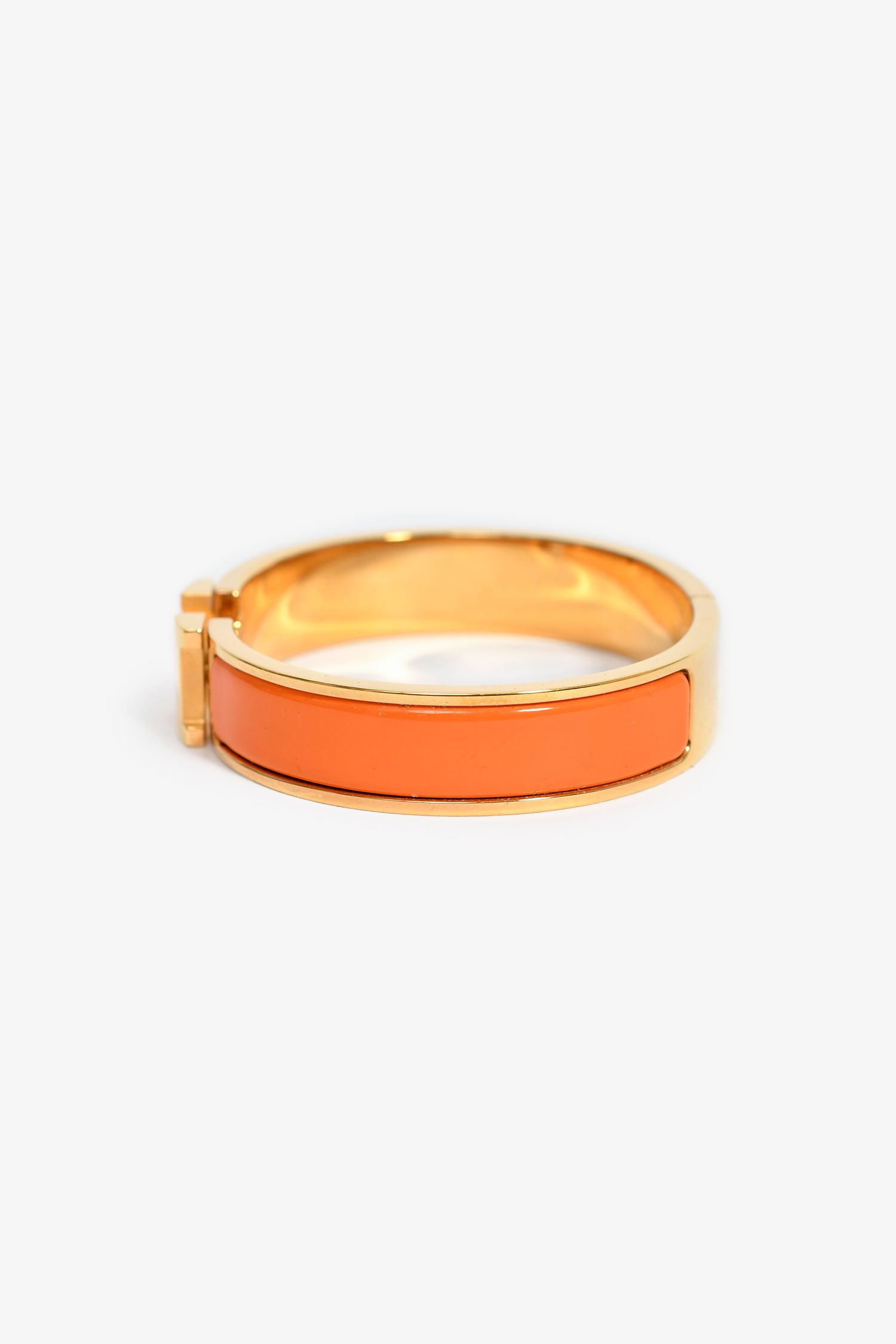 Refresh availabilityHermès Gold Toned/Orange Enamel Clic Bracelet. Slip-on. Flip-lock closure.