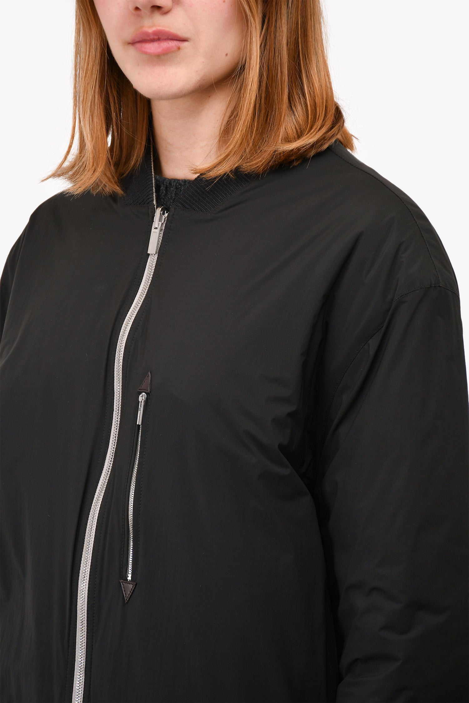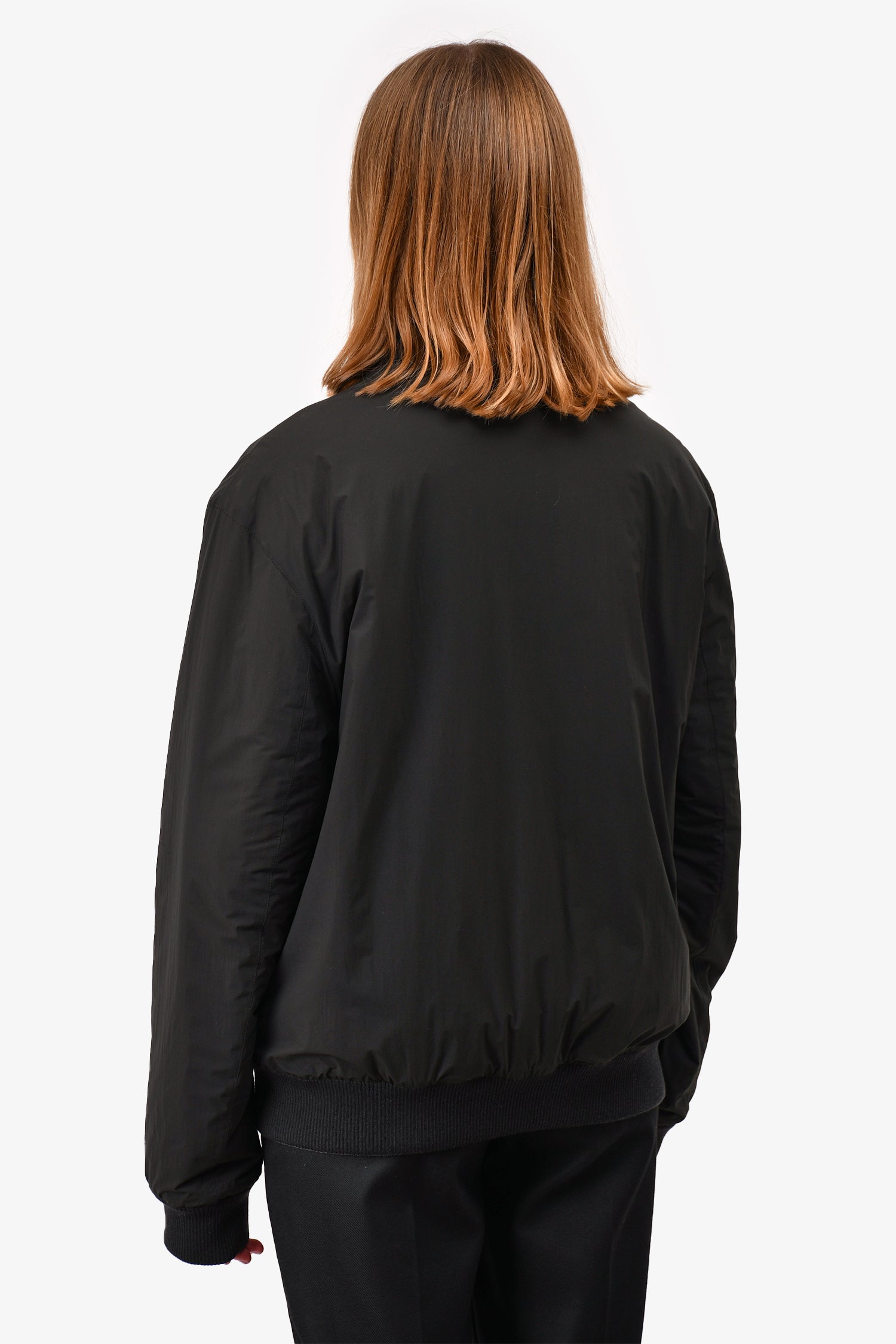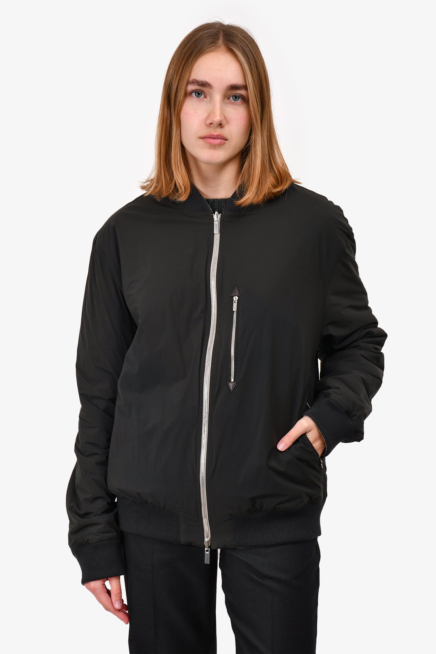 Refresh availabilityHermès Green/Grey Nylon Reversible Bomber Jacket. Ribbed collar, sleeve cuffs, and hemming. Zip-up. Silver-tone hardware. Tonal stitching.