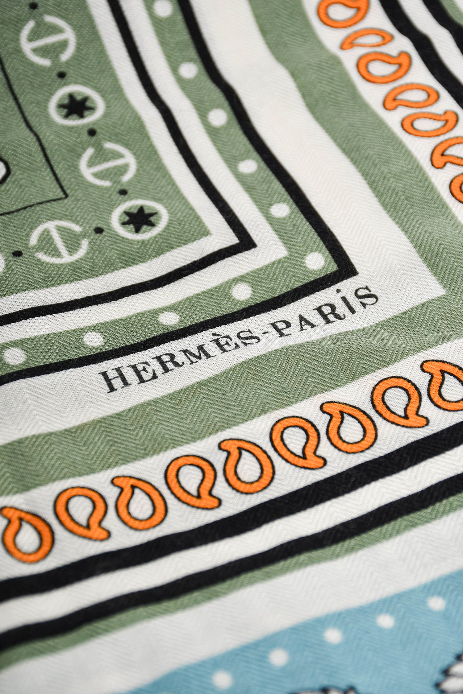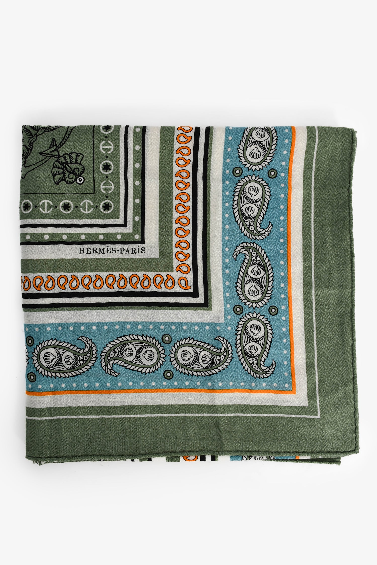 Refresh availabilityHermès Green Printed Cashmere/Silk 'Pirates' Scarf 140.