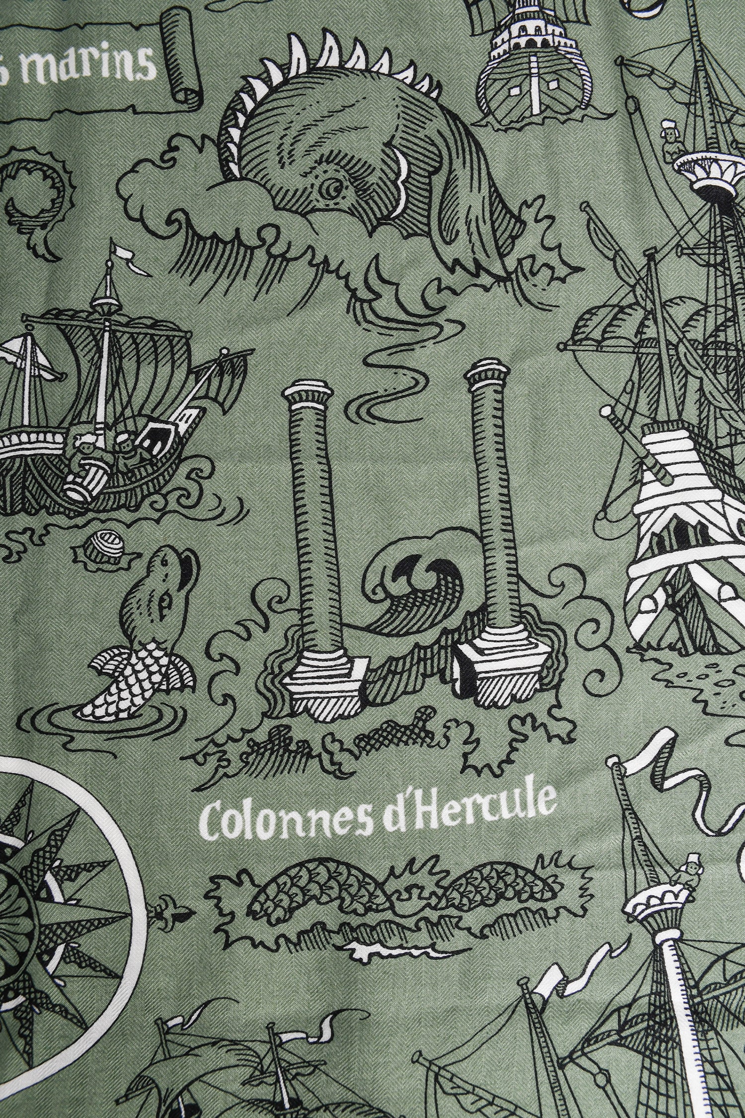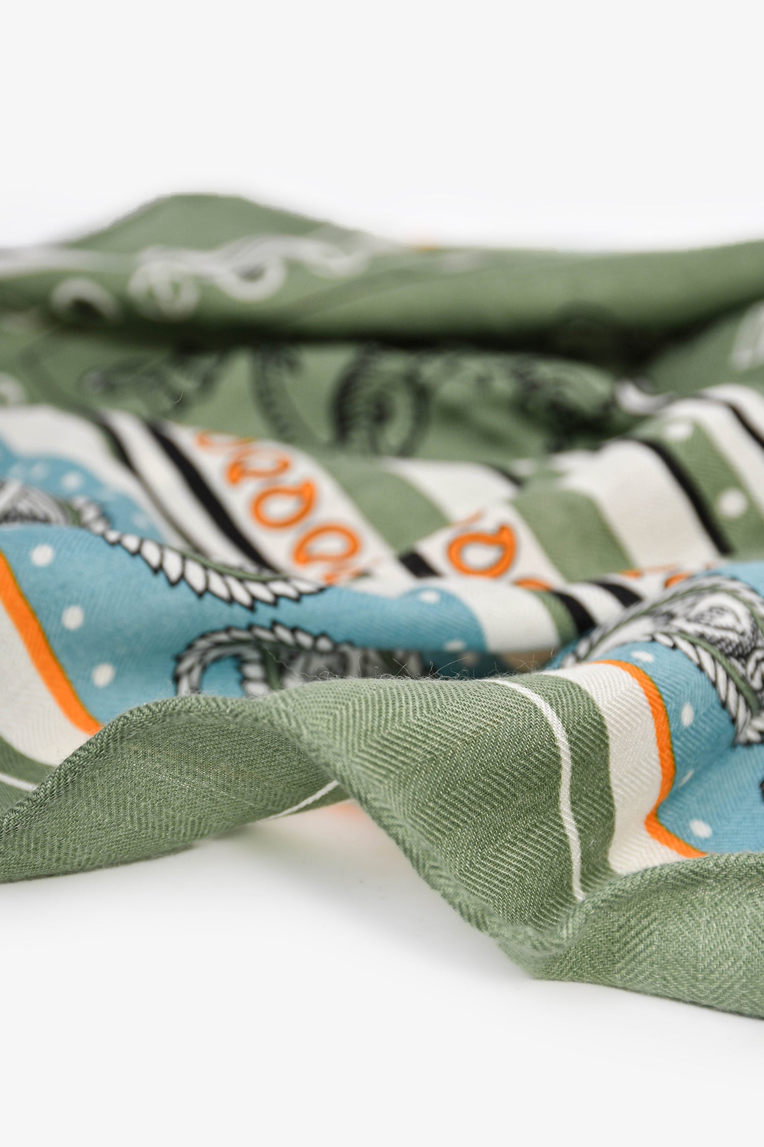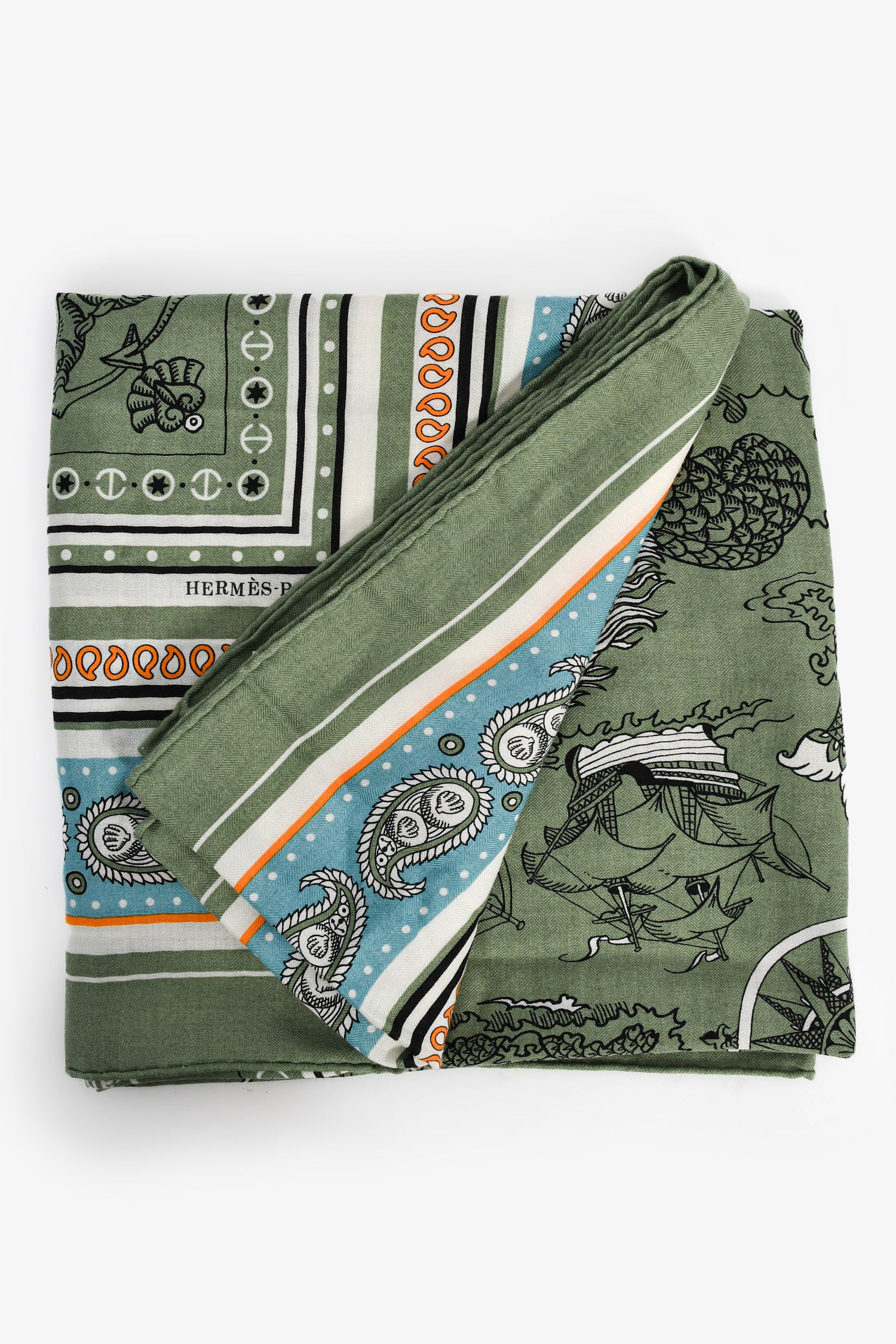 Hermès Green Printed Cashmere/Silk 'Pirates' Scarf 140