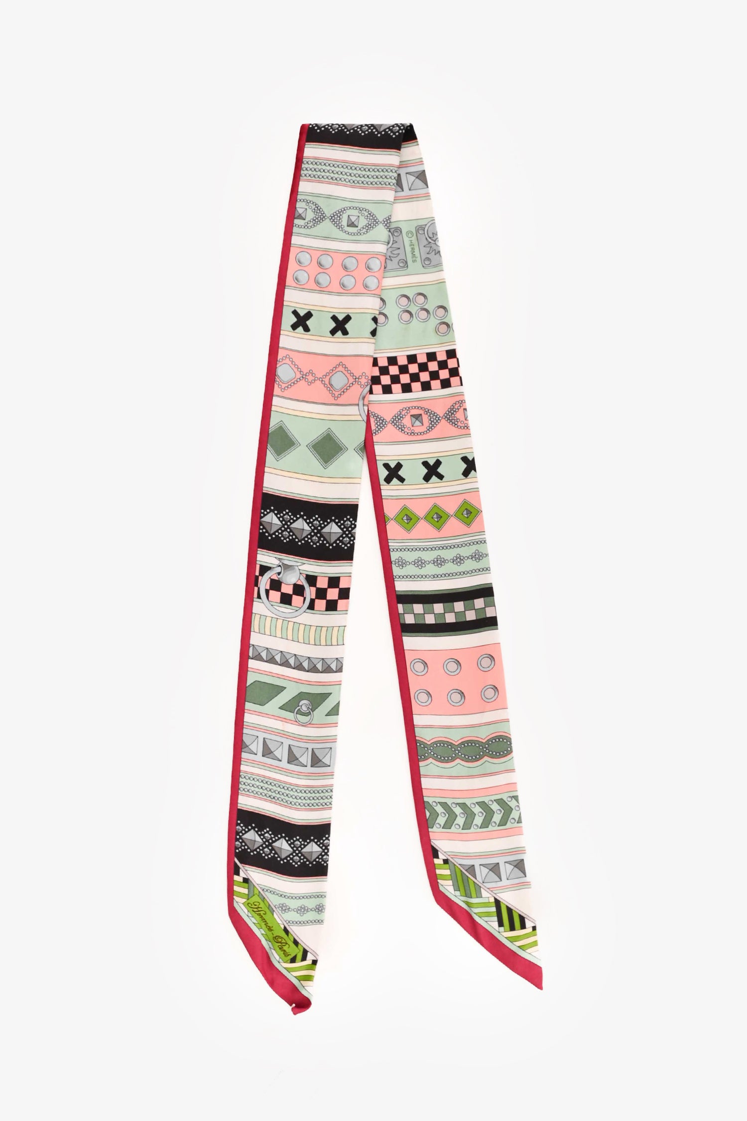 Hermès Green/Red Silk Twilly