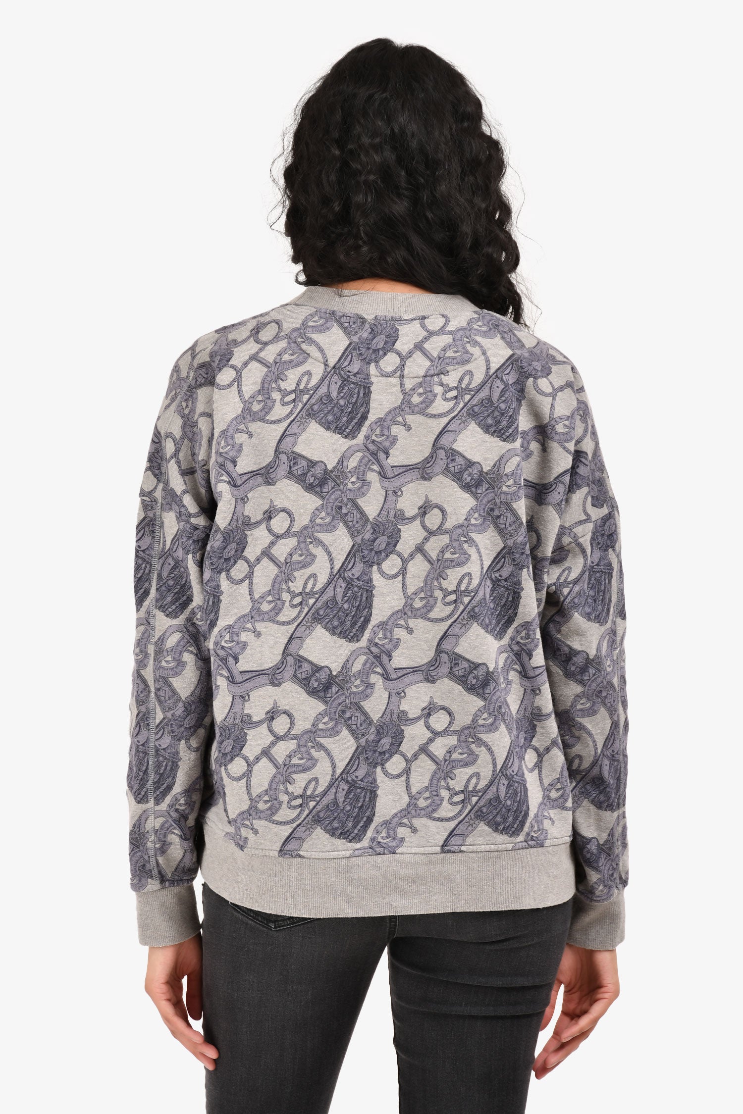 Hermès Grey Blue 'Bride De Cour' Printed Crewneck Sweatshirt Size 38