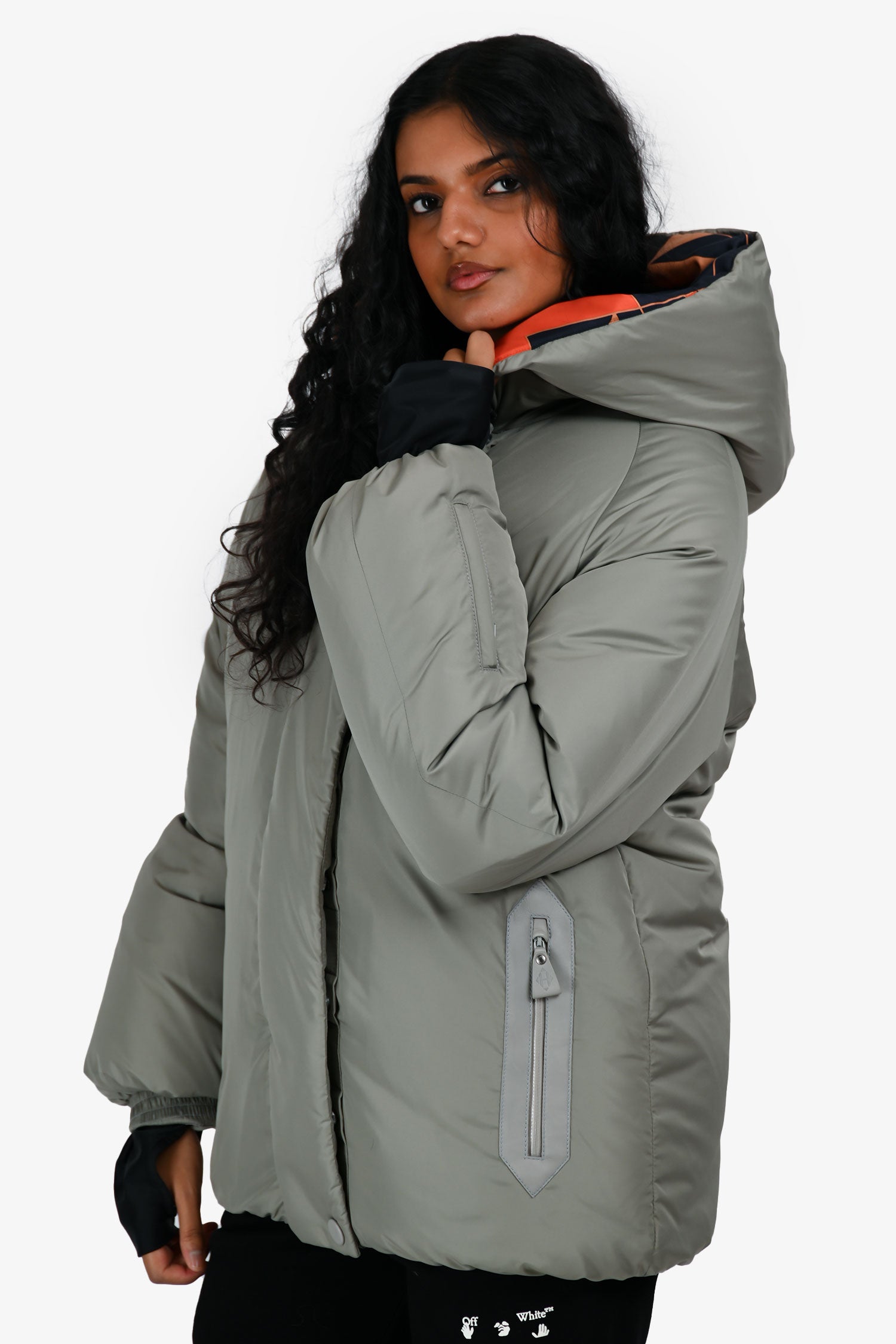 Hermès Grey Bomber Style Hooded Down Jacket Size 38 FR