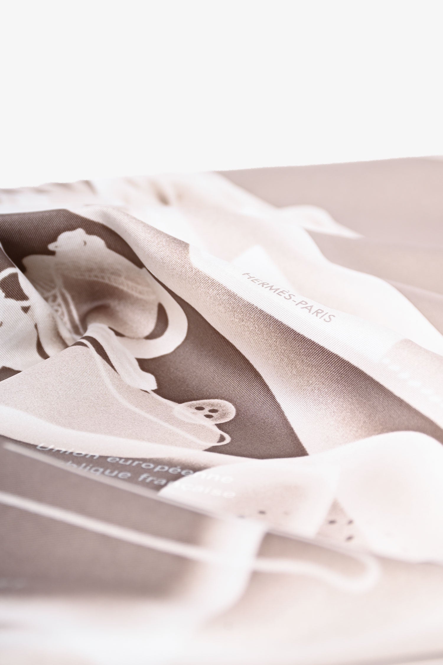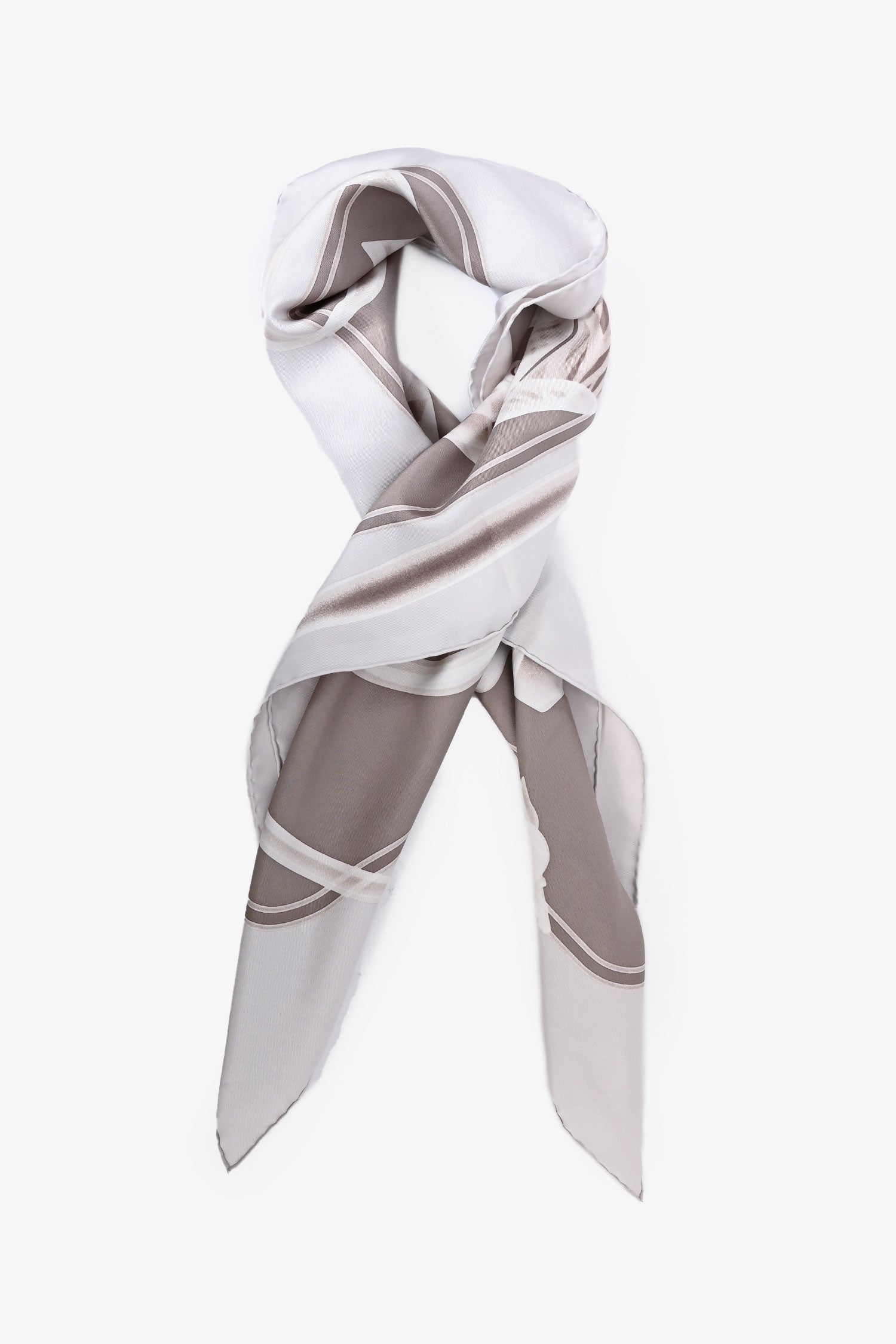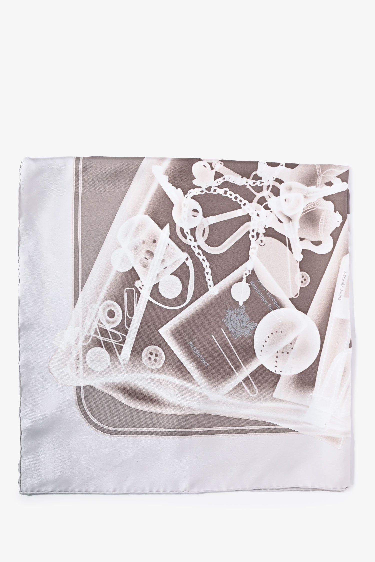 Hermès Grey Silk Graphic 'Check In' Scarf 90
