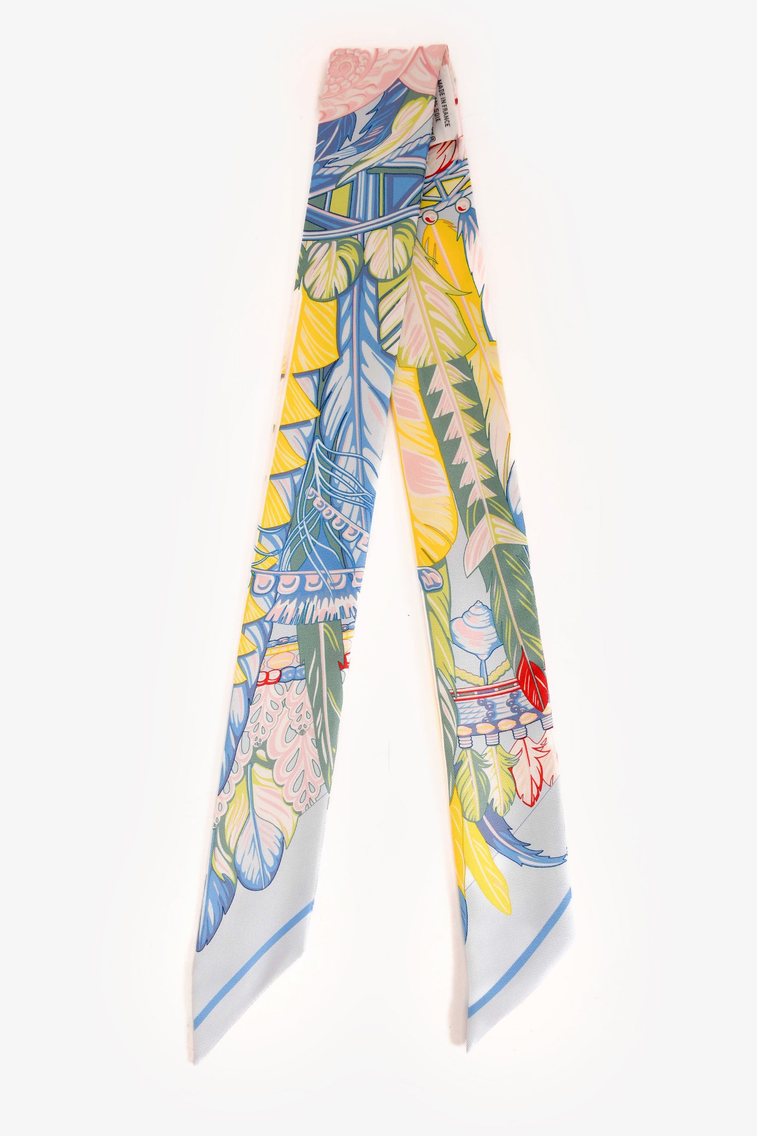 Hermès Light Blue Multicolour Silk Leaf Print Twilly