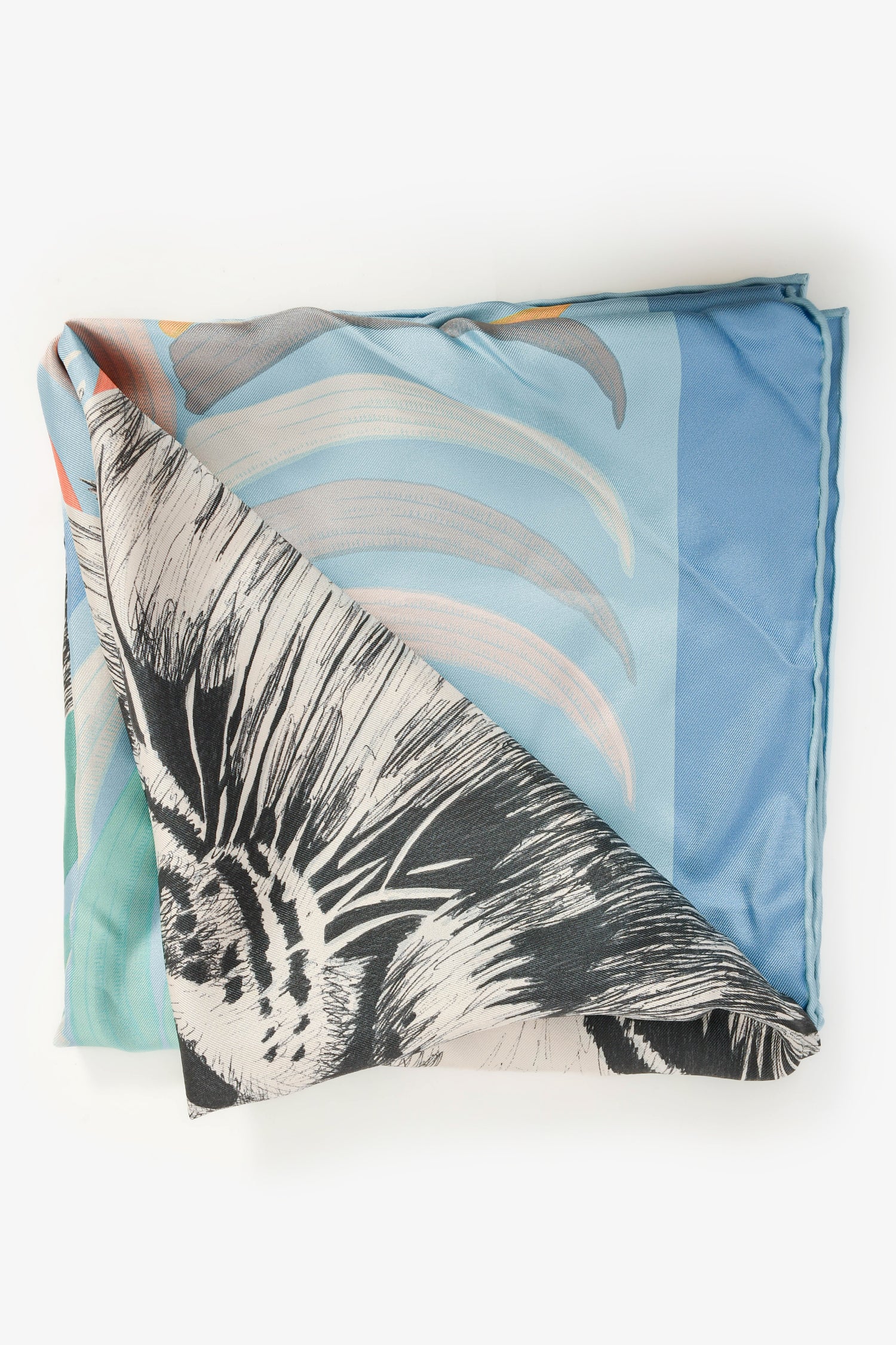 Refresh availabilityHermès Light Blue Silk Tiger Royal Scarf 90. Tonal stitching.