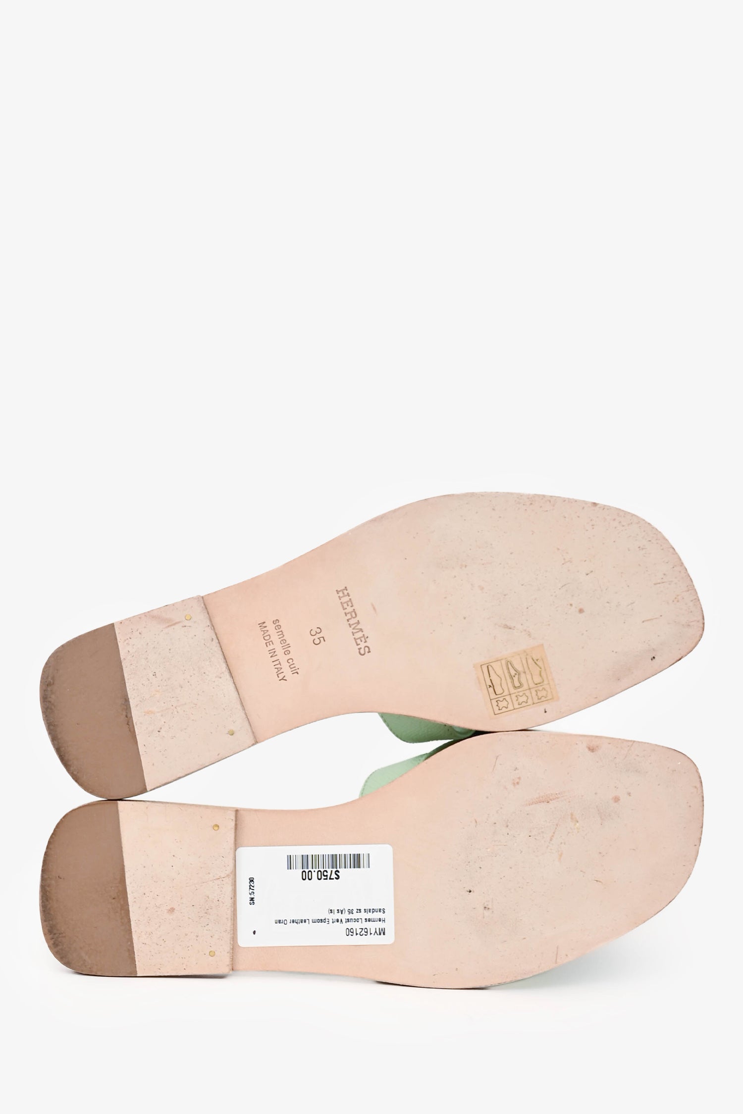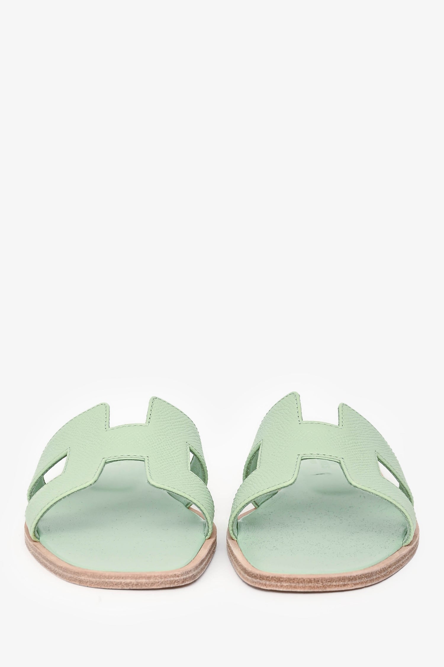 Hermès Locust Vert Epsom Leather Oran Sandals Size 35