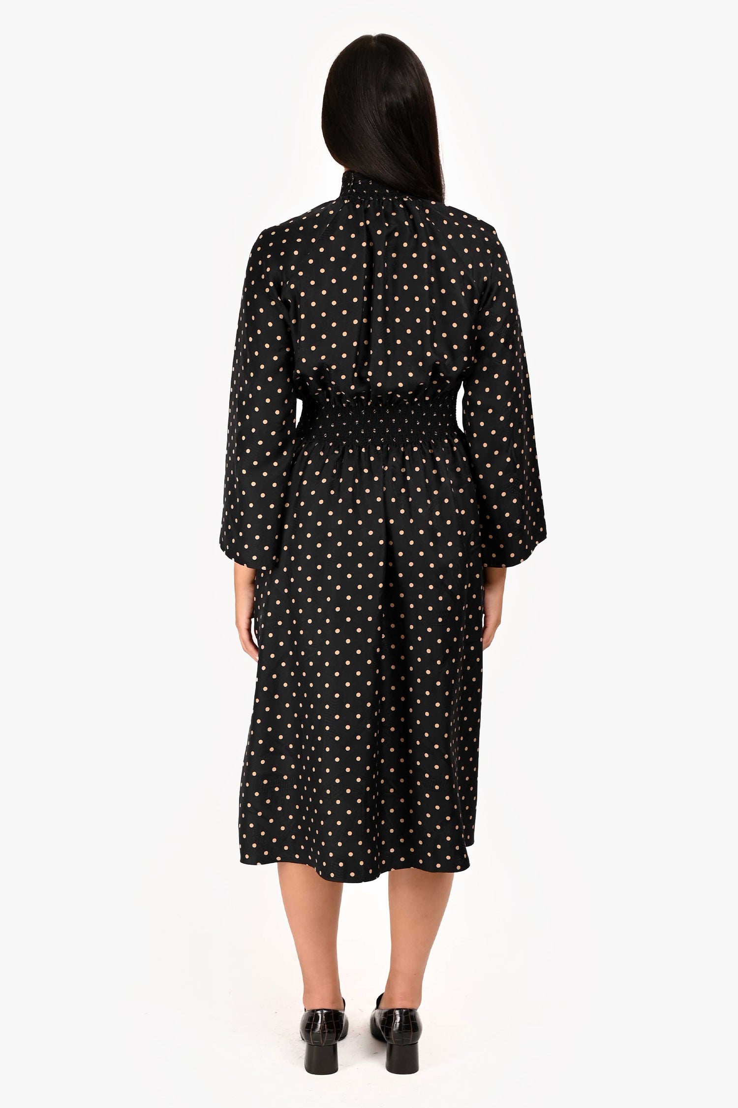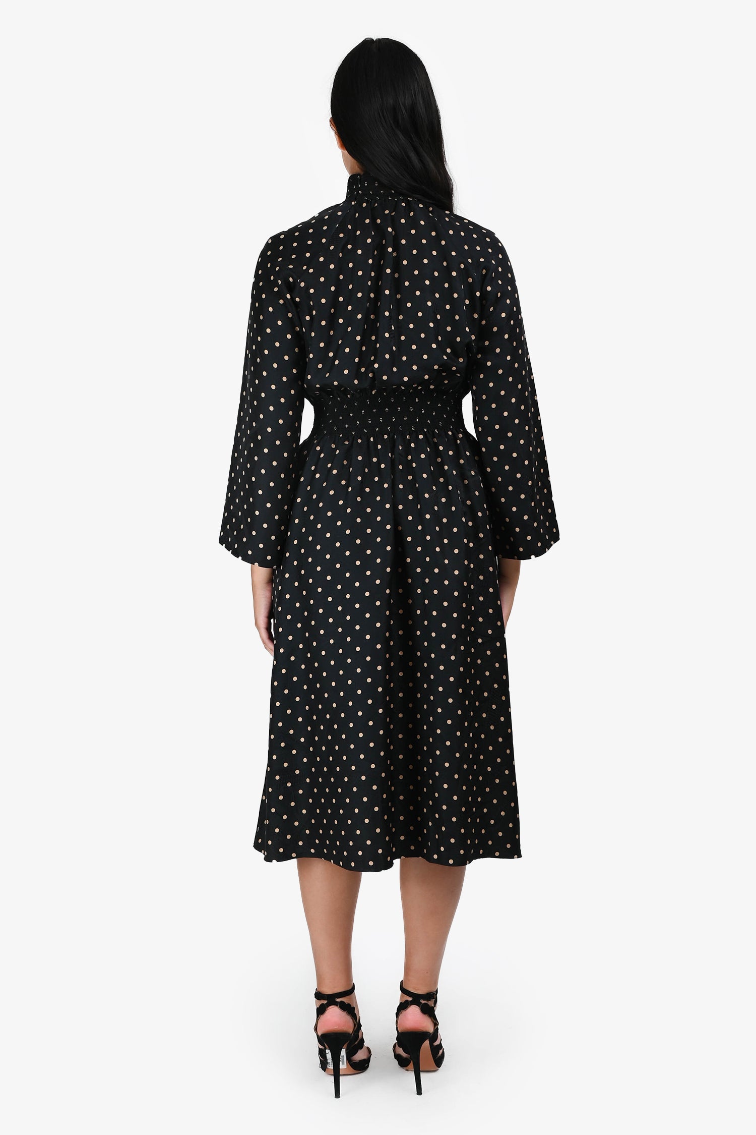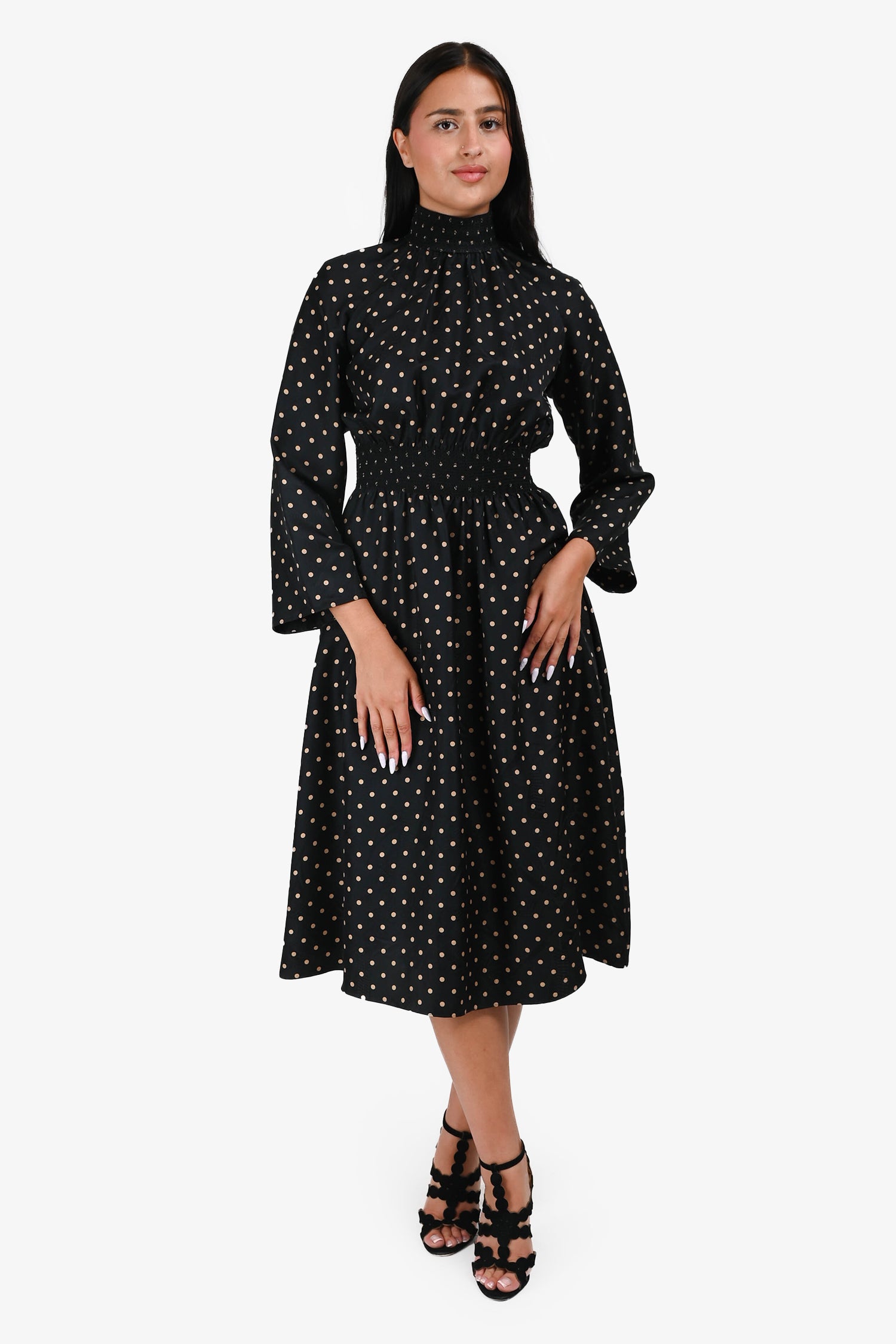 Hermès Navy/Nude Silk Polka Dot High-Neck Midi Dress Size 34