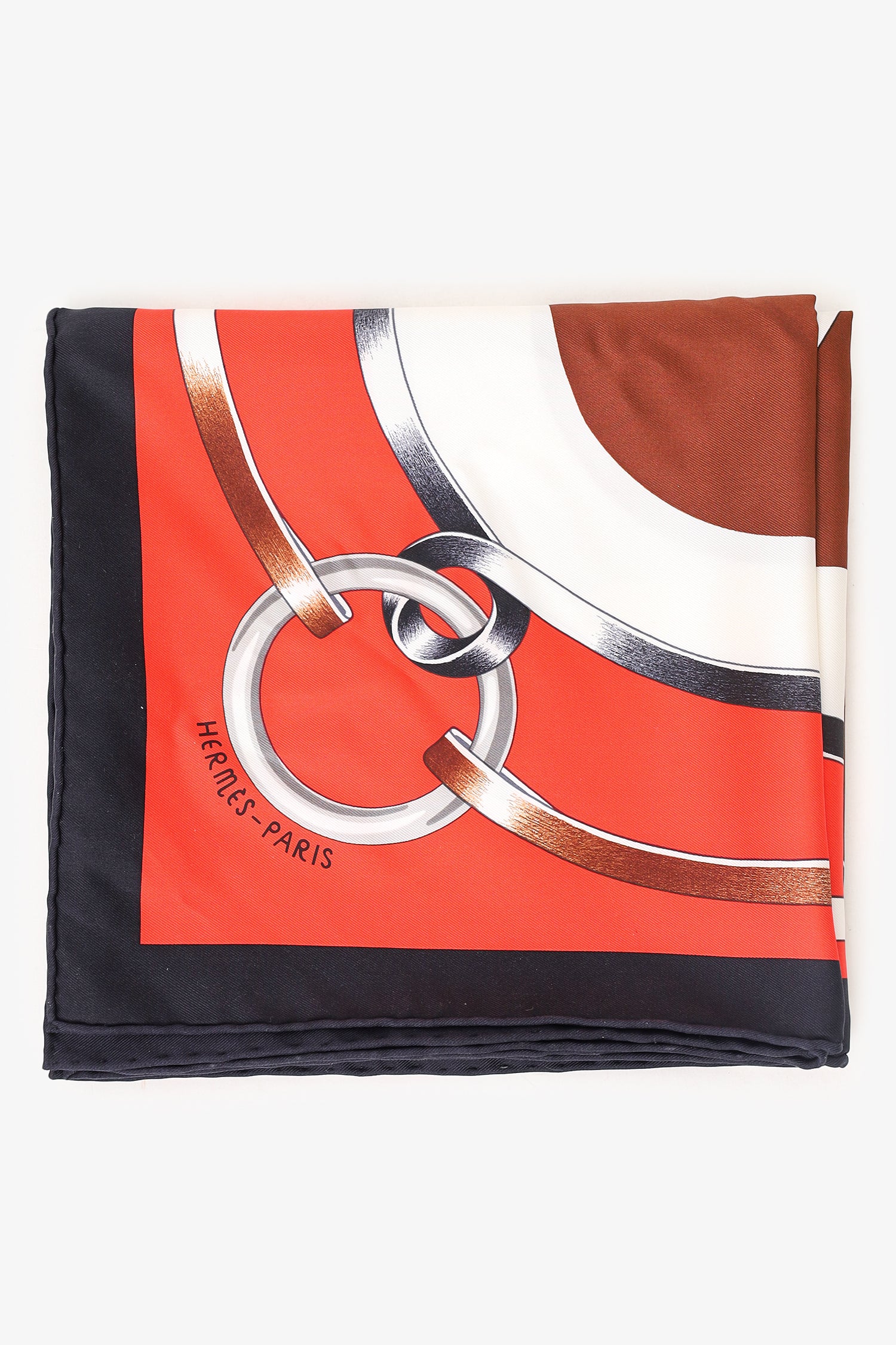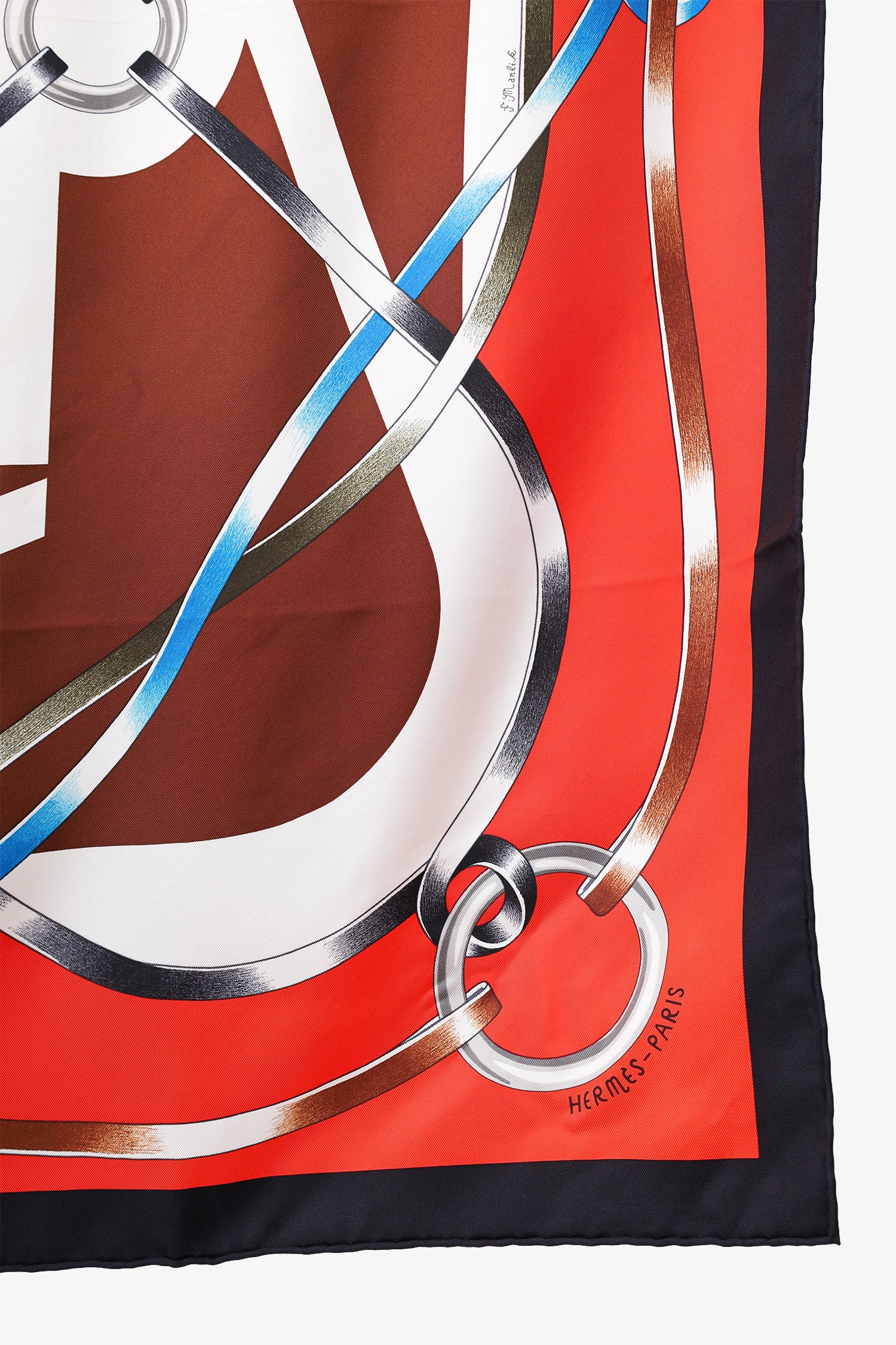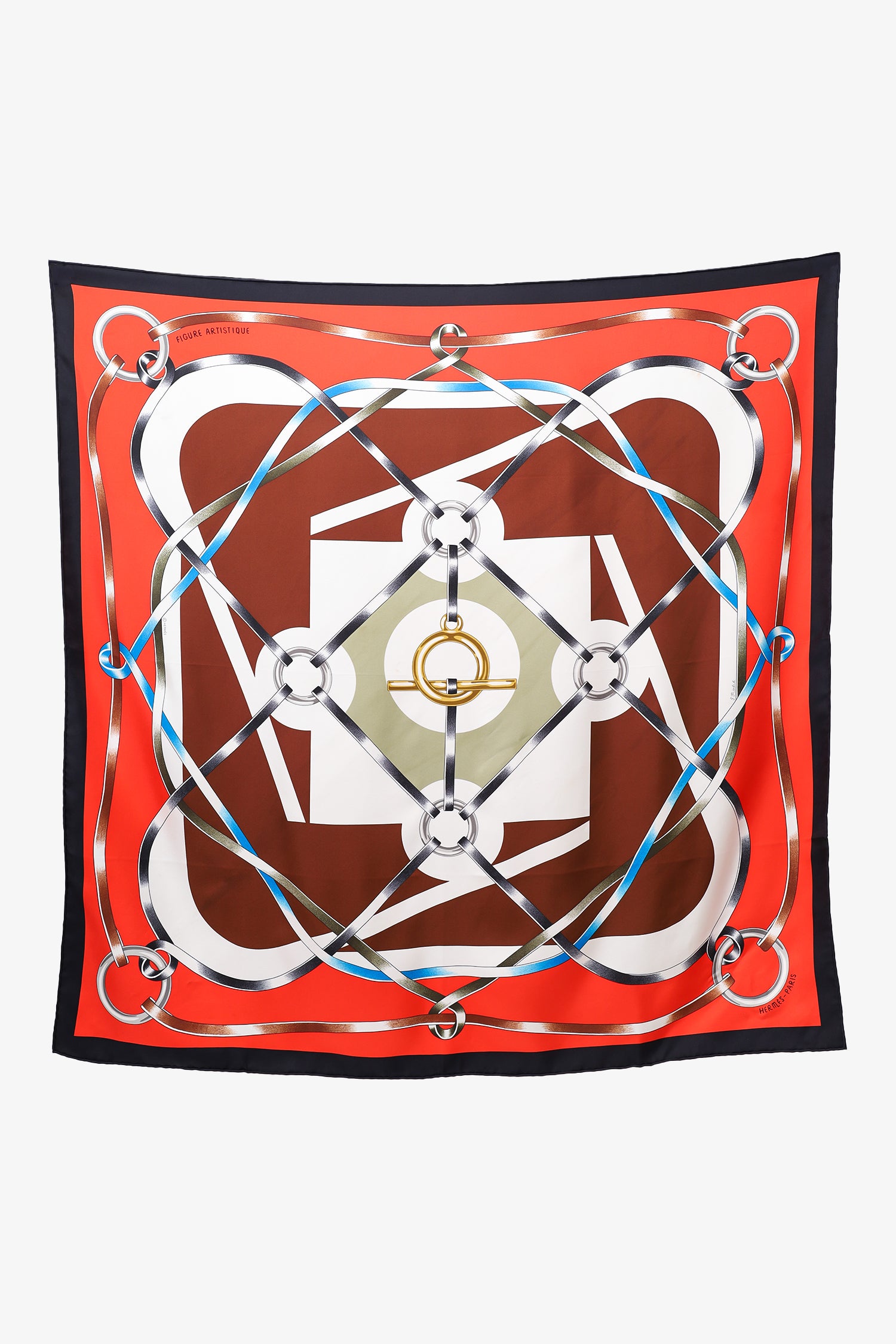 Hermès Noir/Rouge /Brun Silk 'Figure Artistique' Scarf 90CM