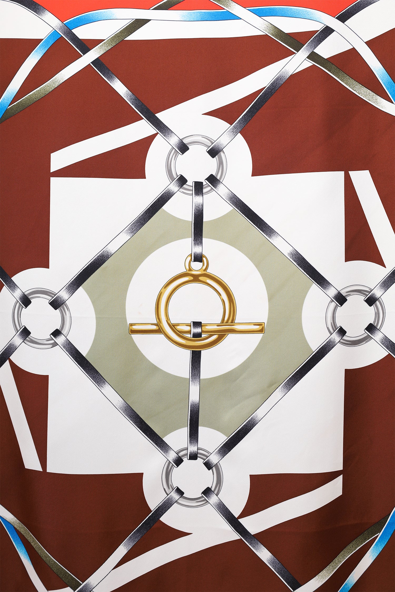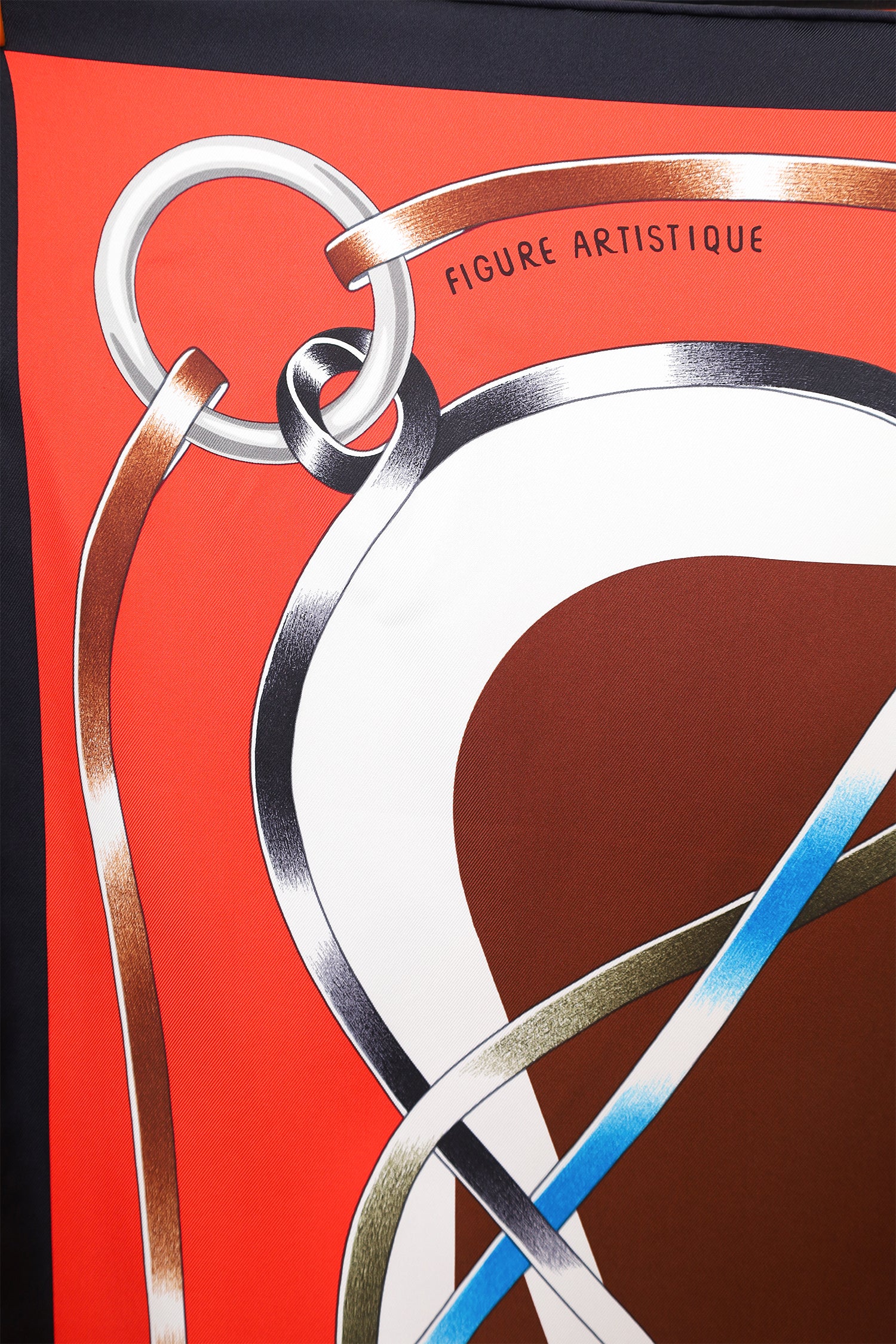 Refresh availabilityHermès Noir/Rouge /Brun Silk 'Figure Artistique' Scarf. Tonal stitching.