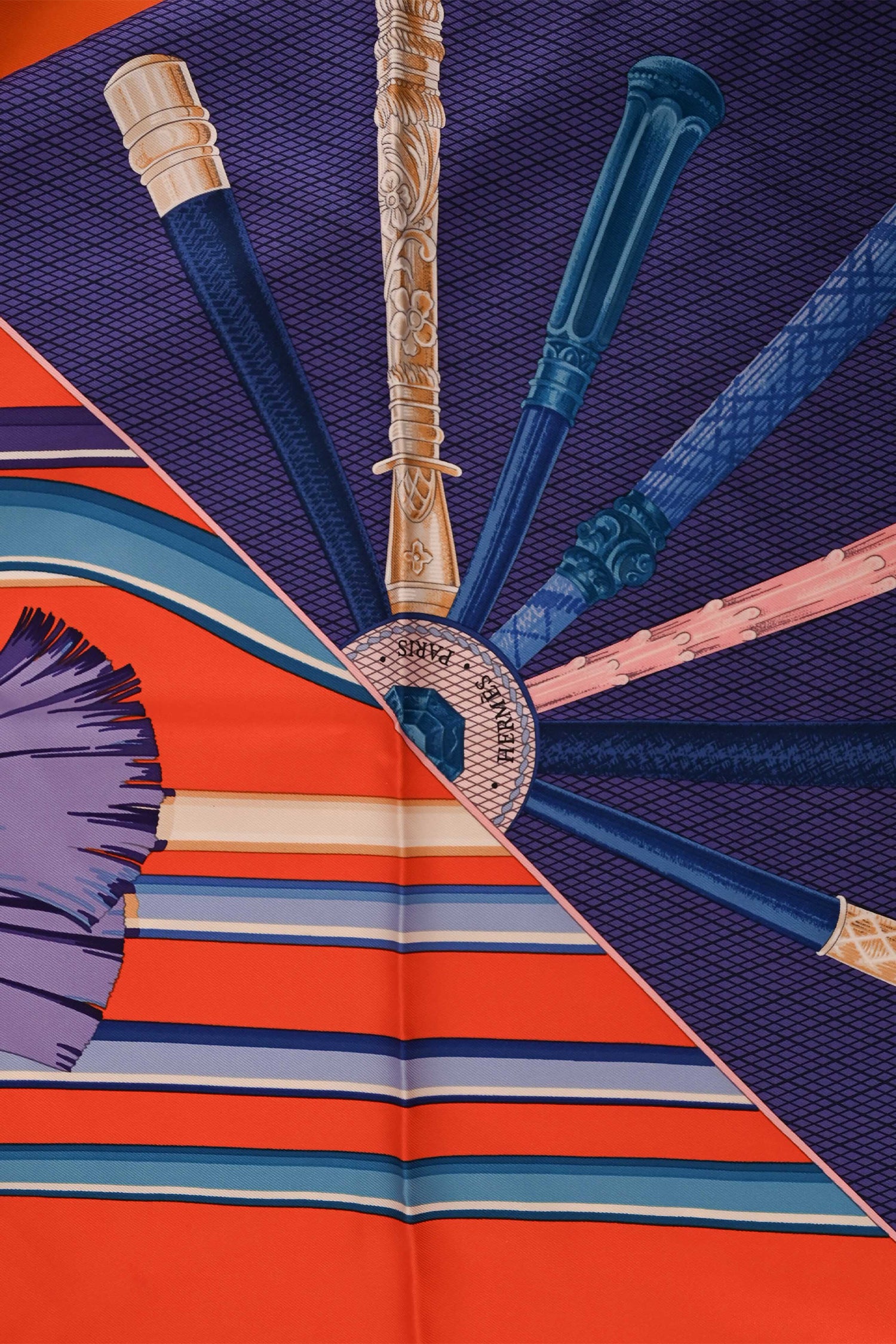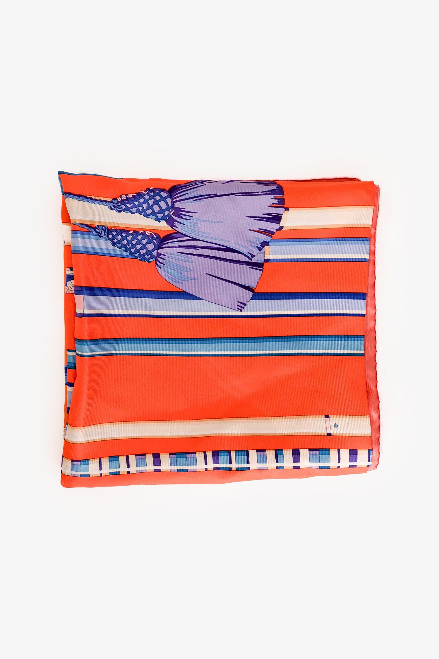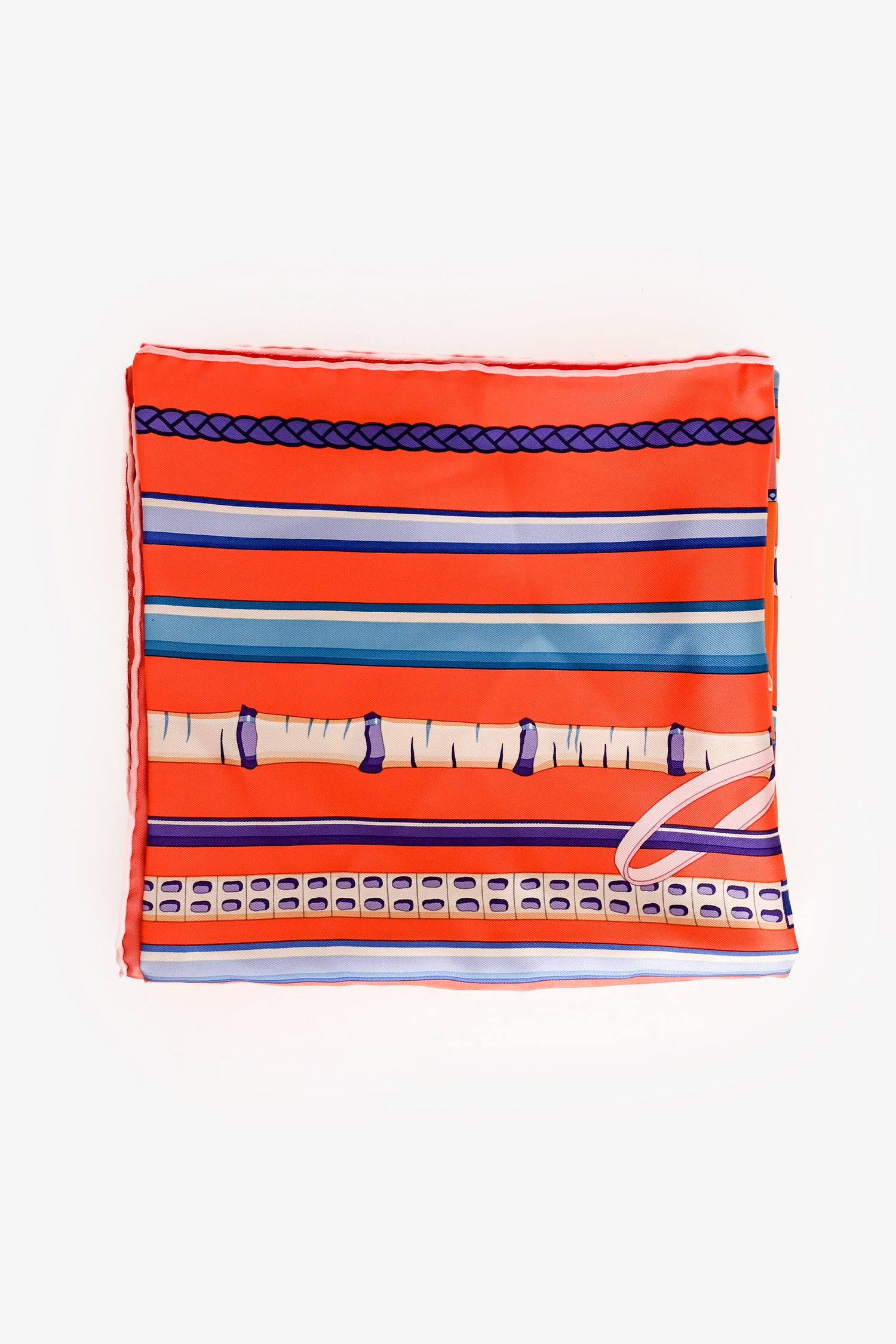 Refresh availabilityHermès Orange/Blue Silk Cane Motif Scarf. Tonal stitching.