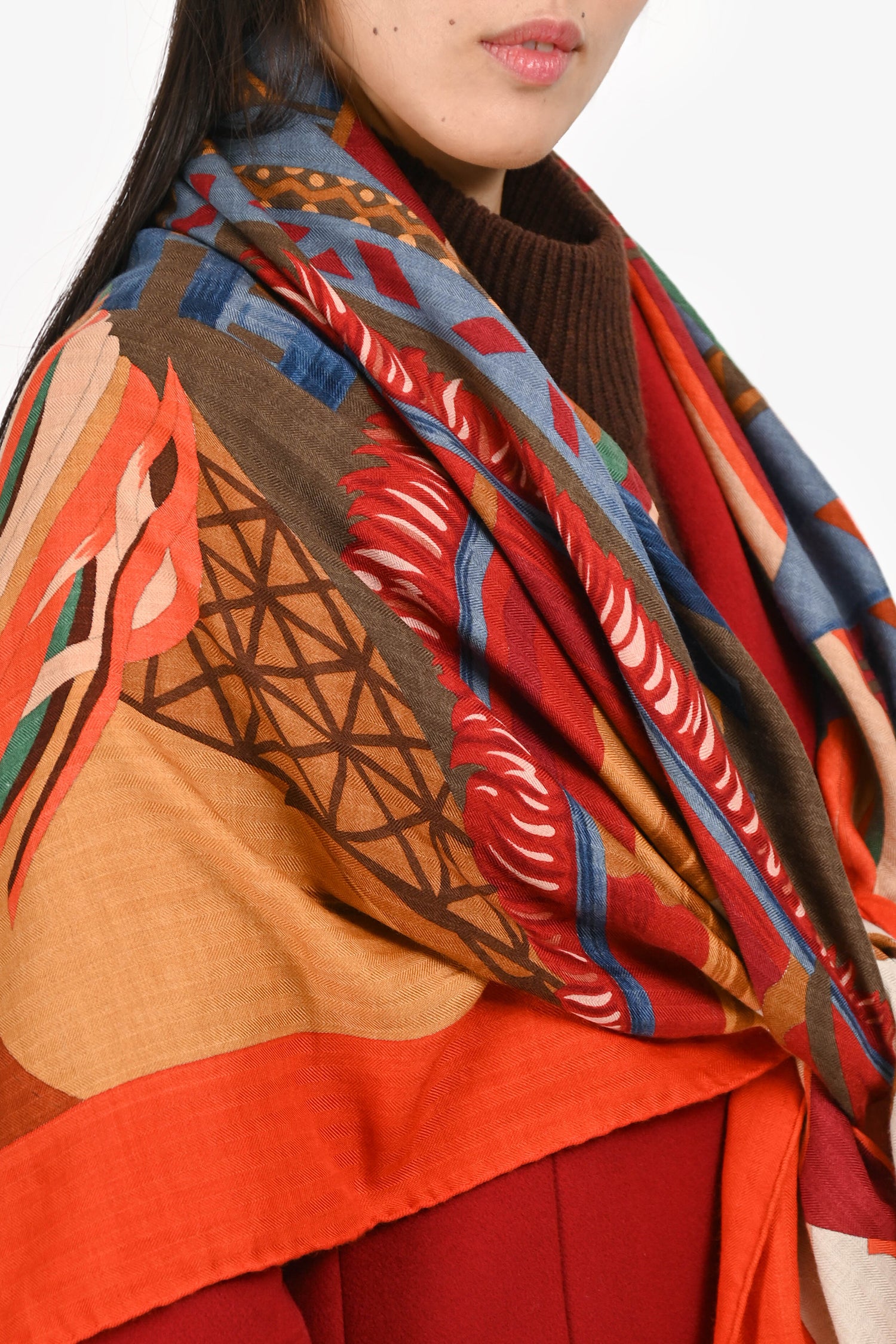 Hermès Orange Cashmere/Silk Graphic Print Carré 140