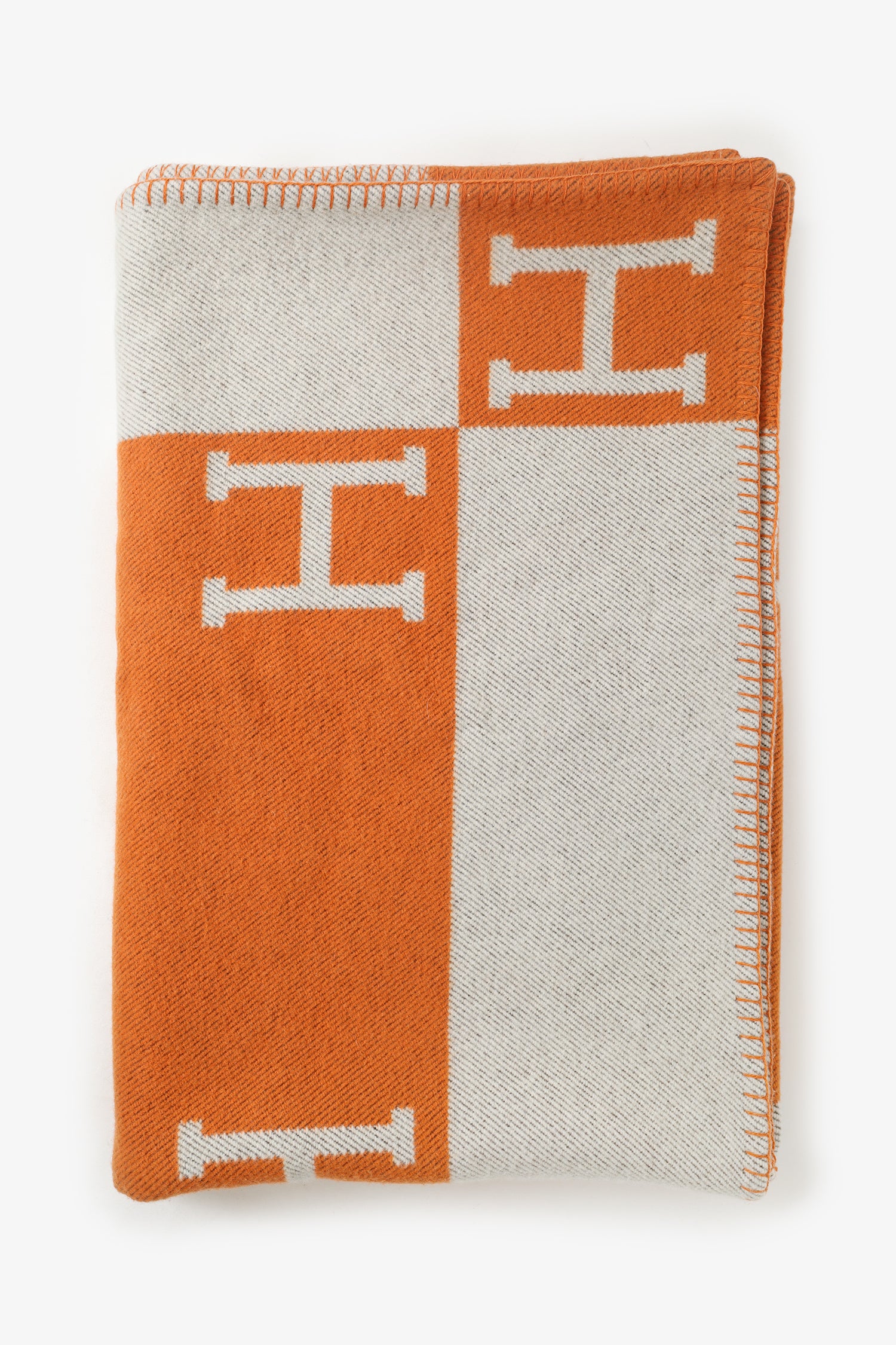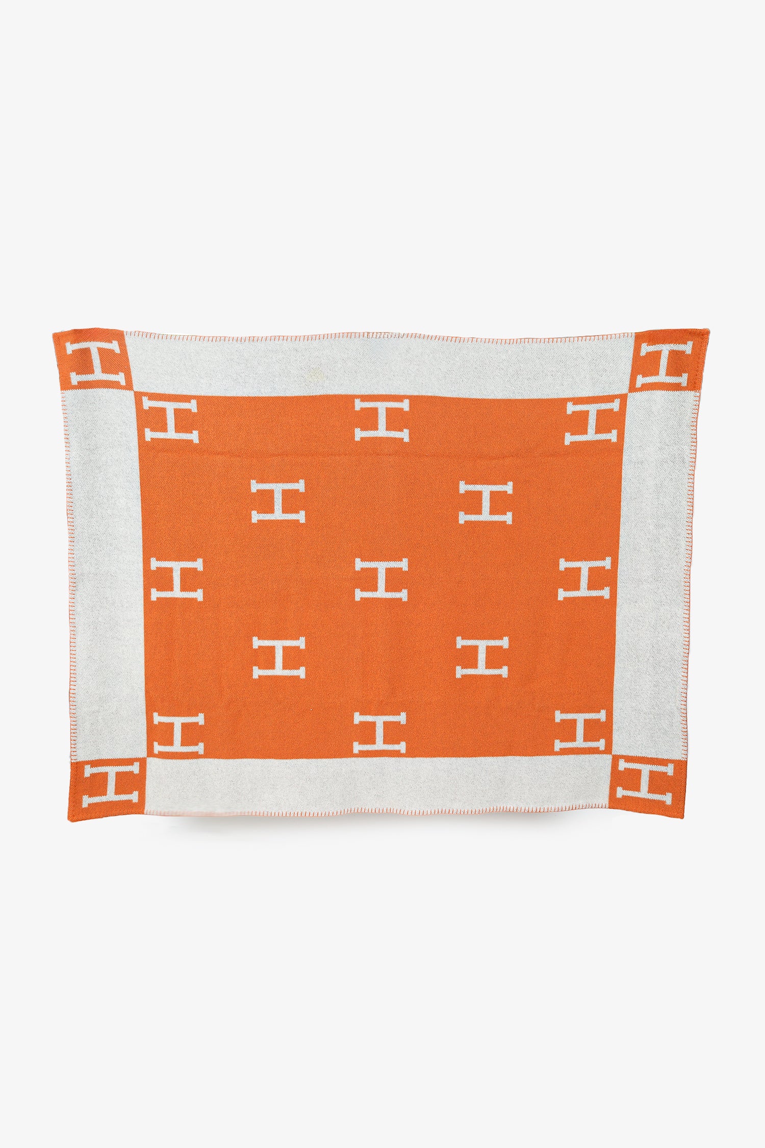 Hermès Orange/Grey Merino Wool/Cashmere Avalon Blanket