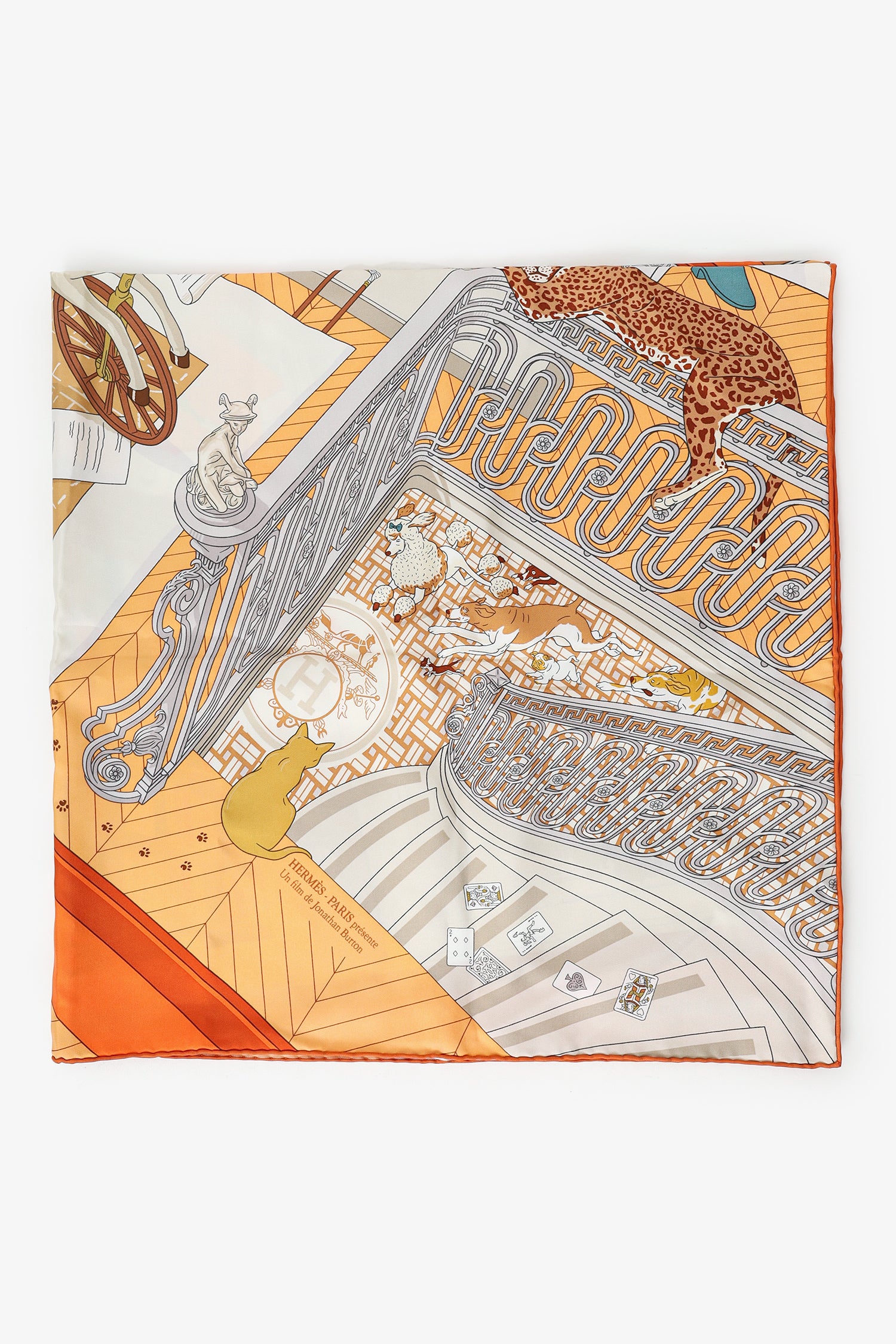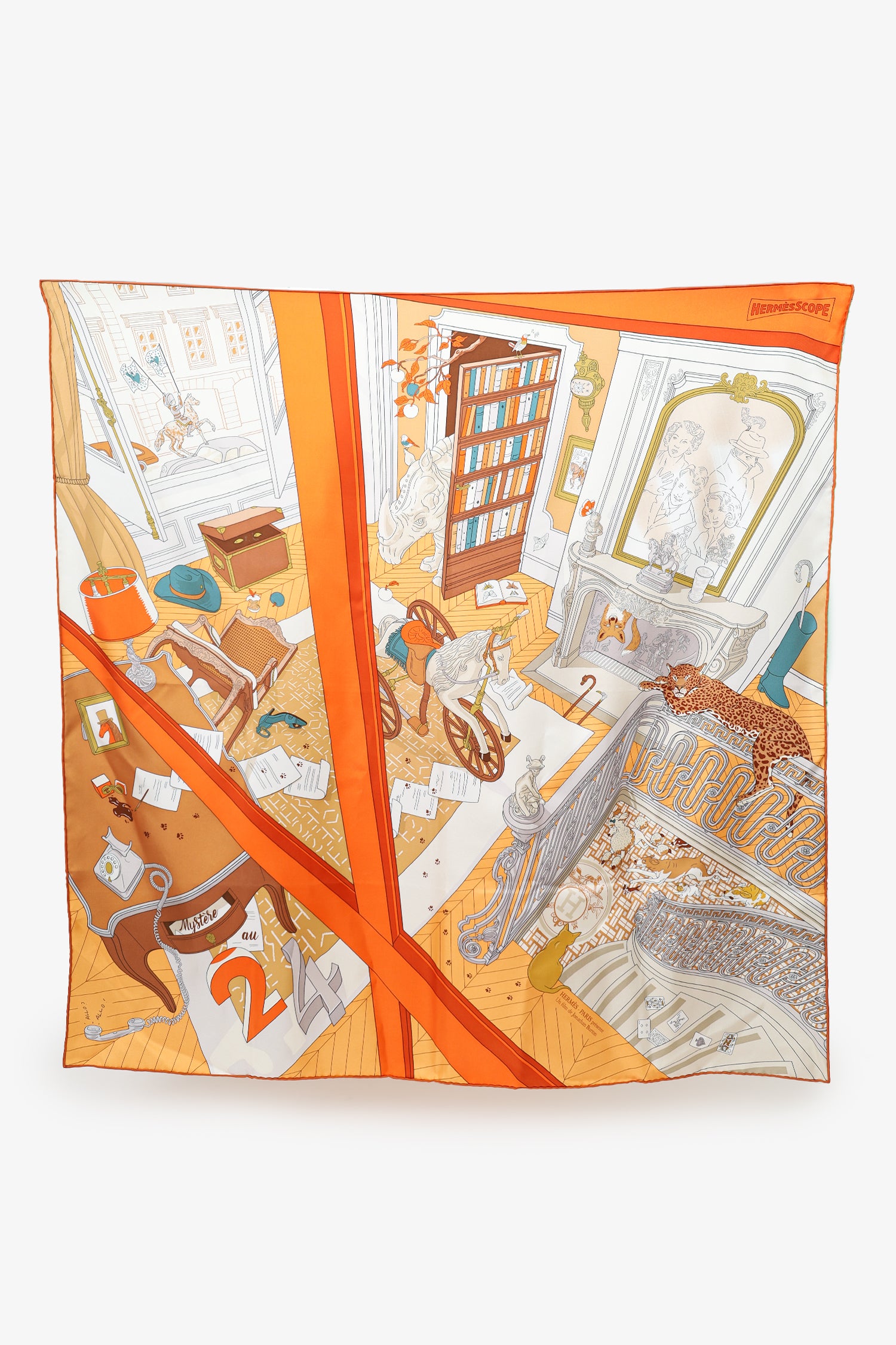 Hermès Orange/Multicolor Silk Mystere Au 24 Scarf 90CM