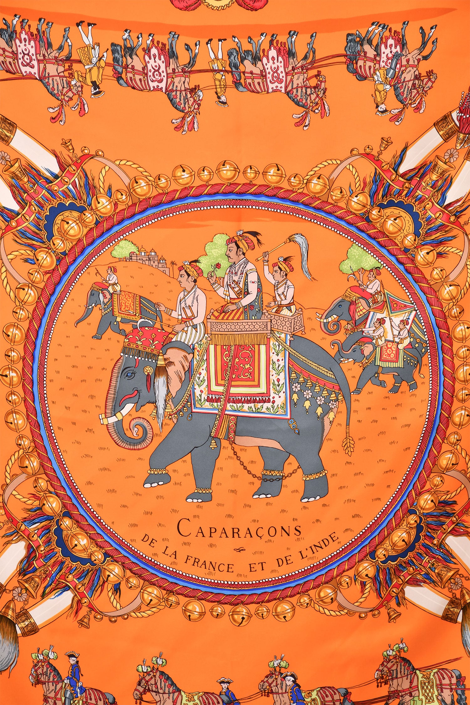 Hermès Orange Printed Silk 'Caparaçons De la France et de L'inde' 90cm Square Scarf