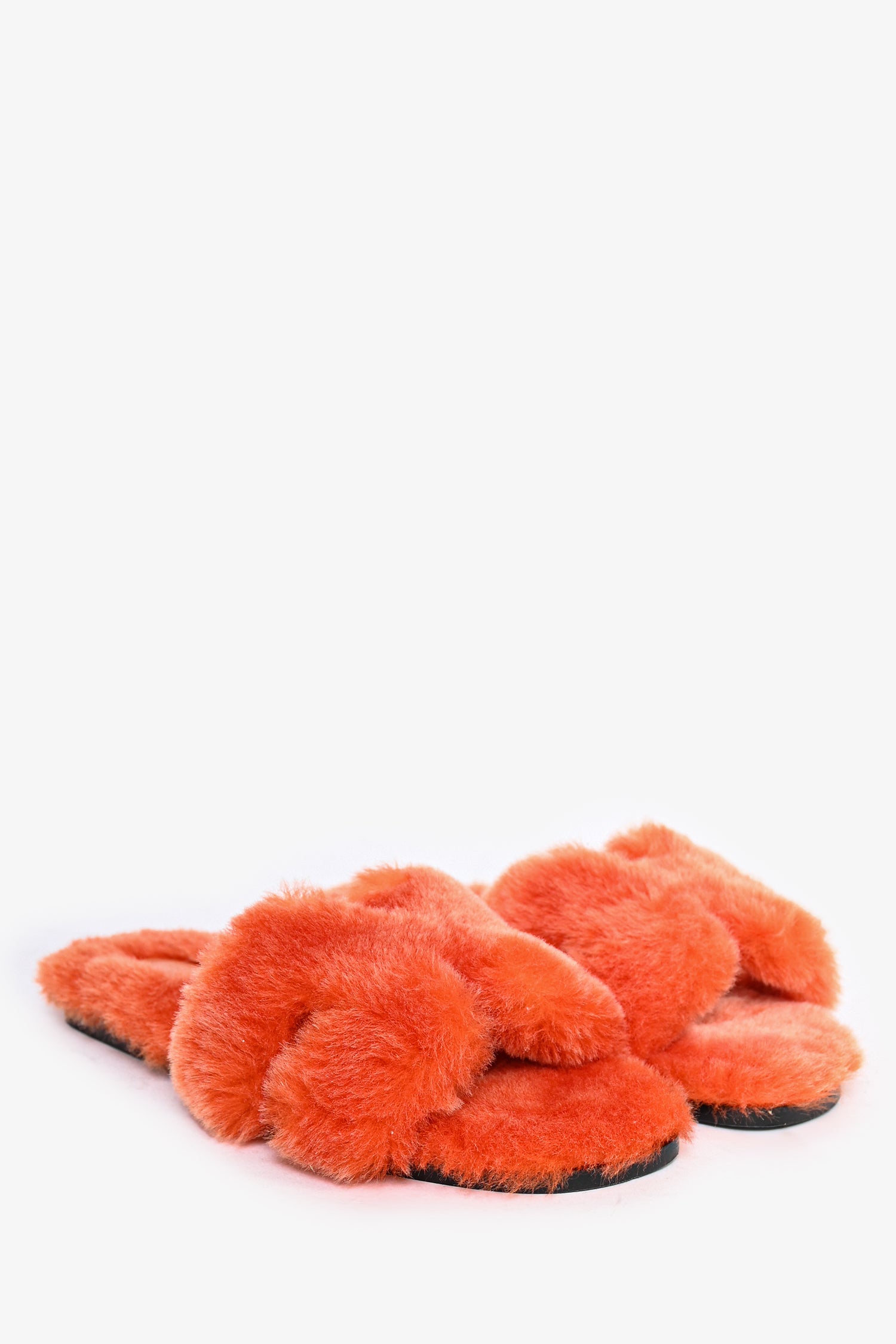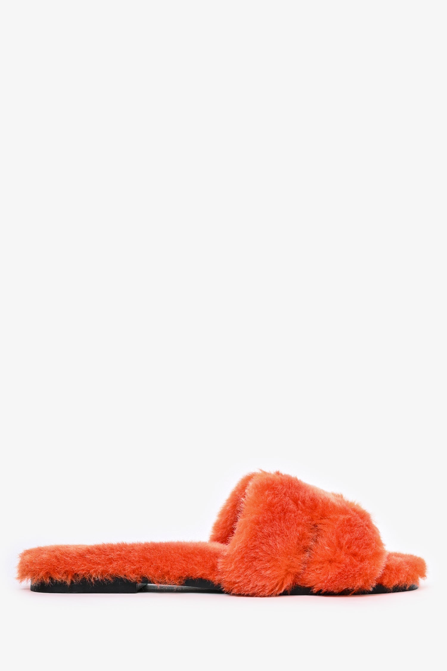 Refresh availabilityHermès Orange Shearling 'Oran' Sandals. Shearling vamp and interior. Rounded toe. Tonal stitching.